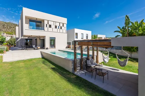 Deze spectaculaire villa combineert modern design met tijdloze elegantie en biedt een ideaal huis voor een groot gezin op een ruim, vlak perceel. Het ligt in de populaire wijk Son Puig, omringd door groene zones, golfbanen en in de buurt van de gerenommeerde openbare school Green Valley.