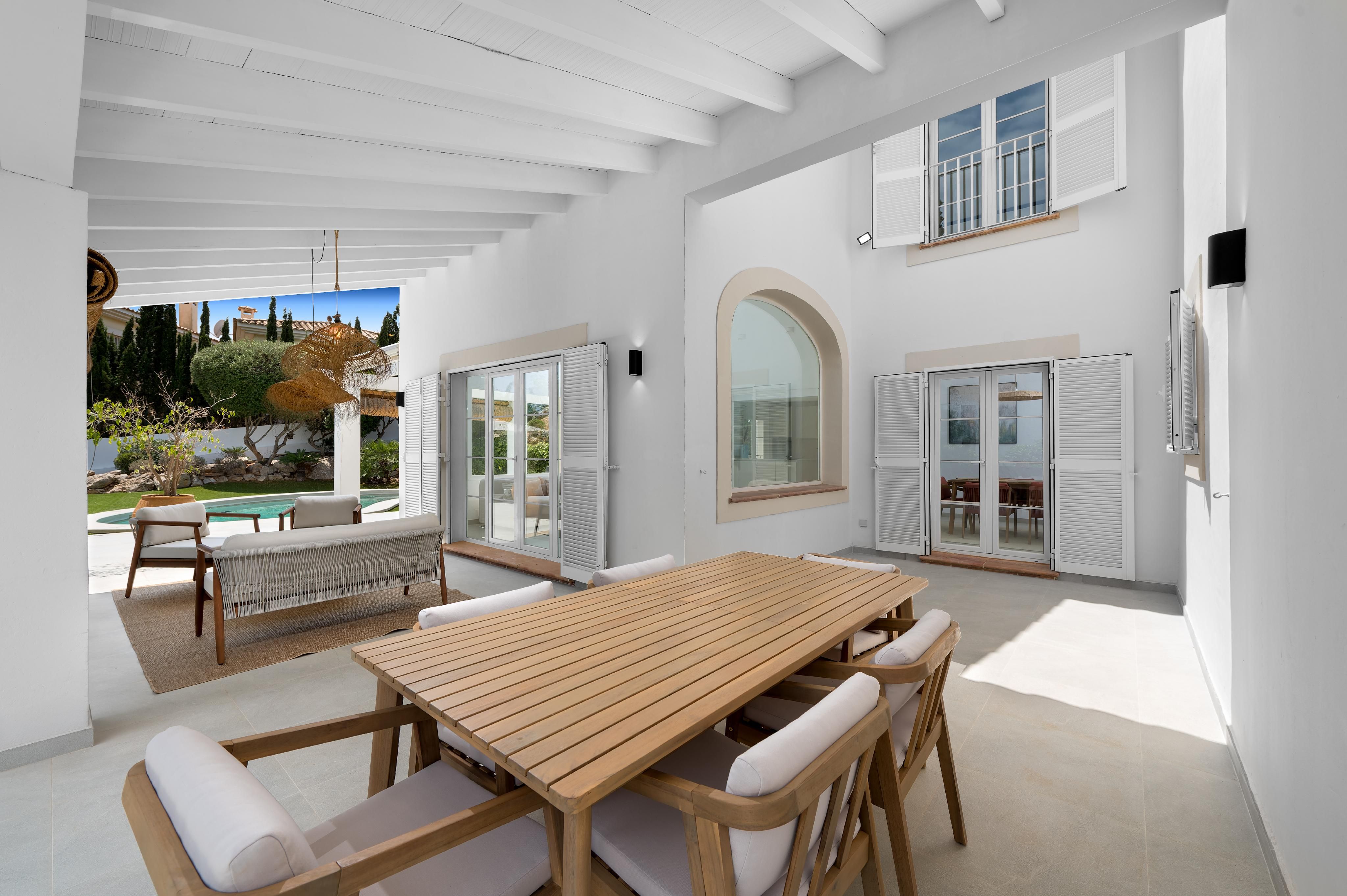 Deze zonnige villa met een luchtige mediterrane flair biedt ruimte voor een groot gezin in een rustige omgeving. Verschillende uitnodigende terrasgedeeltes zijn uitgerust met een volledige zomerkeuken en ruime eet- en zitgedeeltes, en de tuin heeft kunstgras van hoge kwaliteit, een jeu de boulesbaan en een prachtig zwembad. Het huis is verdeeld over twee verdiepingen. Op de bovenste verdieping, gezien vanaf de hoofdingang, is er een kantoorgedeelte en aan de andere kant is de ruime ouderslaapkamer met en-suite badkamer en een groot, zonnig terras met gedeeltelijk uitzicht op zee. Op dit niveau is er ook een complete gastenslaapkamer met een eigen badkamer. Het woongedeelte op de benedenverdieping heeft hoge plafonds en grote ramen die uitkijken op de tuin, waardoor er veel licht binnenvalt. De open keuken is creatief gerenoveerd en is een echt middelpunt van dit huis. Op de begane grond zijn ook drie slaapkamers, een met een eigen badkamer en een andere met een aparte badkamer, een gastentoilet, een wijnkelder en een bijkeuken. Verdere kenmerken: Garage, airconditioning warm/koud, hoge plafonds, houten balken, een speelkamer met gastentoilet. Gelegen in een exclusieve en gewilde woonwijk in Nova Santa Ponsa, op slechts een paar minuten van verschillende golfbanen, stranden en de jachthaven van Port Adriano met uitstekende cafés, restaurants en winkels, is dit huis ideaal als vakantiehuis of als full-time woning.