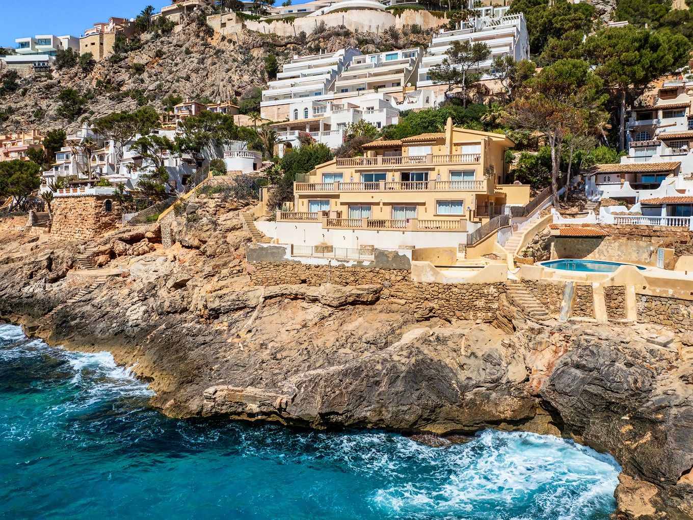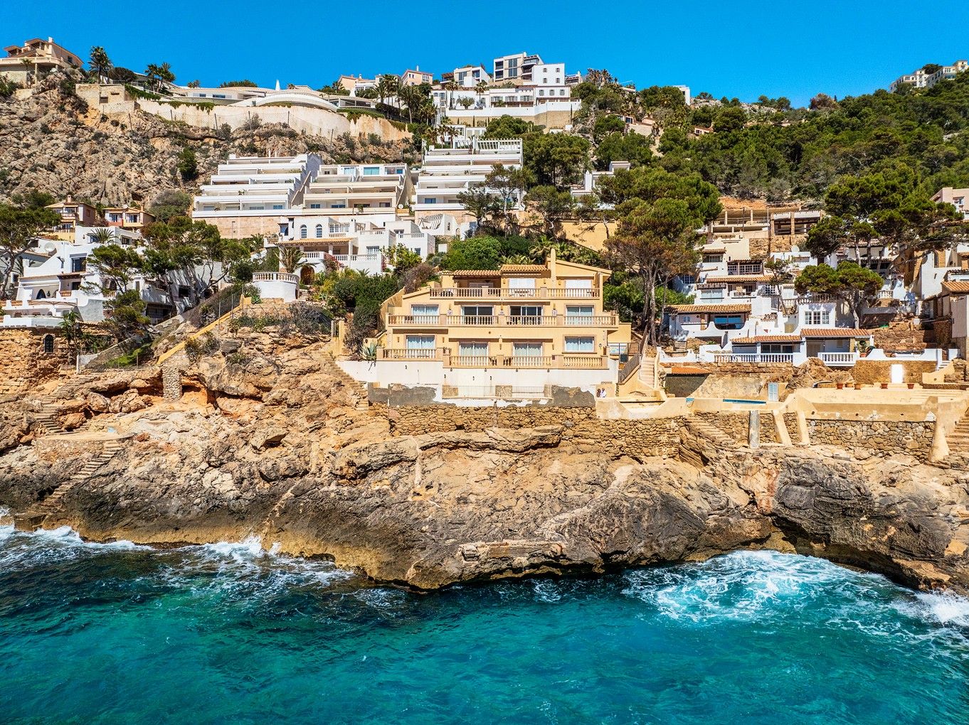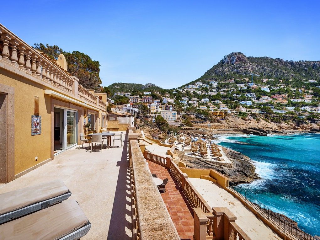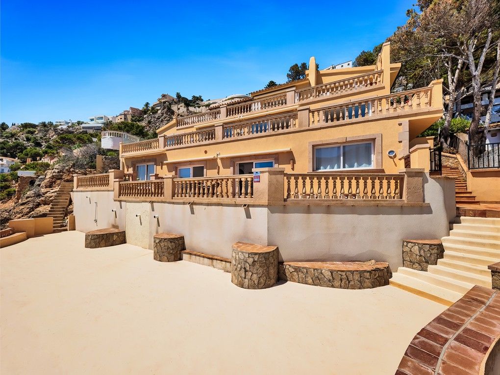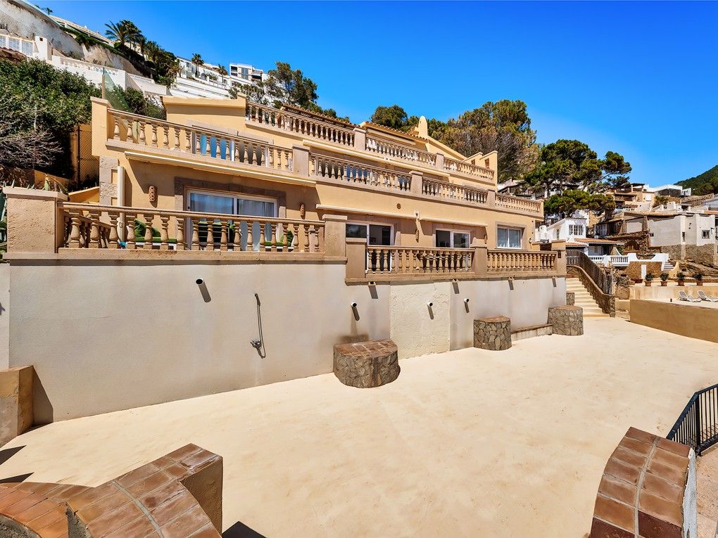 Deze woning is gelegen in Port Andratx, de prominente vissershaven en jachthaven in het exclusieve zuidwesten van Mallorca. Het ligt in de eerste zeelijn en biedt een fantastisch uitzicht over de baai en de open zee. Een ander hoogtepunt is de directe toegang tot de zee en de onmiddellijke nabijheid van de beachclub. Het gebouw bestaat uit in totaal drie appartementen, die elk een hele verdieping beslaan en zeven slaapkamers en evenzoveel badkamers bieden. De appartementen zijn onlangs gerenoveerd en voorzien van vloerverwarming en airconditioning h/c. Het pand heeft ook drie overdekte parkeerplaatsen. Als investering is er de mogelijkheid om een klein wooncomplex of een vrijstaande villa te bouwen.