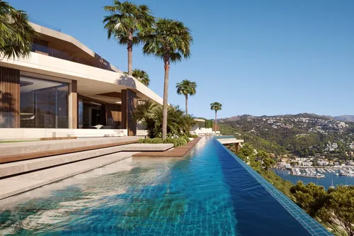 Villa Pura ligt in de woonenclave Las Brisas. Een van de meest exclusieve in Port Andratx, deze ultra-prime residentiële gemeenschap geniet van een indrukwekkende heuveltop positie met een panoramisch uitzicht over de haven en de Middellandse Zee. Ontworpen om optimaal te profiteren van het klimaat van de Balearen, is de meest opvallende buitenfaciliteit het 70 meter lange overloopzwembad dat zich uitstrekt van de ene kant van de villa naar de andere, compleet met eigen strand en natte bar. Daarachter ligt het terras Port met loungehoek, ligbedden en buitenbar, terwijl het terras langs het zwembad is voorzien van ligbedden, schaduwplekken en prachtig beplante tuinen. Een ander terras naast het zwembad heeft een volledig uitgeruste buitenkeuken en veel ruimte om buiten te eten. Met zijn indrukwekkende open ruimtes die zijn ontworpen om naadloos in elkaar over te lopen, trekt Villa Pura je naar binnen via de kunstgalerie hal en indrukwekkende hal naar de formele woonkamer, waar het spectaculaire uitzicht op de haven wordt onthuld. De 14-persoons eetkamer en dubbele eilandkeuken met extra eetruimte typeren het open concept van de villa, met grote ruimtes die licht worden gescheiden door elegante houten balken en schuifdeuren. De fantastische master suite met ruime kasten, kleedruimte en dubbele badkamer biedt een opmerkelijk uitzicht op de haven, zowel vanuit de slaapkamer als vanaf het privéterras met jacuzzi. Suites 2, 3 en 4 op hetzelfde niveau hebben ook uitzicht op de haven en toegang tot het terras. De benedenverdieping van Villa Pura beschikt over een entertainmentruimte met bodega, bar en 12-persoons bioscoop, volledig uitgeruste fitnessruimte, spa en wellnessruimte, personeelsappartement, wasruimte en servicekeuken, plus zes extra gastenslaapkamers, allemaal met toegang tot de tuin, het terras en het extra zwembad.