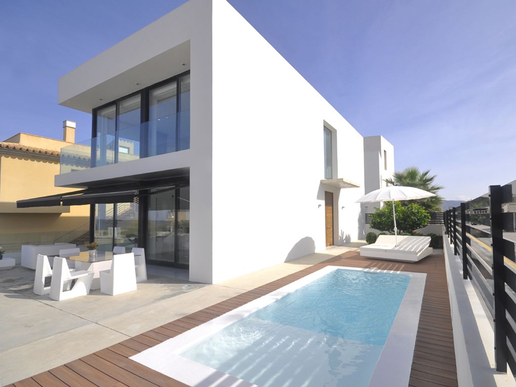 Deze ultramoderne villa belichaamt elegantie en verfijnd design en is het perfecte huis voor wie op zoek is naar een unieke woonervaring. Gelegen aan zee in een exclusieve en rustige omgeving, weg van de drukke toeristische centra, biedt het een omgeving van absolute ontspanning met uitgestrekte, ongerepte stranden op slechts een steenworp afstand. Het buitengedeelte van de villa heeft een privézwembad van 5m x 3m, ideaal om te genieten van de mediterrane zon, omringd door een terras met uitzicht op zee met een luxe Balinees bed. Er is ook een moderne eethoek met barbecue, de perfecte plek om te genieten van al fresco maaltijden, waardoor de ideale ruimte ontstaat om te entertainen en te ontspannen. Binnen biedt de begane grond een open ruimte waar indrukwekkende ramen het huis overspoelen met natuurlijk licht en een adembenemend uitzicht op zee bieden. Het grote kookeiland, uitgerust met hoogwaardige apparatuur, loopt naadloos over in de woon-eetkamer, die is ingericht met een elegante leren bank met chaise longue. Een innovatieve televisie, die 360º gedraaid kan worden, zorgt ervoor dat je vanuit elke hoek van de kamer tv kunt kijken. Op deze verdieping is ook een luxe slaapkamer met en-suite badkamer. Een elegante trap van glas en ijzer leidt naar de bovenverdieping, waar je een licht kantoor vindt, een tweepersoonsslaapkamer met en suite badkamer en de indrukwekkende grote slaapkamer met ramen van vloer tot plafond die een ongeëvenaard uitzicht op zee bieden. De grote slaapkamer is uitgerust met een royale inloopkast en een en-suite badkamer met twee hydromassagedouches. De kelder herbergt een uitzonderlijk goed uitgeruste fitnessruimte, compleet met een grote tv en een geluidssysteem, evenals een gastenbadkamer met douche, een ruime garage en een volledig uitgeruste bijkeuken. Het pand biedt ook hoogwaardige voorzieningen, zoals vloerverwarming en airconditioning in het hele huis, waardoor het hele jaar door maximaal comfort wordt gegarandeerd. Door de combinatie van moderniteit, luxe en een toplocatie biedt deze villa een ongeëvenaarde levensstijl voor de meest veeleisende mensen.Voorzieningen