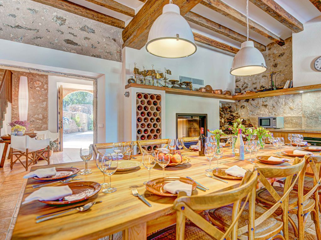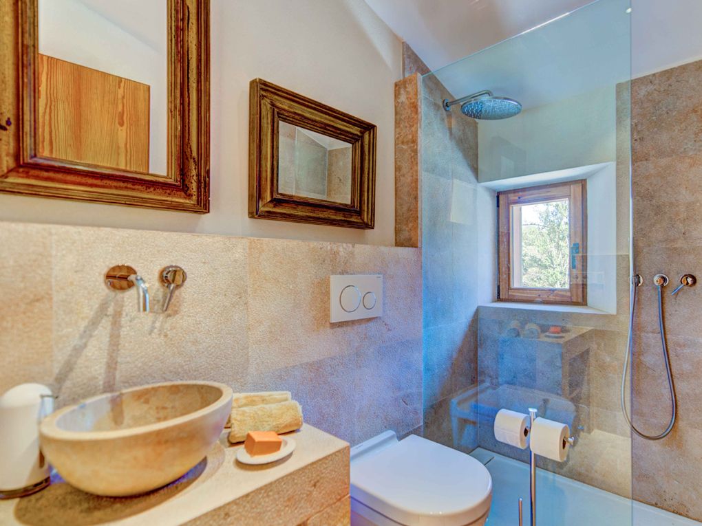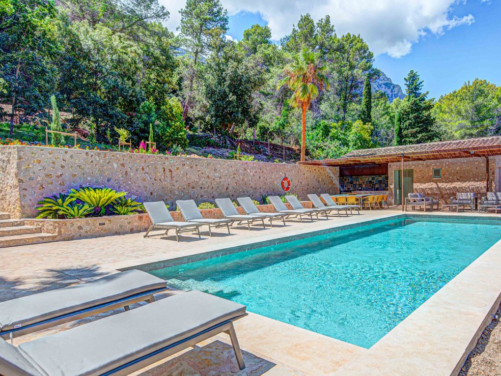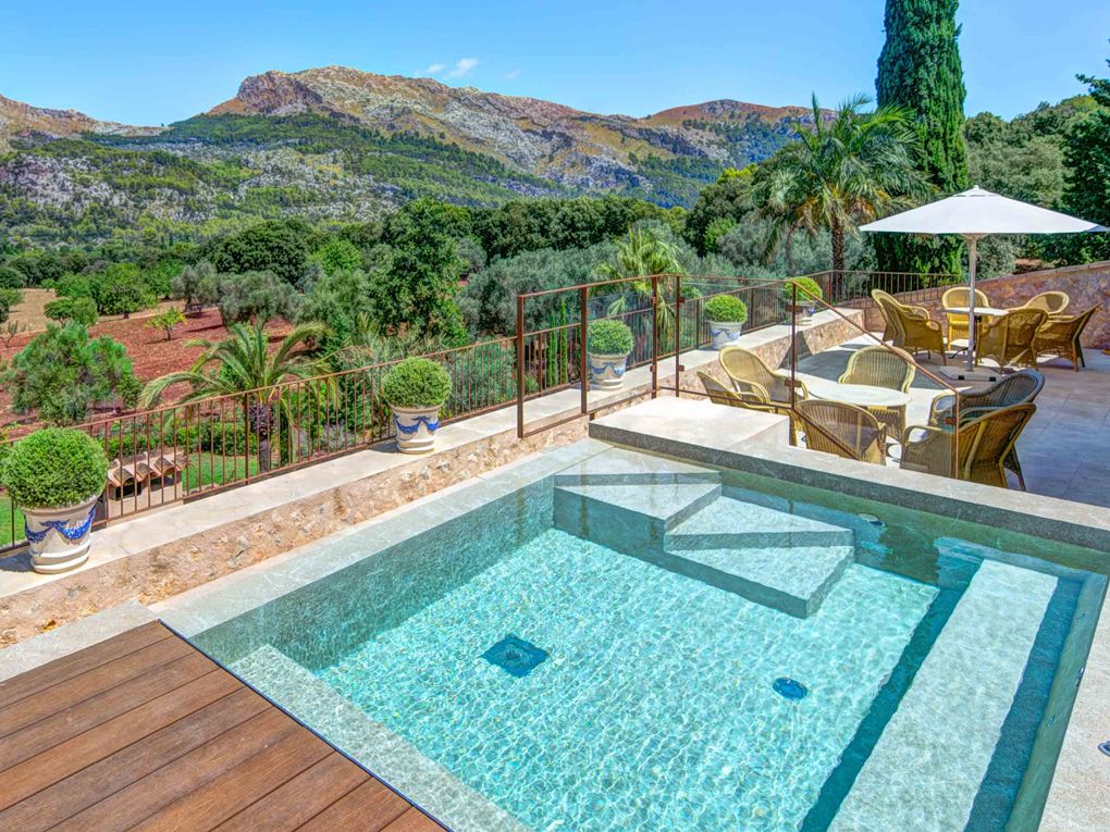 Exclusieve finca in Vall d'en March In het hart van de majestueuze Serra de Tramuntana ligt deze uitzonderlijke finca in Vall d'en March - een van de meest idyllische en exclusieve valleien in het noorden van Mallorca. Omgeven door eeuwenoude olijf- en steeneikbossen biedt het rust, privacy en ongeëvenaarde natuurlijke schoonheid. De voormalige oliemolen uit de 16e eeuw is omgetoverd tot een droomhuis dat Mallorcaanse traditie combineert met moderne luxe. Bij de recente renovatie is het historische karakter behouden, aangevuld met de beste materialen, precisie vakmanschap en elegante details. De woning is uitgerust met state-of-the-art huistechnologie, geïntegreerde airconditioning, designarmaturen en hoogwaardige apparatuur. Op maat gemaakte meubels en zorgvuldig geselecteerde kunstwerken benadrukken de exclusieve sfeer, terwijl houten en terracotta vloeren en zichtbare stenen muren warmte en authenticiteit uitstralen. De uitgestrekte tuin en boomgaard vormen een oase van rust, versierd met beeldhouwwerken en mediterrane retraites. Het 14 meter lange overloopzwembad past harmonieus in het landschap, omringd door een elegant zonneterras met pergola. Een aparte bungalow suite biedt extra privacy en comfort. Zes stijlvolle slaapkamers met en-suite badkamers zijn verdeeld over twee verdiepingen. Bijzonder opmerkelijk is de voormalige oliemolenkamer - nu een ruime woonkamer met een indrukwekkende open haard. De moderne keuken met eethoek voor twaalf personen leidt naar drie eetzones: binnen, in de keuken en buiten met barbecue en houtoven. Op het bovenste terras nodigt een bubbelbad met panoramisch uitzicht op de bergen je uit om te genieten van spectaculaire zonsondergangen.Voorzieningen