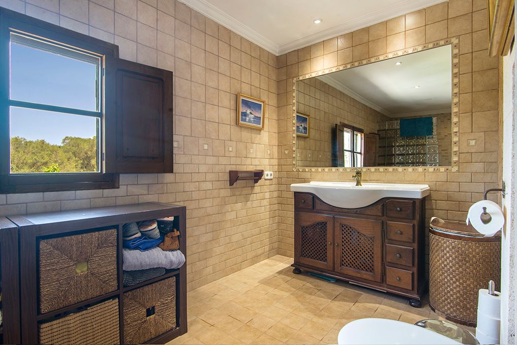 Ten całkowicie odnowiony w 2009 roku dom położony jest na obrzeżach Lloret de Vistalegre. Nieruchomość posiada w pełni ogrodzoną działkę i dwupiętrowy dom. Dwa piętra głównego domu są połączone szerokimi schodami i windą. Ponadto dom posiada dwa oddzielne mieszkania dla gości. Dom wiejski oferuje dużą piwnicę na wino i kilka wielofunkcyjnych obszarów. Na zewnątrz znajduje się urozmaicona roślinność składająca się z drzew pomarańczowych, cytrynowych, figowych, oliwnych i dębów ostrolistnych. Jest miejsce dla zwierząt i basen ze słoną wodą z miejscem do grillowania. Dominująca pozycja i panoramiczny widok sprawiają, że ten wiejski dom jest wyjątkowy. Dodatkowe cechy: własna studnia i sieć elektryczna, centralne ogrzewanie gazowe, pięć kominków i system alarmowy.