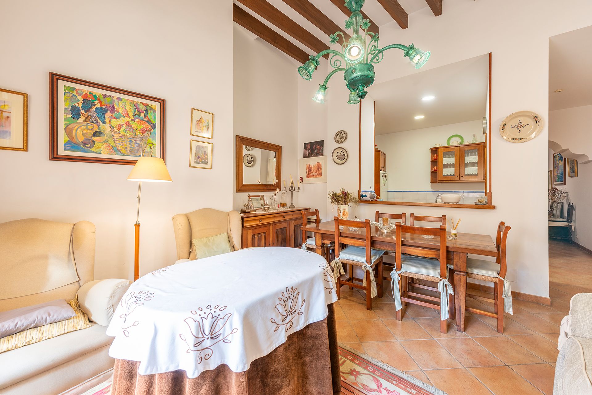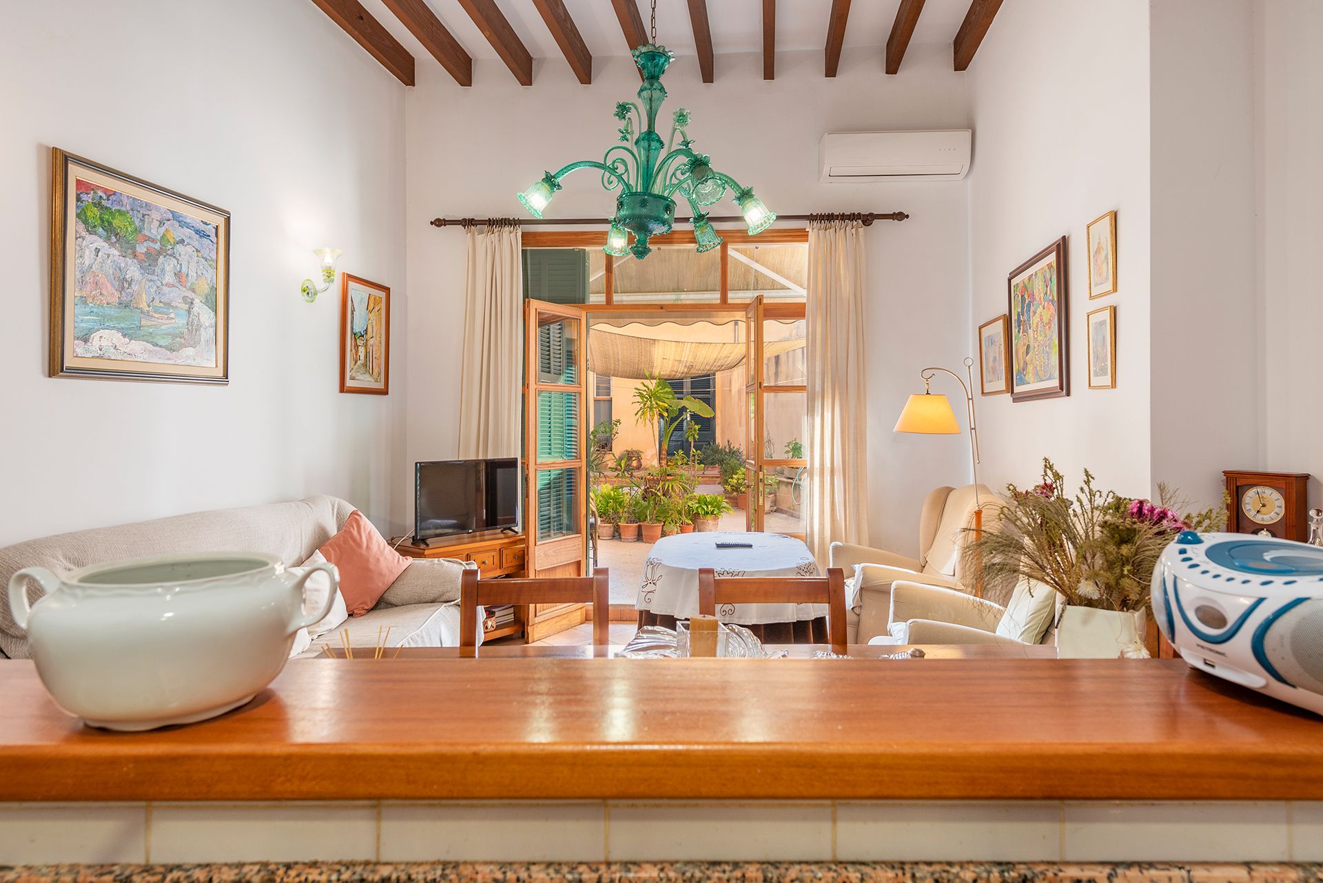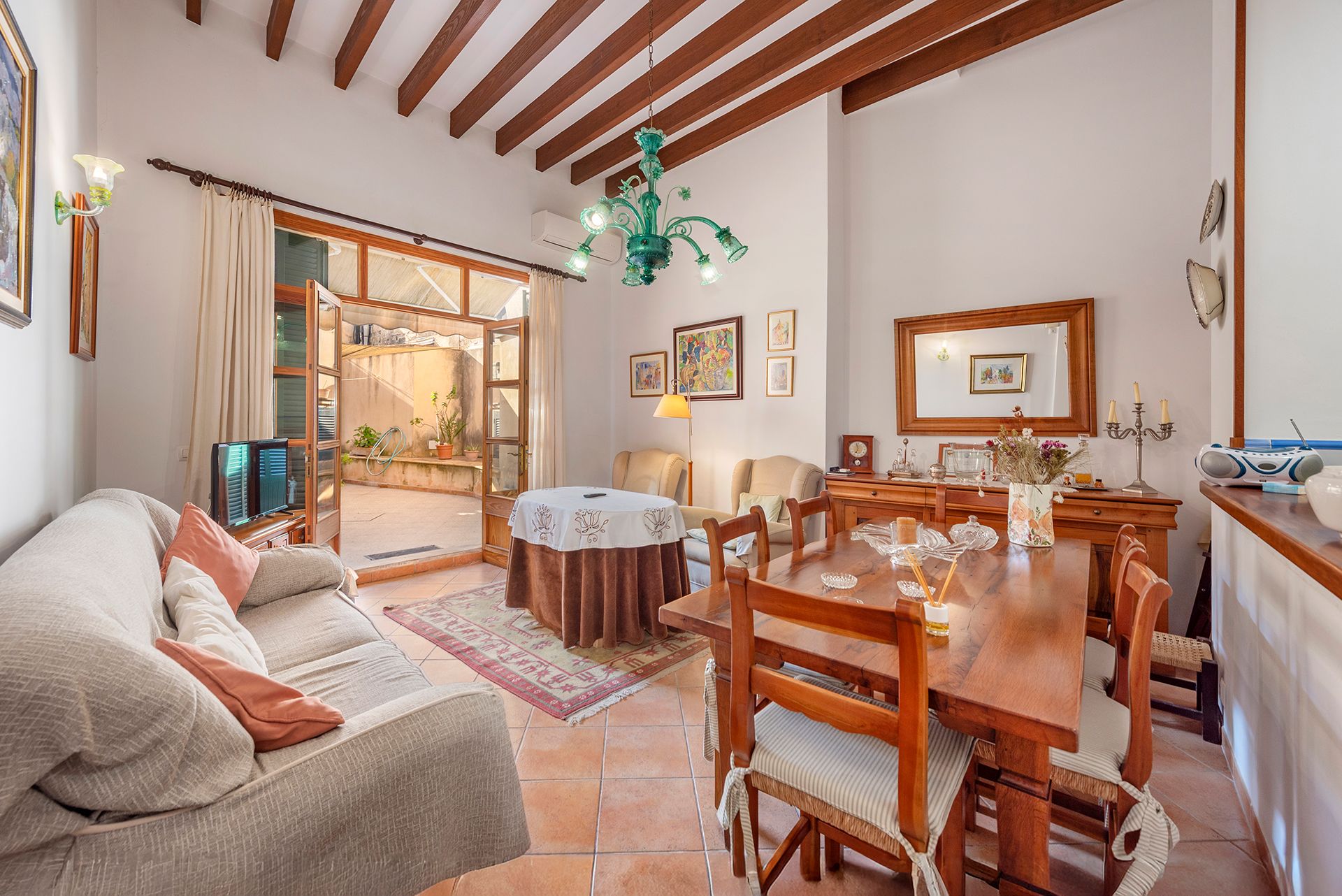 Nieruchomość o powierzchni ok. 210 m² łączy w sobie tradycyjny majorkański urok - wysokie sufity z odsłoniętymi drewnianymi belkami, solidne ściany i wysokiej jakości materiały - z przyjemnym komfortem życia.