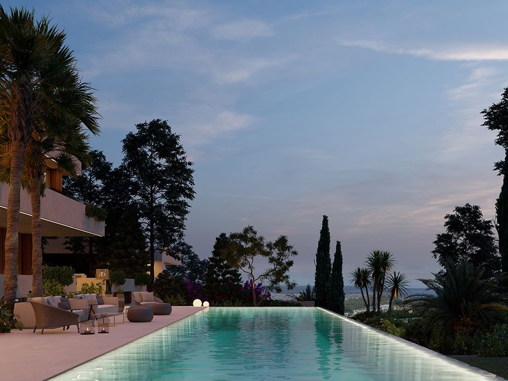 Ta fantastyczna działka o powierzchni 2380 m2 w Son Vida jest oferowana ze wstępnym projektem willi o powierzchni mieszkalnej 664 m2, plus tarasy o powierzchni 427 m2 i basen o powierzchni 118 m2. Parter składa się z kuchni na otwartym planie z jadalnią i częścią dzienną oraz sypialni z łazienką. Ten poziom prowadzi do obszaru zewnętrznego z zadaszonymi i otwartymi tarasami oraz basenem. Na piętrze znajduje się główna sypialnia i trzy kolejne sypialnie, wszystkie z łazienkami i garderobami. Wszystkie sypialnie mają również tarasy z fantastycznymi widokami. Na tym poziomie znajduje się również garaż na dwa samochody i miejsce parkingowe. W piwnicy znajduje się kolejna sypialnia z własną łazienką i garderobą, sala fitness, sala telewizyjna i kryty basen. Planowana jest również winda łącząca wszystkie poziomy. Cena obejmuje działkę oraz wstępny projekt opracowany przez renomowanego architekta. Na życzenie możliwa jest realizacja projektu z jego biurem. Dalsze prace planistyczne i budowlane nie są wliczone w cenę. Dostępne jest podłączenie do kanalizacji, dzięki czemu można łatwo ubiegać się o pozwolenie na budowę w ratuszu.