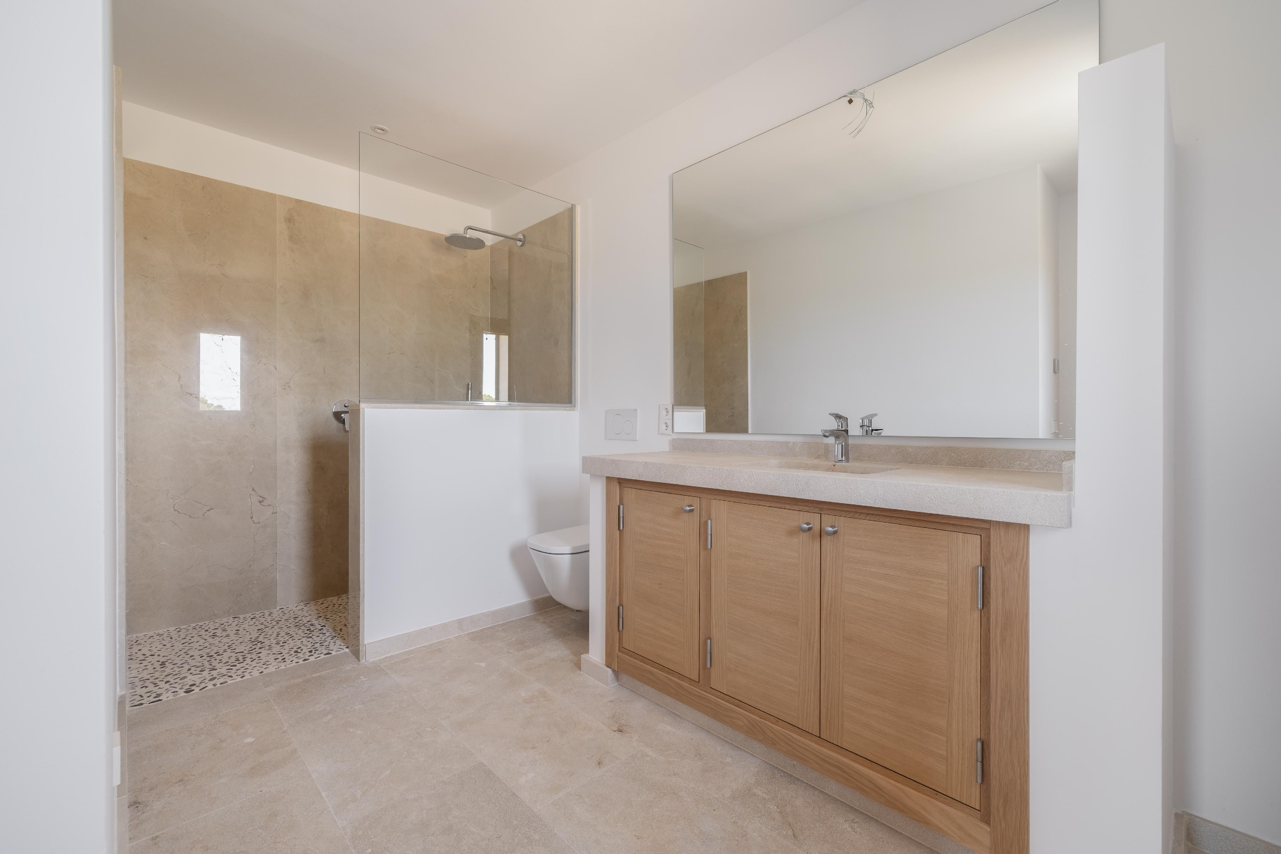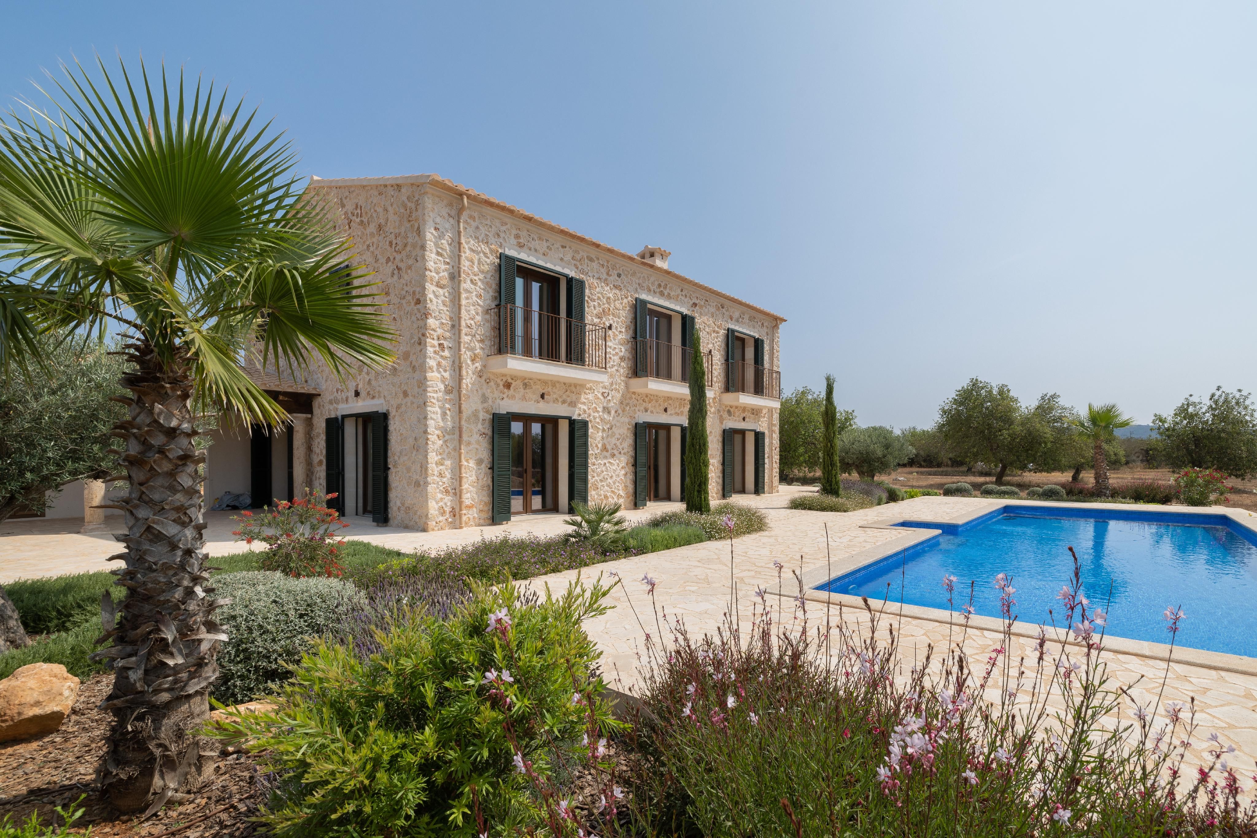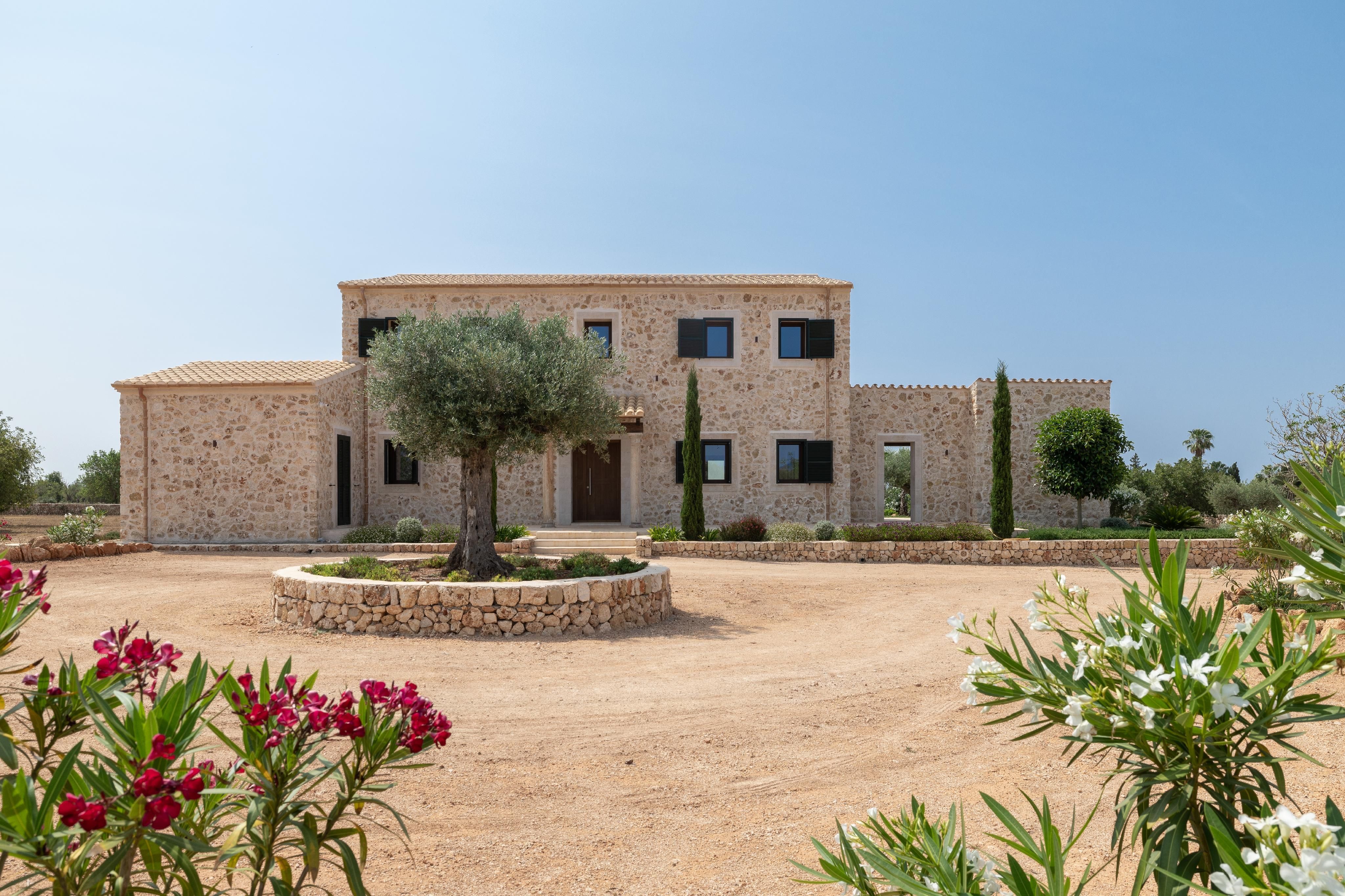 Zaledwie kilka minut od Llucmajor, ten wiejski dom zbudowany w 2023 roku łączy w sobie wysokiej jakości funkcje z majorkańskim urokiem, podkreślonym elegancką fasadą z kamienia naturalnego. Rozłożony na dwóch piętrach, oferuje 5 przestronnych sypialni, z których 3 mają łazienki, a także pokój z wstępną instalacją do przyszłej łazienki.