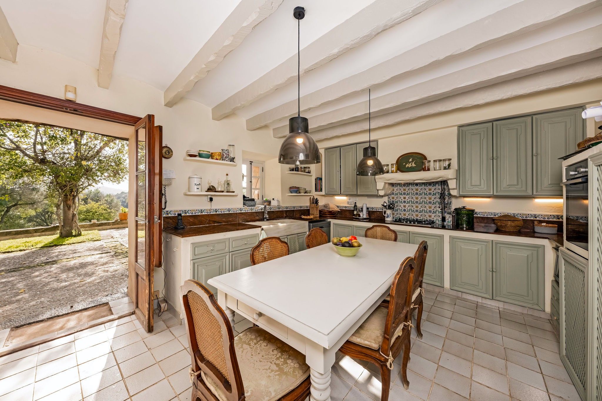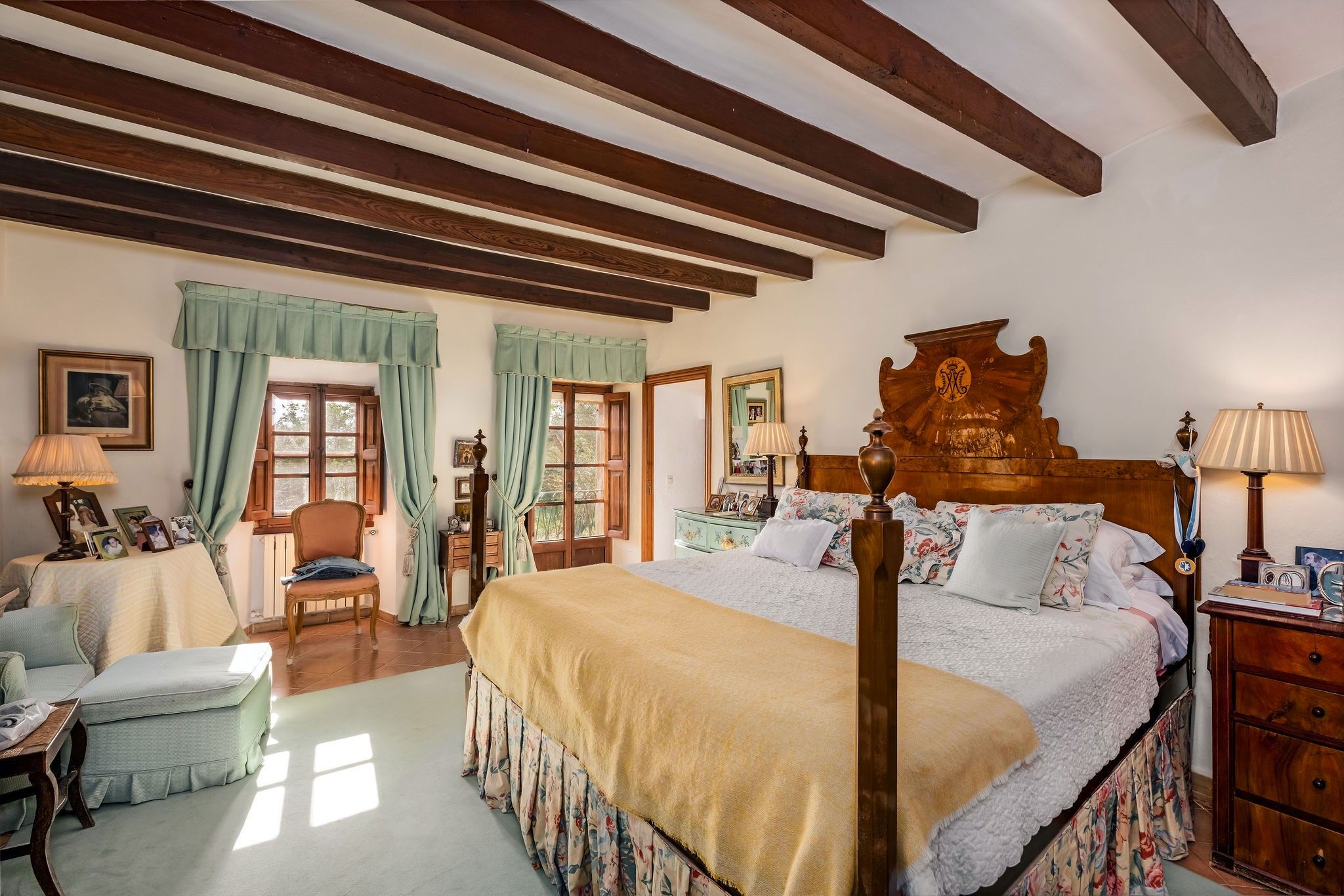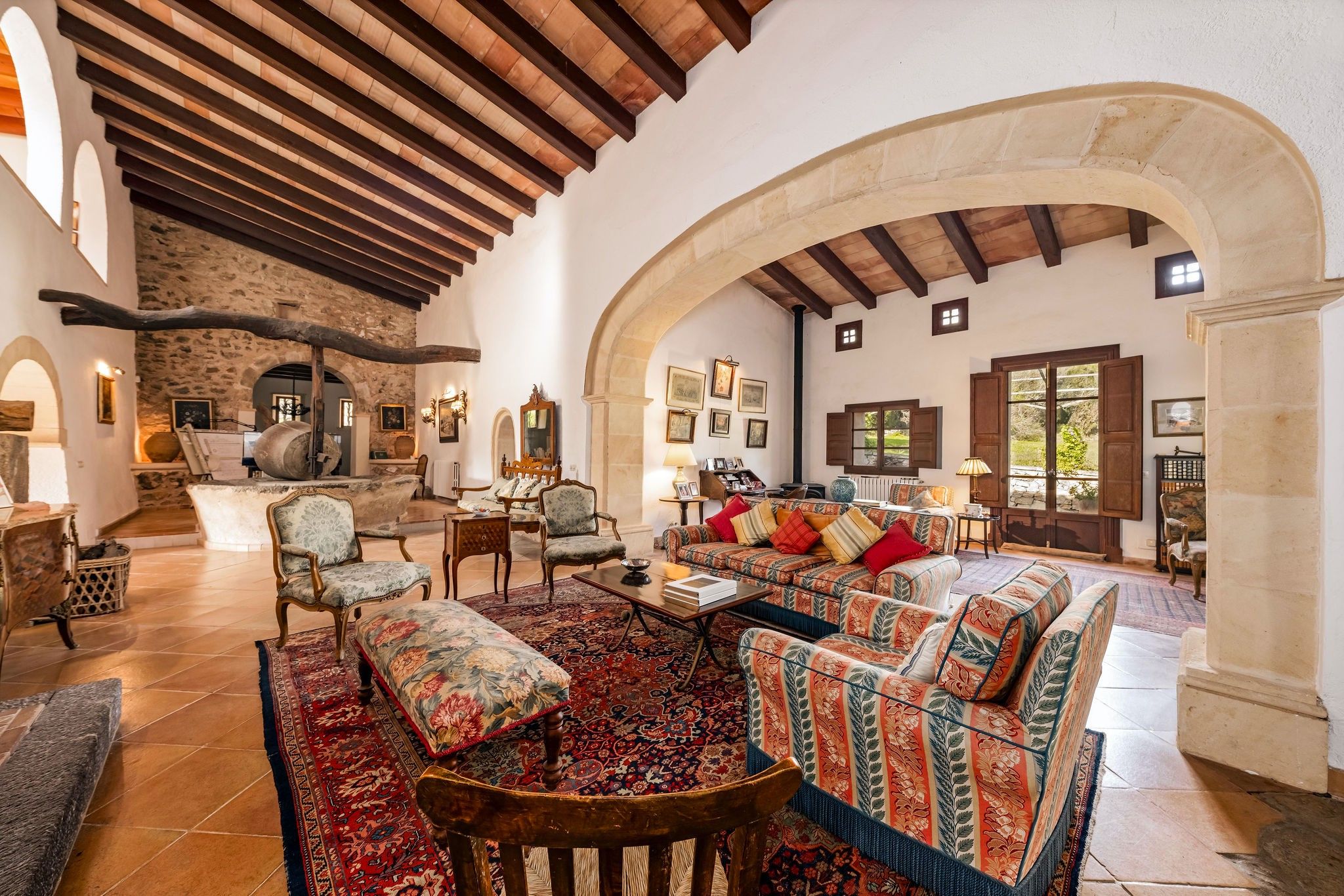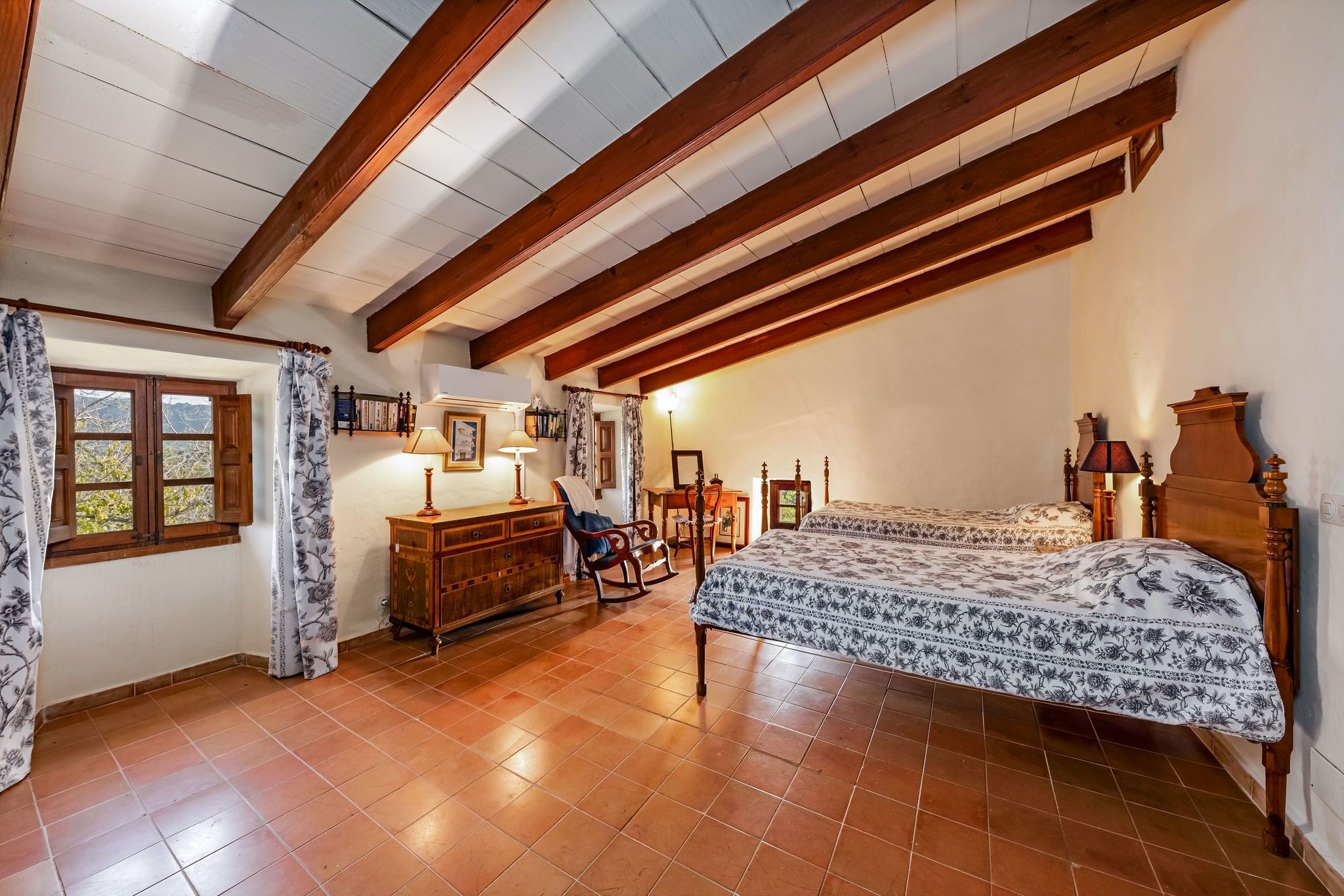 Ta romantyczna, zabytkowa finca oferuje zapierający dech w piersiach widok na morze i średniowieczne miasto Artá. Przechodząc przez imponujące wejście, obok starego młyna-kamienia, można dostać się do wielkiego salonu z galerią i kominem. Szczegóły, takie jak podłoga z terakoty, drewniane belki, ręcznie malowane płytki, okna kratowe z wewnętrznymi i zewnętrznymi okiennicami oraz zabytkowe meble nadają temu obiektowi autentyczny charakter. Życie na świeżym powietrzu można spędzać w pięknych ogrodach, na różnych tarasach i w dużym basenie. Duży zewnętrzny kominek jest idealny na letnie imprezy. Nowoczesny komfort życia zapewnia sprzęt taki jak klimatyzacja (ciepło/zimno), telewizja satelitarna, telefon itp.