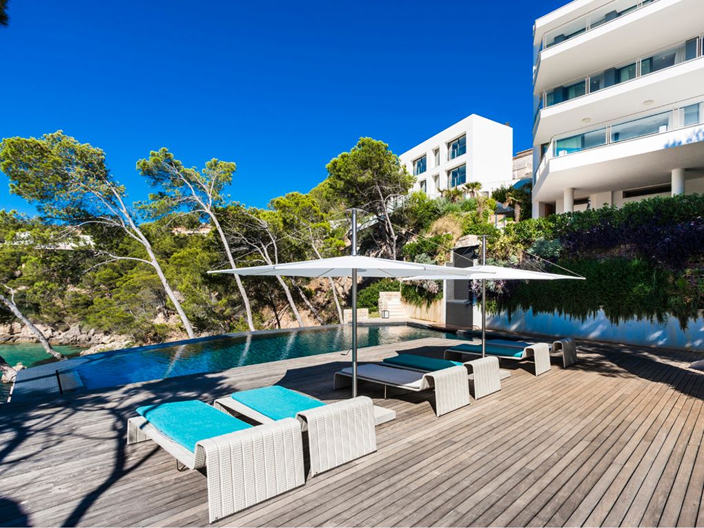 Ta luksusowa willa znajduje się zaledwie kilka minut od pięknej plaży i pola golfowego Camp de Mar. Jest to jedna z niewielu nieruchomości, które mają bezpośredni dostęp do morza. Ta nowoczesna posiadłość w minimalistycznym stylu składa się z głównego domu i oddzielnego pensjonatu. Główny budynek rozciąga się na 780m² i oferuje cztery sypialnie i cztery łazienki, jasny salon, nowoczesną i kompletnie wyposażoną kuchnię, jadalnię, a także dwa przestronne tarasy z fantastycznym widokiem na morze. Pensjonat o powierzchni 287 m² ma trzy sypialnie i trzy łazienki, salon i małą amerykańską kuchnię. Ponadto znajduje się apartament dla personelu, który składa się z dwóch małych sypialni, jednej łazienki i osobnego wejścia. Ponadto cała nieruchomość zapewnia 415m² otwartych i zadaszonych tarasów, garaż na maksymalnie trzy pojazdy, windę, basen, kryty basen, saunę, dostęp do morza, ogrzewanie podłogowe i klimatyzację.