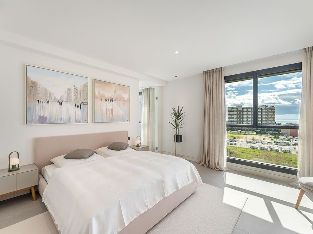 Ten wyjątkowy penthouse łączy w sobie luksusowy design, maksymalny komfort życia i bezkonkurencyjną lokalizację - zaledwie kilka kroków od plaży i portu Portixol. Zabytkowe stare miasto i tętniące życiem centrum Palmy znajdują się w odległości krótkiego spaceru, a lotnisko oddalone jest o zaledwie siedem minut jazdy samochodem. Zaprojektowany przez znanego architekta Andreu Crespí (CMV Architects), ten nowy budynek wyznacza nowe standardy w zakresie projektowania, jakości materiałów i zrównoważonego rozwoju. Dzięki certyfikatowi energetycznemu klasy A i przyjaznemu dla środowiska ogrzewaniu geotermalnemu, kompleks mieszkaniowy spełnia najnowocześniejsze standardy życia. Penthouse rozciąga się na dwóch piętrach i zachwyca przestronnym, dobrze przemyślanym układem pomieszczeń. Na niższym poziomie znajduje się jasny salon i jadalnia z designerską kuchnią na zamówienie, która jest płynnie zintegrowana z koncepcją otwartego planu. Na górnym piętrze znajdują się prywatne pokoje, w tym trzy eleganckie sypialnie z łazienkami. Dodatkowy pokój, obecnie używany jako salon telewizyjny, można łatwo przekształcić w czwartą sypialnię. Przestrzeń uzupełnia stylowa toaleta dla gości i oddzielna pralnia. Wyraźne oddzielenie części dziennej od sypialnej tworzy przyjemną atmosferę. Wysokiej jakości funkcje, takie jak ogrzewanie podłogowe, centralna klimatyzacja i technologia inteligentnego domu, sprawiają, że mieszkanie tutaj jest wyjątkowo wygodne. Dwa podziemne miejsca parkingowe i prywatna komórka lokatorska są wliczone w cenę zakupu. Ekskluzywny kompleks mieszkalny XO Residences Palma oferuje również swoim mieszkańcom zapierający dech w piersiach taras na dachu z basenem i strefą relaksu, nowoczesną strefę fitness i wellness, stylowy salon właścicieli, windy i najwyższej klasy całodobową obsługę konsjerża. Ten penthouse to nie tylko luksusowy dom, ale także doskonała okazja inwestycyjna w jednej z najbardziej poszukiwanych lokalizacji w Palmie. Każdy, kto ceni sobie design, komfort i pierwszorzędne otoczenie, znajdzie tutaj nieruchomość spełniającą najwyższe wymagania.