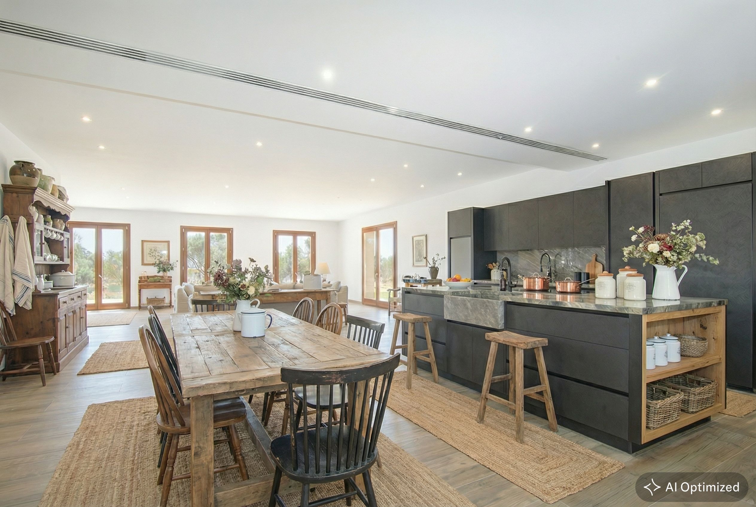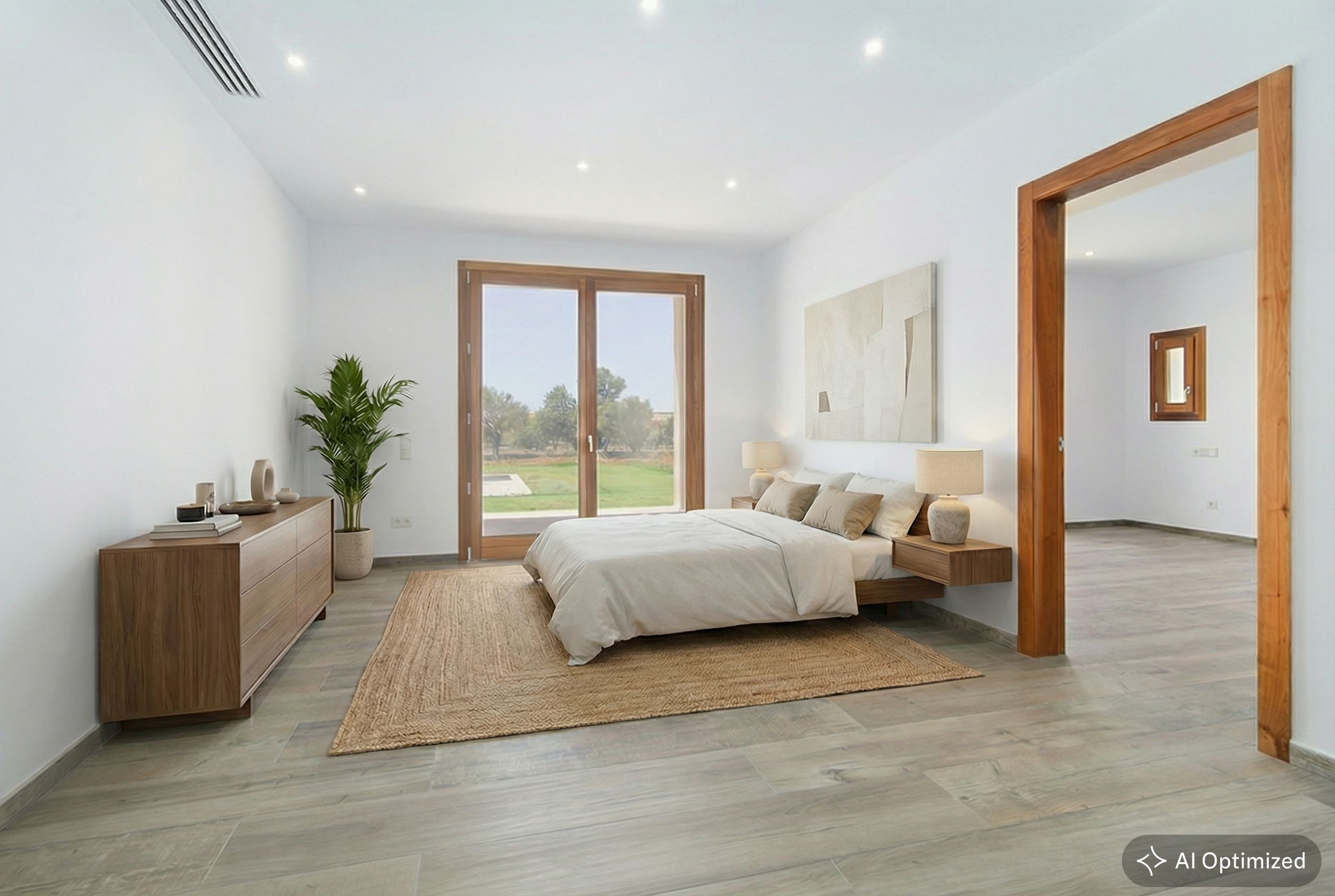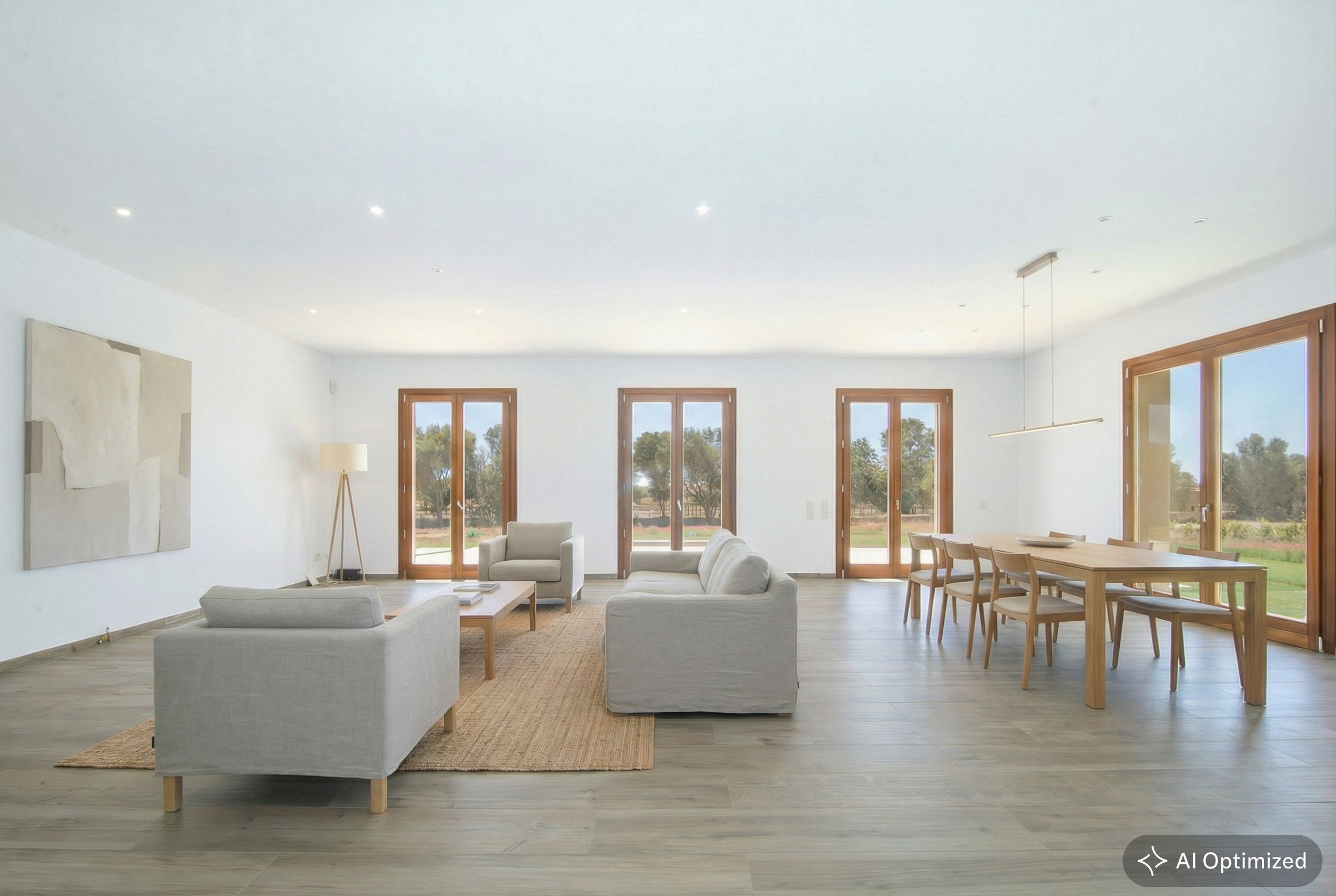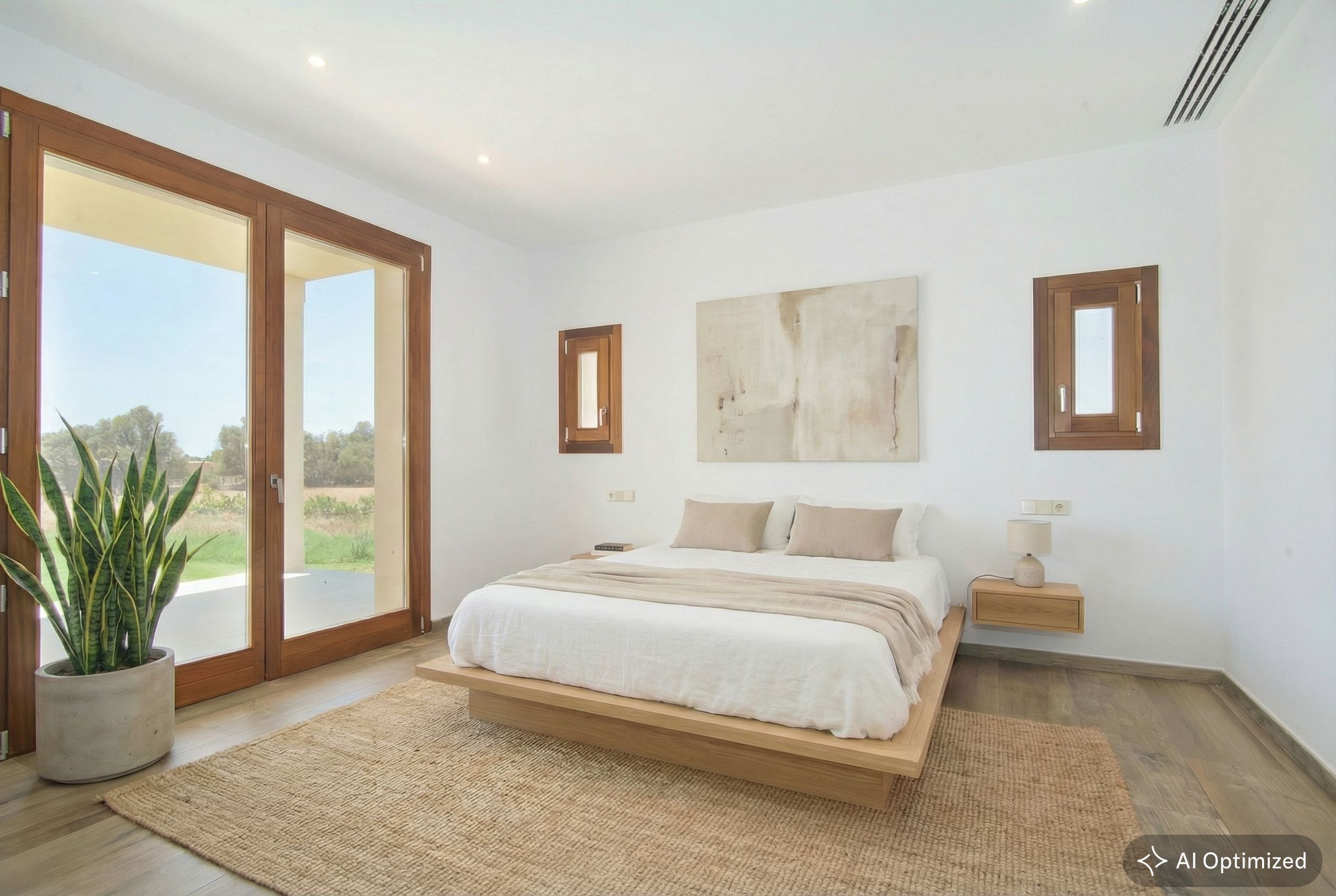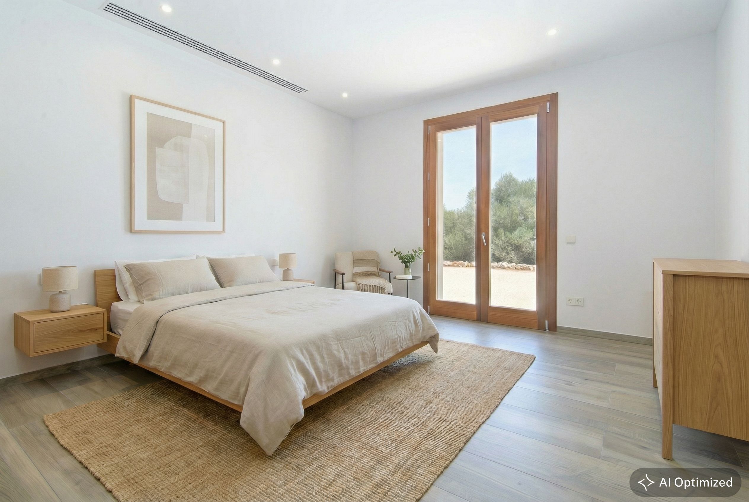Ta przestronna parterowa finca oferuje mnóstwo przestrzeni, aby cieszyć się spokojem i prywatnością w pięknym śródziemnomorskim stylu. Dom posiada przestronny salon z jadalnią, który łączy się z nowoczesną kuchnią na otwartym planie. Dzięki dużym oknom nieruchomość jest bardzo jasna we wszystkich pokojach. Dostępne są cztery przestronne sypialnie z łazienkami. Mają one również dostęp do zewnętrznego tarasu, z którego można podziwiać piękny basen. Na zewnątrz, jak już wspomniano, znajdują się różne tarasy, na których można cieszyć się wspaniałymi letnimi nocami na wyspie. Nieruchomość ma dużą ogrodzoną działkę i teren zewnętrzny przed wejściem do domu, gdzie jest miejsce na kilka pojazdów. Inne funkcje obejmują ogrzewanie podłogowe i klimatyzację, a także energię elektryczną z paneli słonecznych i wodę z ciężarówki.