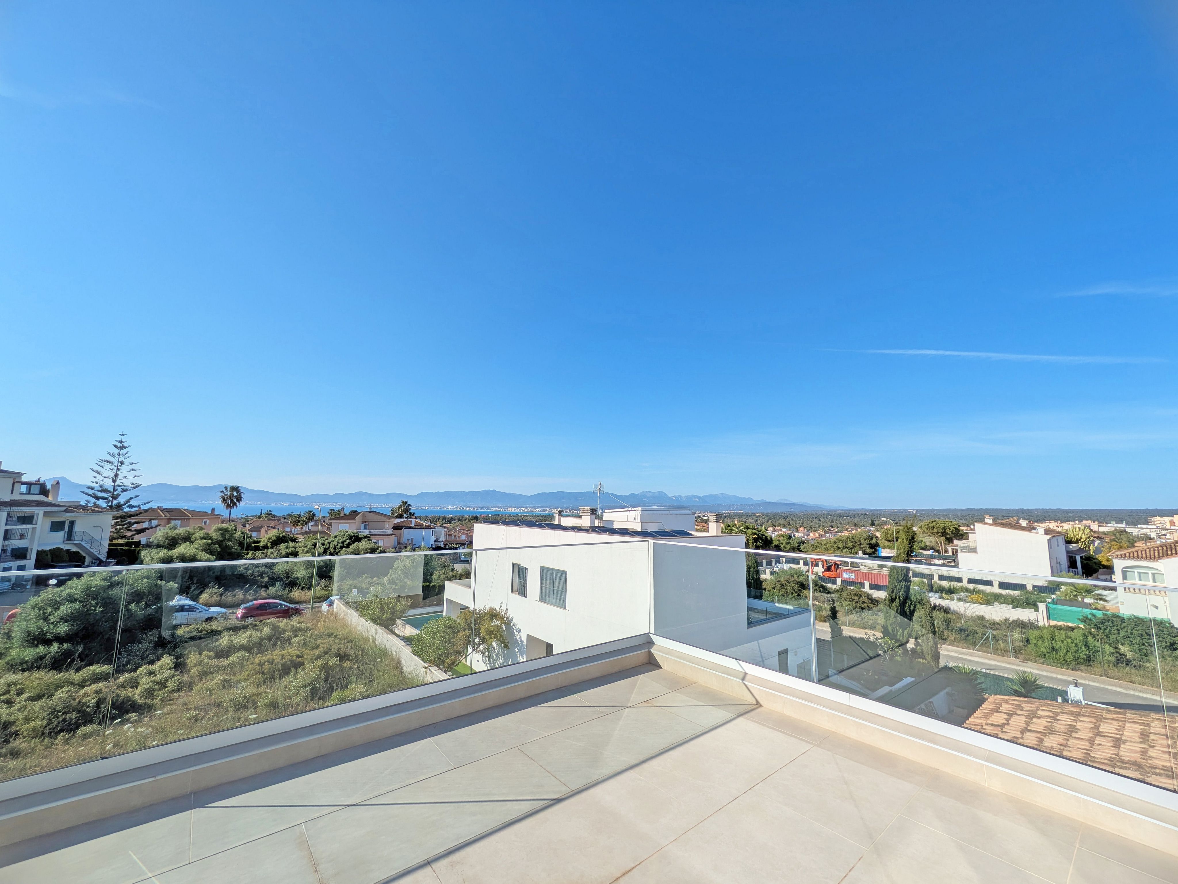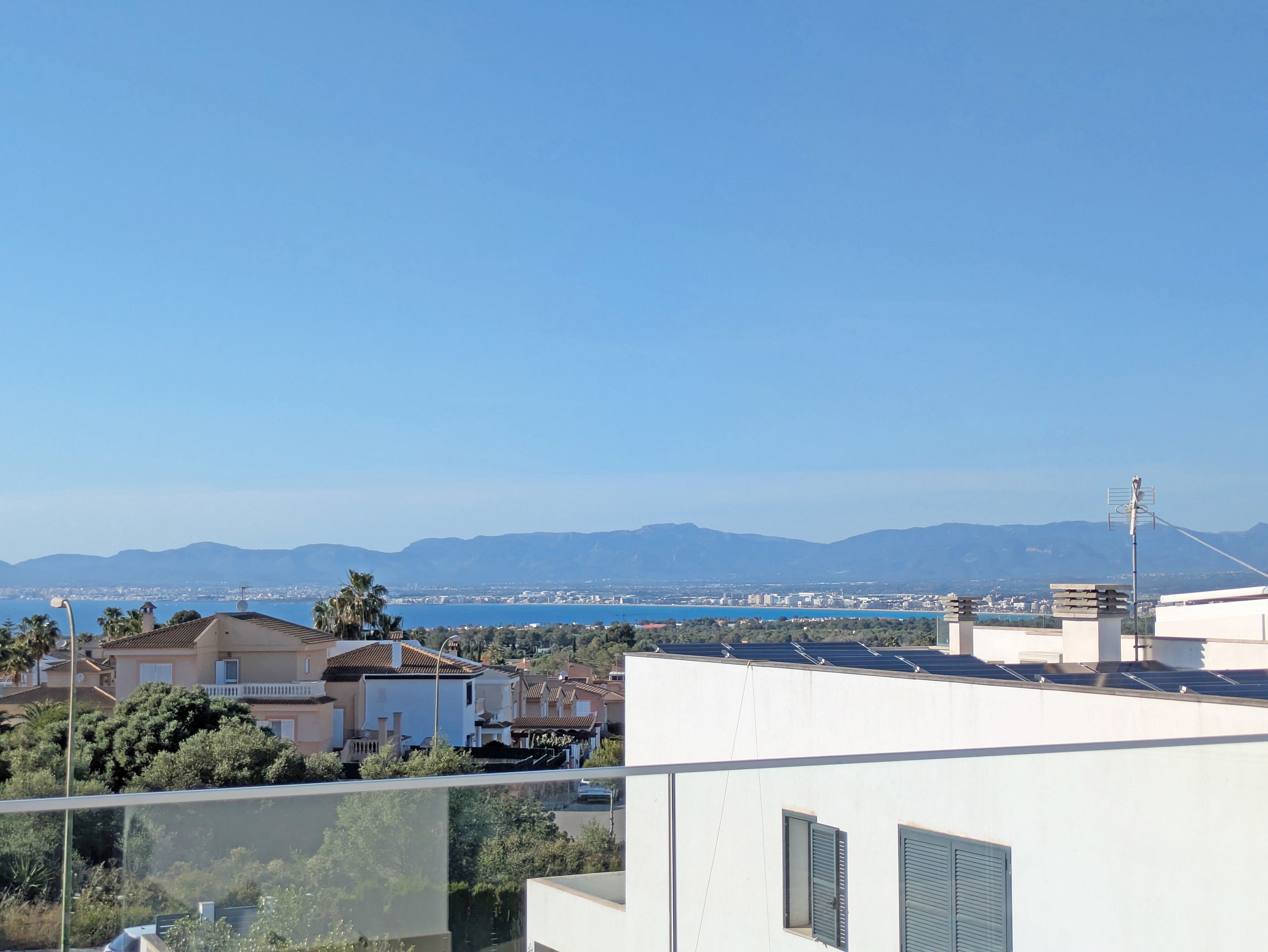 Ten ekskluzywny dom szeregowy oferuje zapierające dech w piersiach widoki na zatokę Palma.