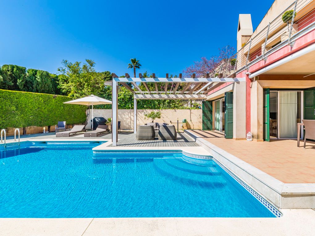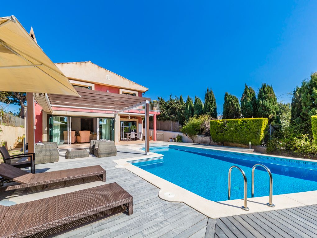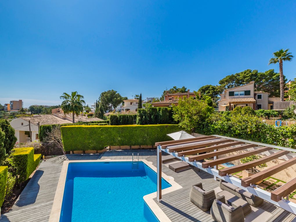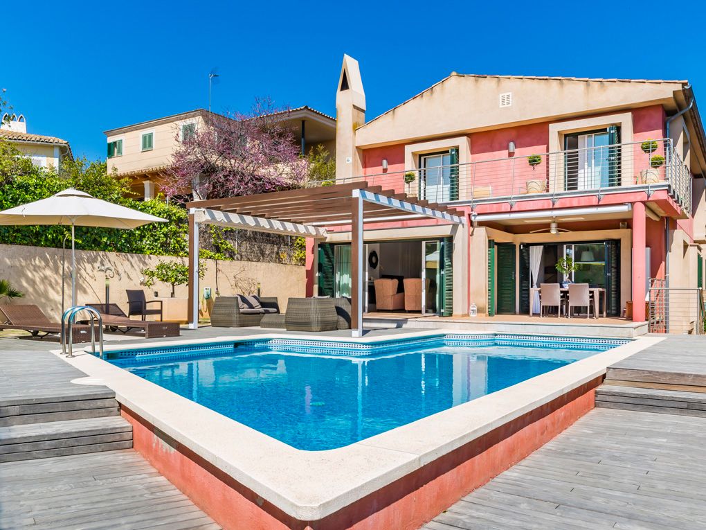 Ta ekskluzywna willa jest idealnie zlokalizowana w eleganckiej dzielnicy mieszkalnej La Bonanova, w bezpośrednim sąsiedztwie renomowanej międzynarodowej szkoły. Ze wspaniałego basenu można podziwiać nie tylko zapierające dech w piersiach widoki na morze, ale także duży teren zewnętrzny i piękny, przestronny taras. Na parterze znajduje się elegancki salon, w pełni wyposażona kuchnia Miele oraz sypialnia z łazienką. Na pierwszym piętrze znajdują się cztery kolejne sypialnie, każda z własną łazienką i ogrzewaniem podłogowym, a także przestronny taras o powierzchni 40 m², który jest bezpośrednio dostępny z głównej sypialni. Ponadto w willi znajduje się pokój rekreacyjny o powierzchni 115 m² ze stołem bilardowym i dodatkową łazienką, który może być elastycznie wykorzystywany jako pokój nastolatka lub do innych celów. Klimatyzacja (ciepło/zimno) rozciąga się na cały dom, podczas gdy istnieje wiata na dwa pojazdy. Obecni właściciele wyposażyli również dom w panele słoneczne, co nie tylko zapewnia doskonałe zaopatrzenie w energię, ale także przyczynia się do niskich kosztów energii. Przed domem znajduje się elegancki supermarket znanej sieci, która jest szeroko rozpowszechniona na Majorce, doskonale uzupełniając udogodnienia tej wyjątkowej okolicy.