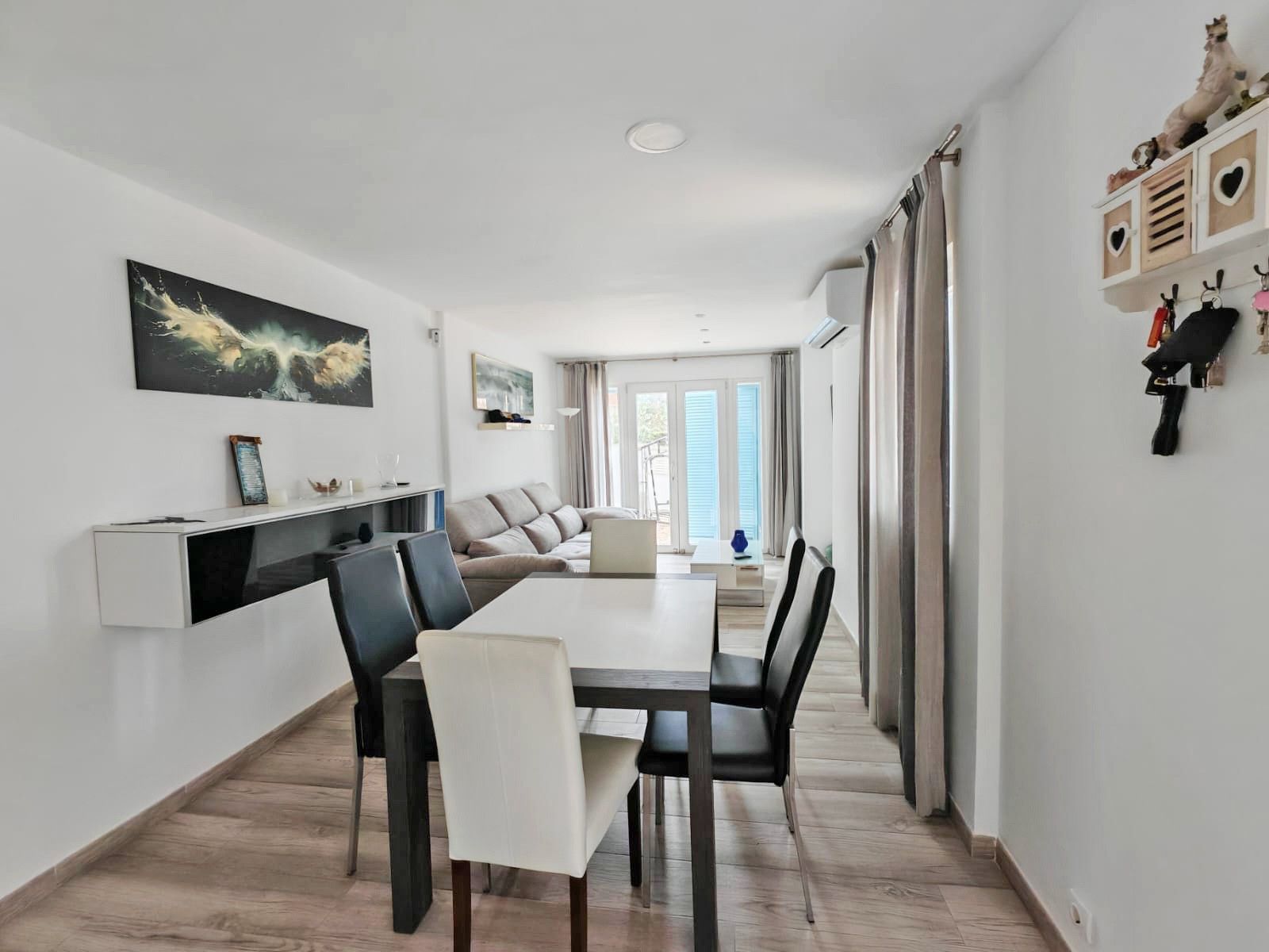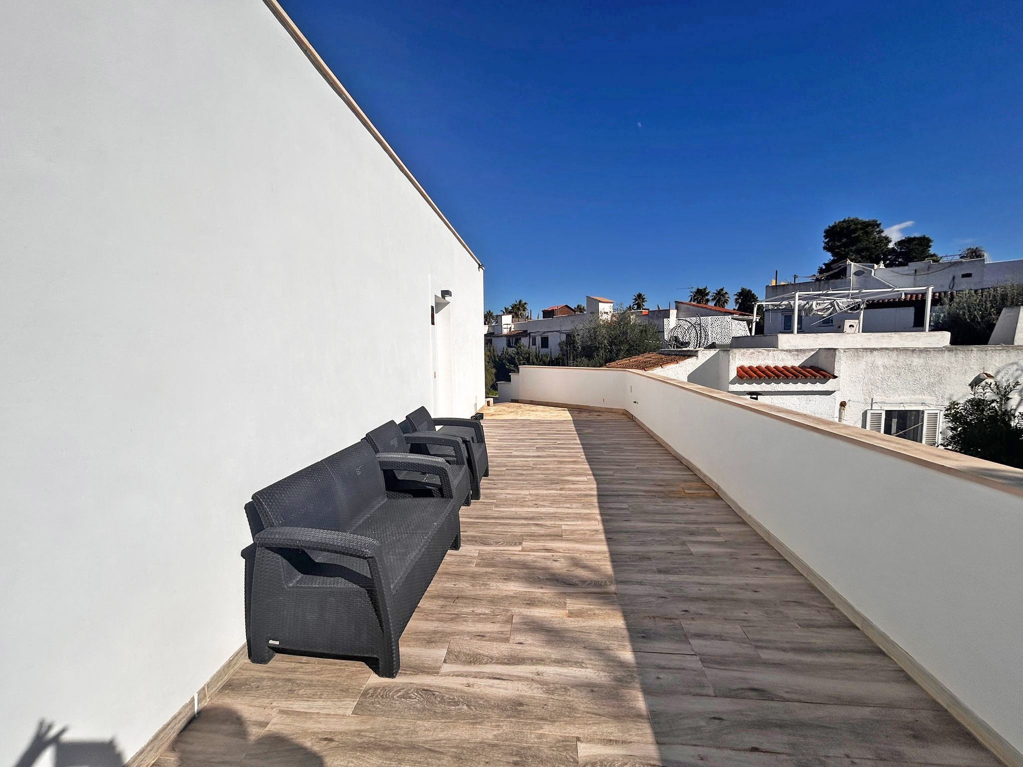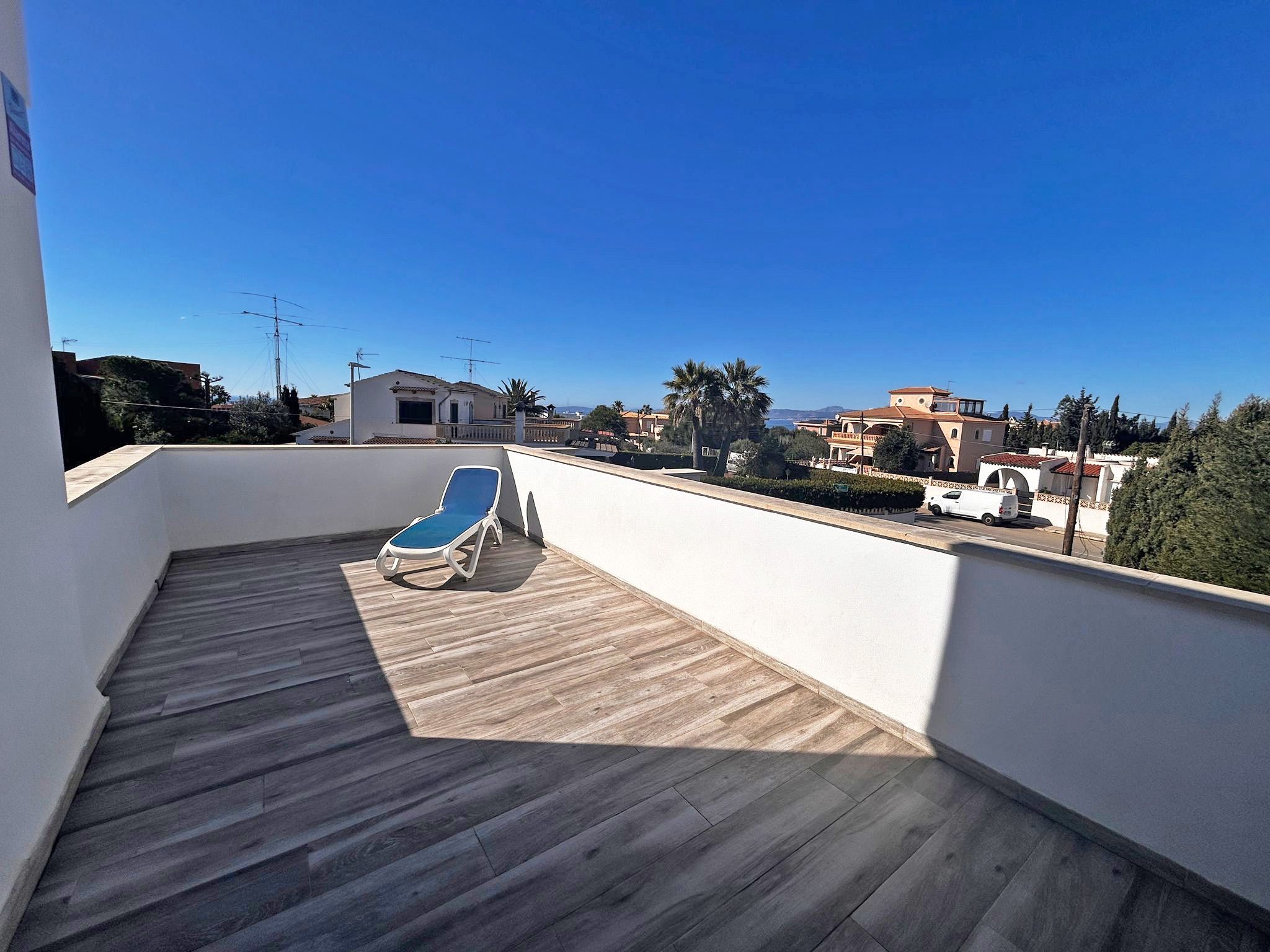 Położona w cichej dzielnicy mieszkalnej Badía Azul i zaledwie 10 minut od plaży, willa ta oferuje idealne miejsce dla osób poszukujących komfortu, prywatności i bliskości morza. Dzięki praktycznemu układowi i jasnym pokojom, nieruchomość ta jest idealna jako miejsce stałego zamieszkania lub na krótkie śródziemnomorskie wakacje. Na parterze przestronny salon i jadalnia prowadzą bezpośrednio na taras, tworząc ciepłą i zachęcającą atmosferę. Posiada dwie przestronne sypialnie i dwie w pełni wyposażone łazienki, zapewniając komfort dla całej rodziny. Duża, w pełni wyposażona kuchnia jest idealna dla kulinarnych koneserów. Na piętrze znajduje się studio z osobnym wejściem. Oferuje sypialnię z łazienką i małą kuchnię. Obszar zewnętrzny jest jedną z głównych atrakcji tej nieruchomości i obejmuje rozległe tarasy z miejscem do opalania, prysznicem na świeżym powietrzu, sztuczną trawą i miejscem do grillowania - idealne miejsce, aby cieszyć się śródziemnomorskim klimatem w całkowitej prywatności. Otoczony wszystkimi niezbędnymi usługami i łatwym dostępem do morza, które znajduje się zaledwie 10 minut od hotelu, dom ten łączy w sobie spokój i komfort oraz oferuje ekskluzywny styl życia w jednym z najbardziej poszukiwanych obszarów wyspy. Dodatkowe funkcje: Miejska woda i elektryczność, widok na morze, klimatyzacja (ciepła/zimna), parking na dwa pojazdy, taras i miejsce do grillowania.