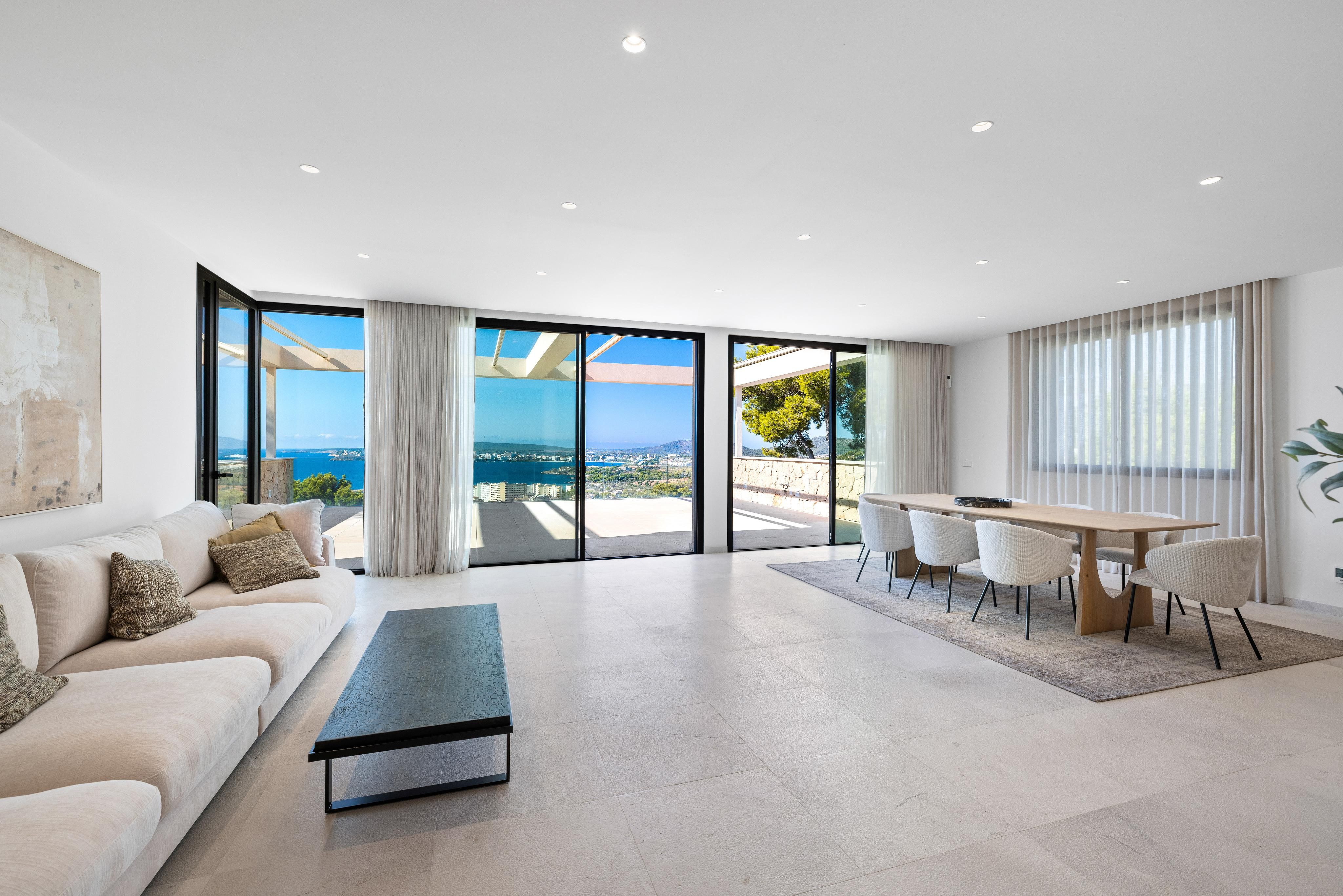 Ta nowo wybudowana willa w Portals oferuje wspaniałe widoki na morze w kierunku południowo-południowo-zachodnim na zatokę Palmanova, dzięki czemu jest idealnym miejscem do cieszenia się słońcem od rana do nocy, a jednocześnie znajduje się w odległości krótkiego spaceru od udogodnień miasta, plaży i portu Puerto Portals. Po wejściu do domu wita nas salon, jadalnia i kuchnia na otwartym planie, z której można wyjść na duży taras idealny do spożywania posiłków i letniego grillowania z przyjaciółmi. Na niższym piętrze znajduje się główna sypialnia z piękną łazienką i 2 kolejne sypialnie dla gości. Ze wszystkich sypialni jest bezpośredni dostęp do tarasu przy basenie i wyrównanego ogrodu idealnego dla dzieci. Istnieje duża piwnica z łazienką, idealna na strefę fitness lub wellness lub salę kinową. Ofertę uzupełnia przestronny taras na dachu. Wyposażenie obejmuje ogrzewanie podłogowe, klimatyzację (h/c), toaletę dla gości, pralnię, elektryczne rolety i strzeżony parking.