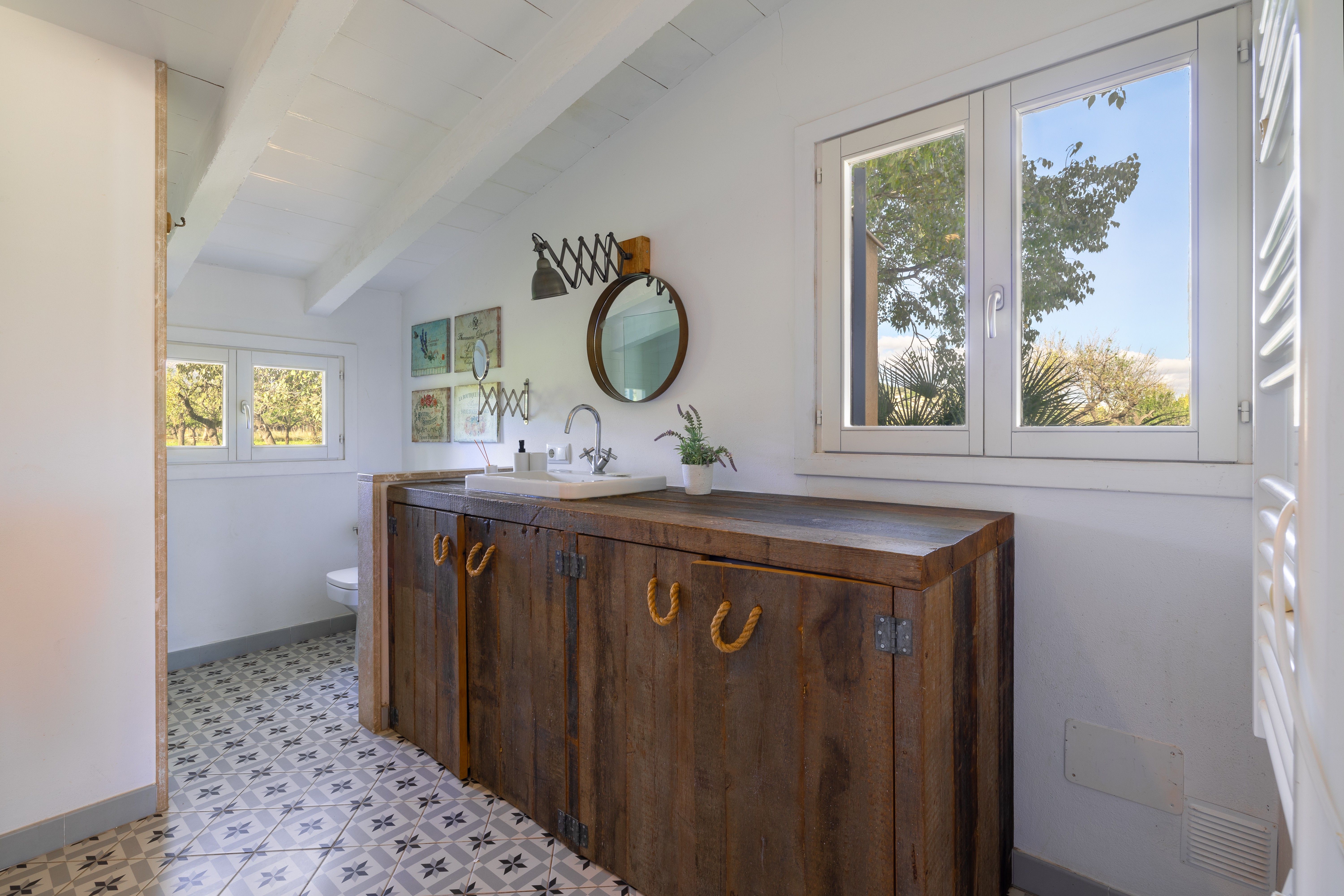 Ta piękna willa z panoramicznym widokiem na góry Tramuntana znajduje się zaledwie 5 minut od miejscowości Lloseta. Ten autentyczny majorkański dom posiada duży taras, basen i ogród na rustykalnej działce o powierzchni około 25 000 m². Posiada również licencję na wynajem wakacyjny dla sześciu osób i jest sprzedawany w pełni umeblowany. Powierzchnia mieszkalna 270 m² jest rozłożona na dwóch piętrach i oferuje mnóstwo przestrzeni. Na pierwszym piętrze znajduje się duży salon-jadalnia ze zintegrowaną nowoczesną kuchnią i kominkiem, a także sypialnia i łazienka z prysznicem. Na pierwszym piętrze znajduje się jasny salon połączony z dwiema dwuosobowymi sypialniami. Chociaż obecnie na tym piętrze nie ma łazienki, istnieje możliwość jej dodania. Każda sypialnia wyposażona jest w klimatyzację ciepło/zimno. Ta nieruchomość jest idealna dla każdego, kto szuka wiejskiego życia ze wszystkimi udogodnieniami w pobliżu. Inne cechy: Woda i prąd z sieci, basen, pomieszczenie gospodarcze, nowoczesne podłogi z kamienia naturalnego i parkietu.