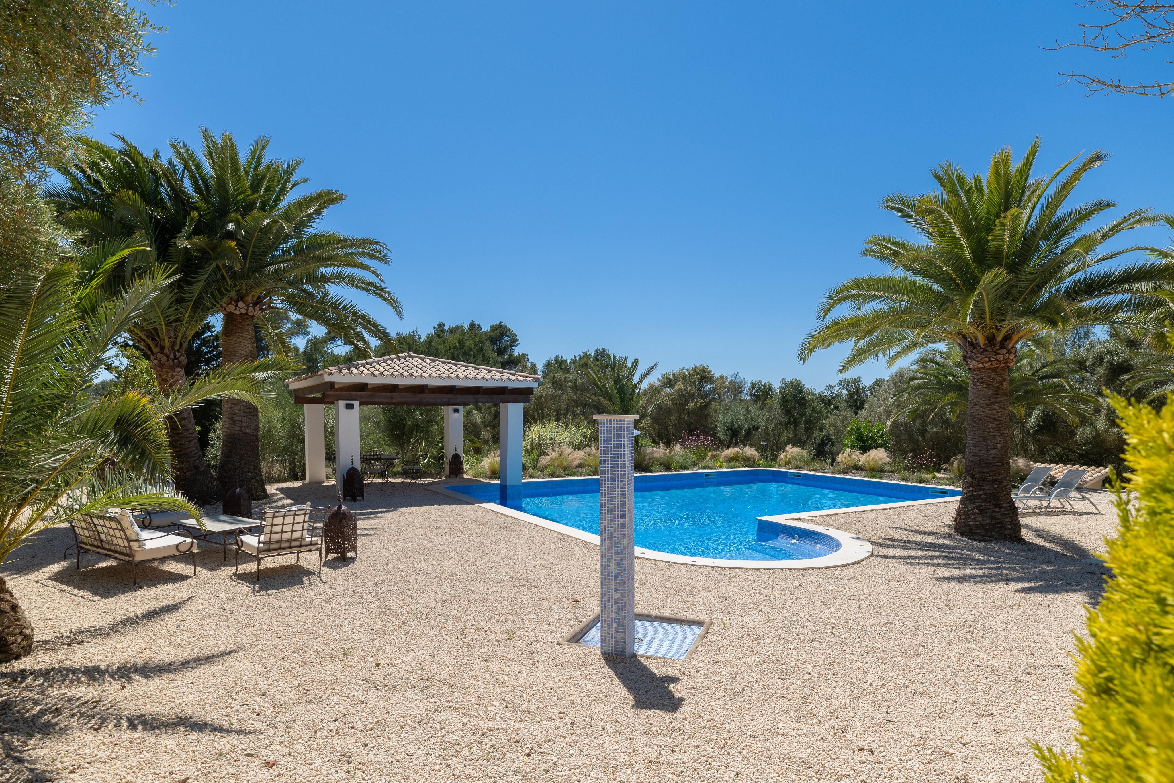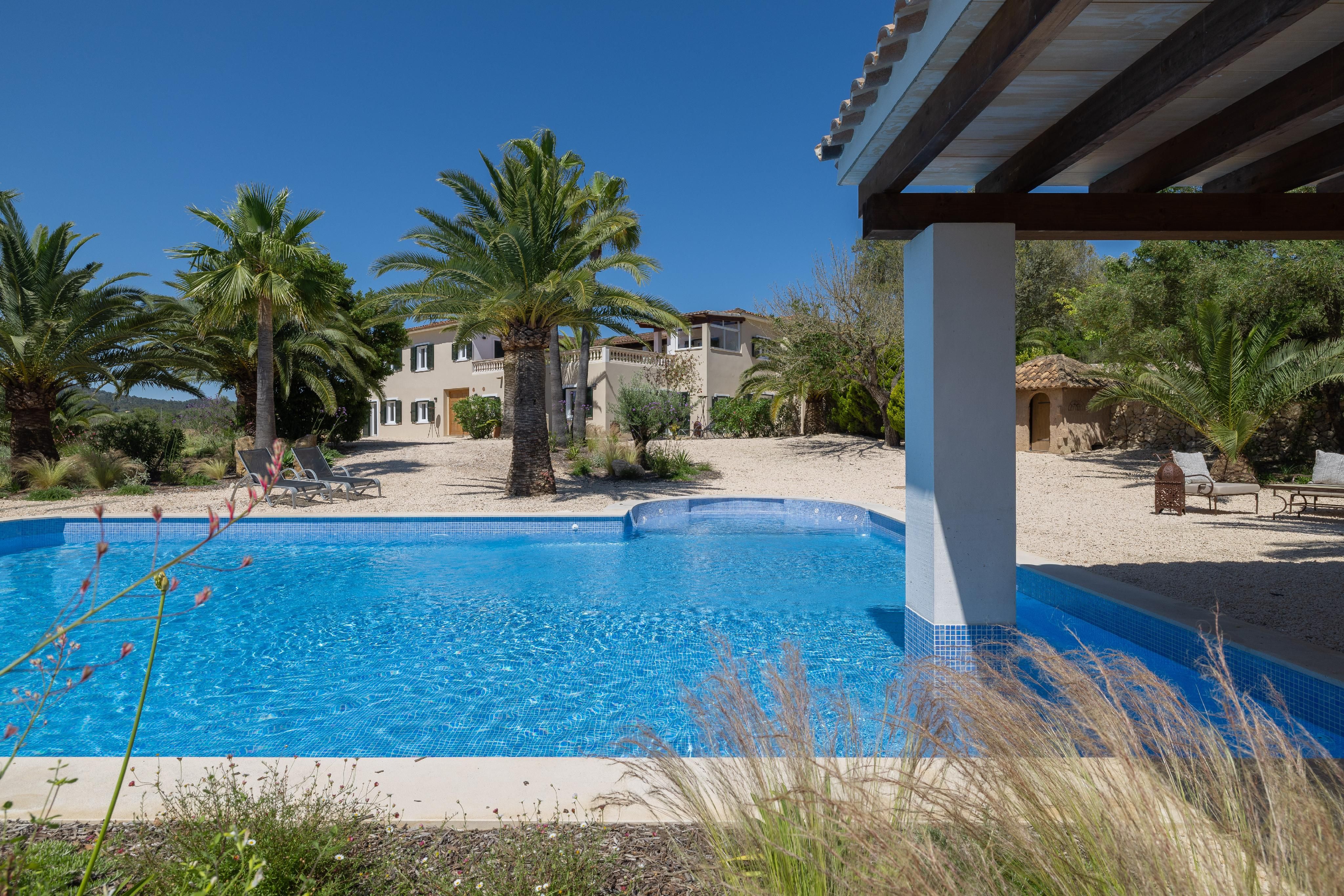 Ekskluzywny wiejski dom w Llucmajor - śródziemnomorski styl łączy się z nowoczesną elegancją. Ten pięknie odnowiony wiejski dom na obrzeżach Llucmajor to prawdziwy klejnot, który zachwyca niepowtarzalnym połączeniem śródziemnomorskiego uroku i nowoczesnego designu. Idylliczna oaza spokoju, która harmonijnie łączy prywatność, styl i naturę. Przestronna nieruchomość rozciąga się na dwóch piętrach i została niedawno zmodernizowana z wyczuciem estetyki i jakości. Zaraz po wejściu wita nas jasna, nowoczesna kuchnia, która płynnie przechodzi w salon i jadalnię na otwartym planie. Stąd masz bezpośredni dostęp do zachęcającej przestrzeni na zewnątrz. Przestronne sypialnie oferują nie tylko niezwykłe poczucie przestrzeni, ale także zapierające dech w piersiach widoki. Eleganckie łazienki, wyposażone w wysokiej jakości materiały, takie jak kamienne umywalki i nastrojowe oświetlenie LED, są małymi oazami wellness. Wszystko zostało przemyślane w najdrobniejszych szczegółach, aby stworzyć wyjątkowy komfort życia. Malowniczy wewnętrzny dziedziniec z romantycznymi łukami z naturalnego kamienia i przestronny taras na dachu z nową kuchnią na świeżym powietrzu zapraszają do cieszenia się śródziemnomorską atmosferą - czy to podczas relaksujących chwil w samotności, czy przytulnych wieczorów z przyjaciółmi i rodziną. Zadbany ogród z imponującymi palmami prowadzi bezpośrednio do basenu. Czeka tu na Ciebie przytulna weranda i stylowa strefa relaksu - idealne na relaks i cieszenie się życiem. Ta wyjątkowa kryjówka to coś więcej niż tylko dom - to miejsce, w którym śródziemnomorska radość życia łączy się z nowoczesną atmosferą. Nie czekaj dłużej: zrealizuj swoje marzenie o idealnym domu!