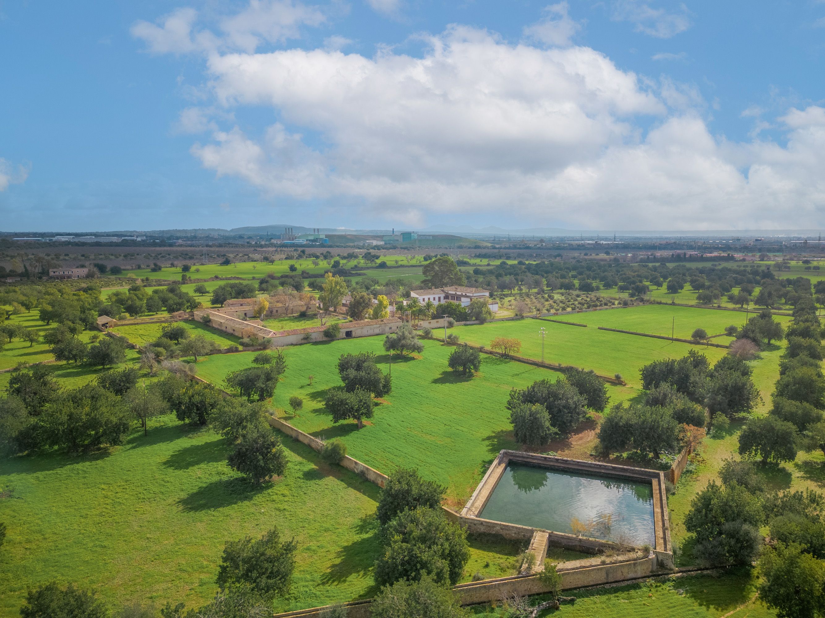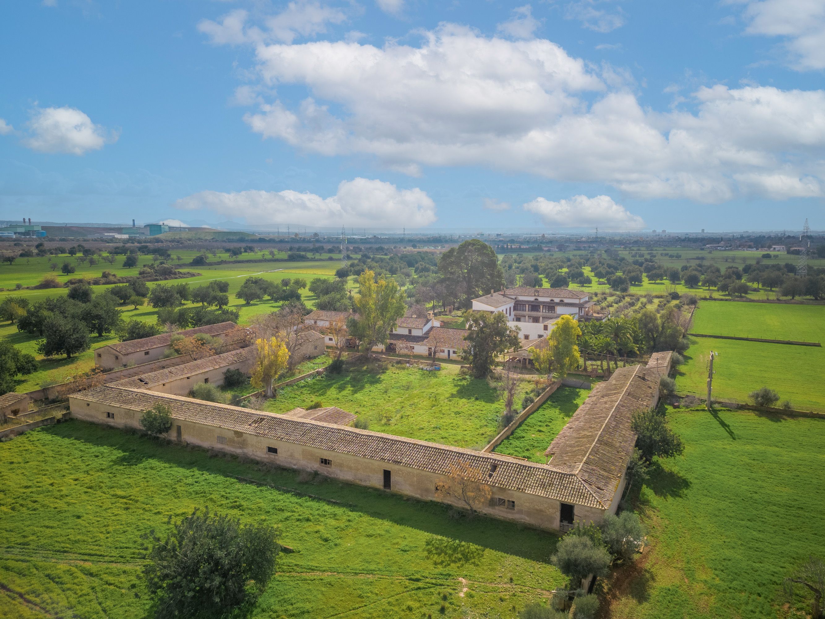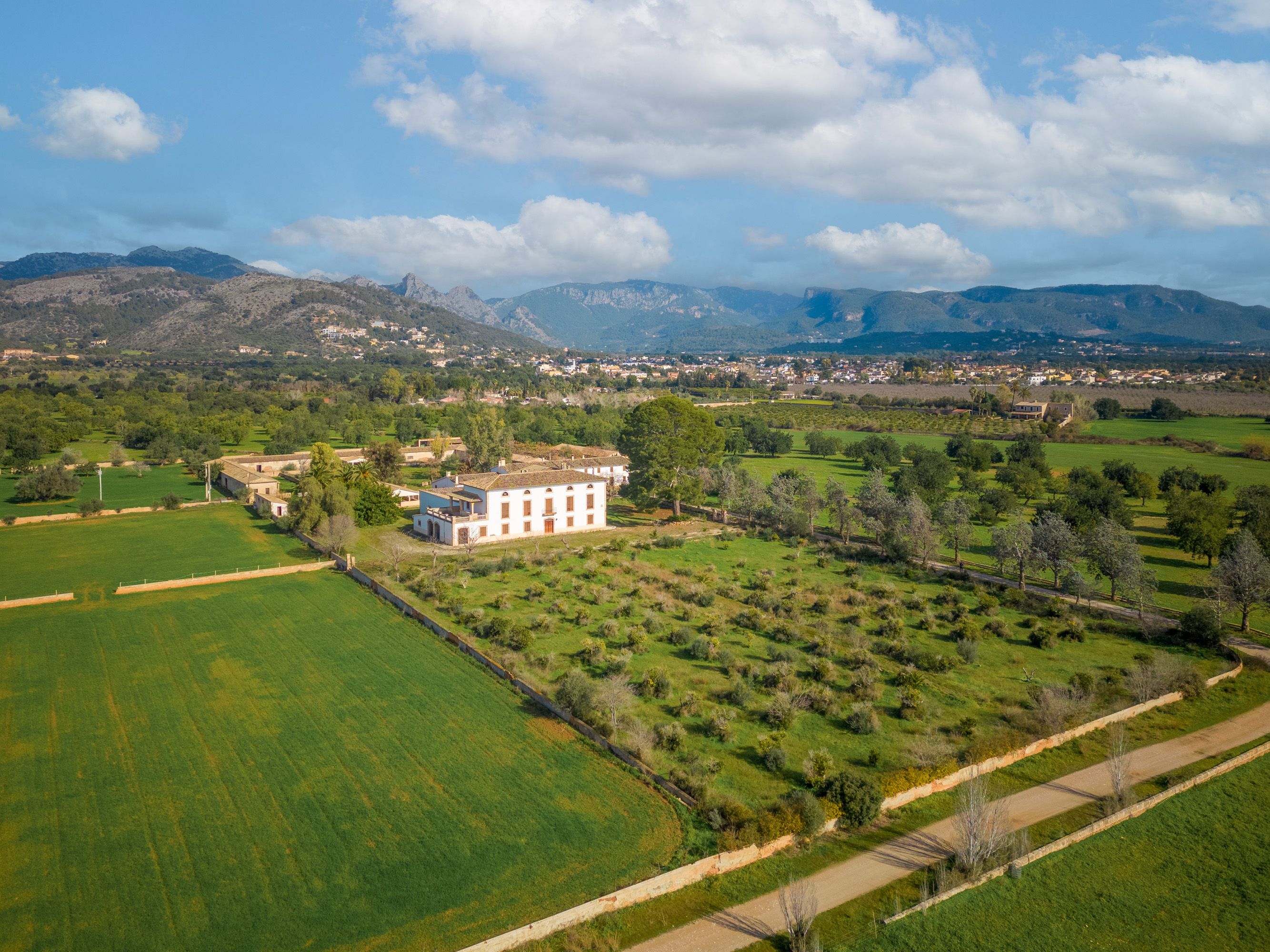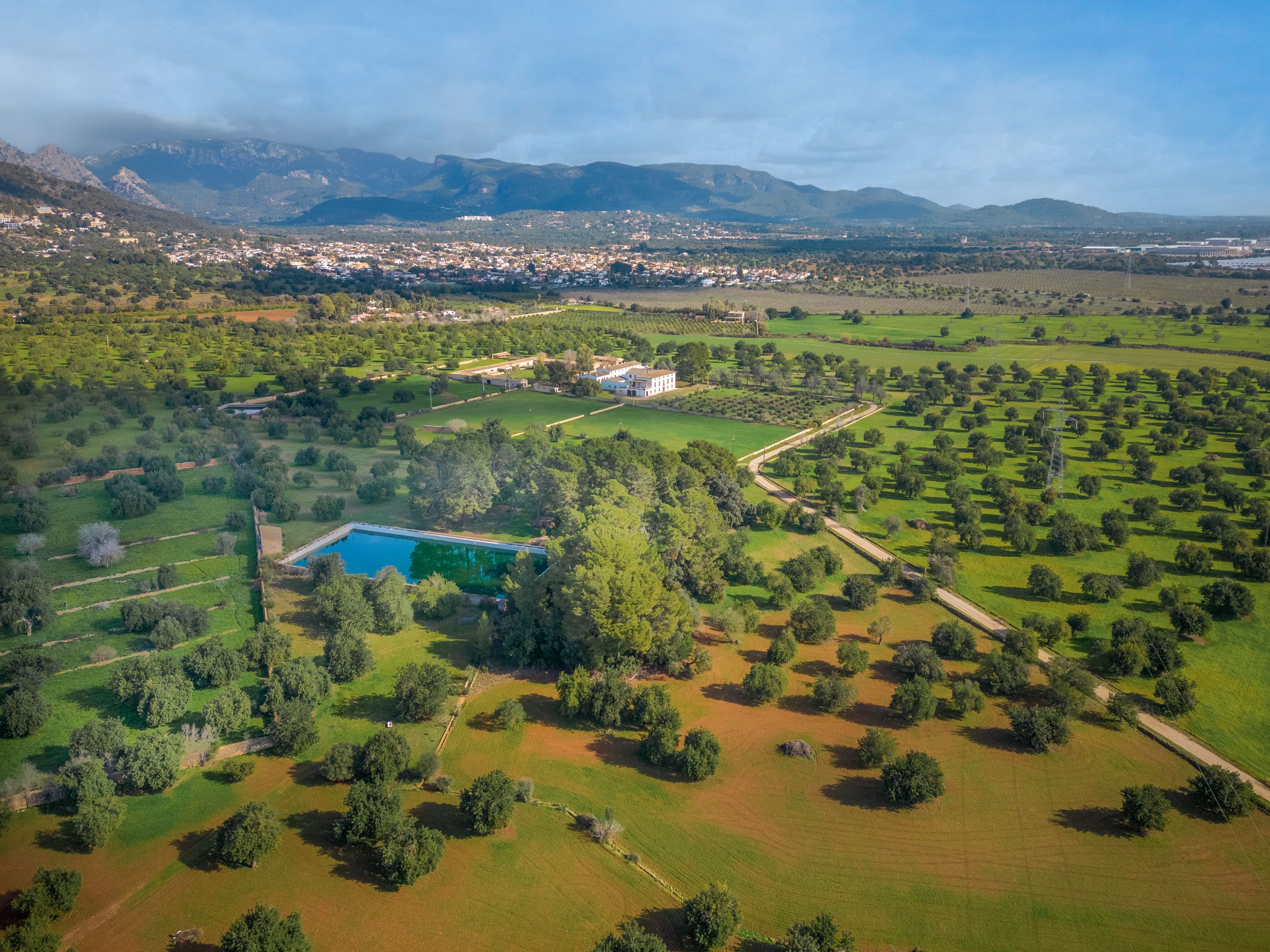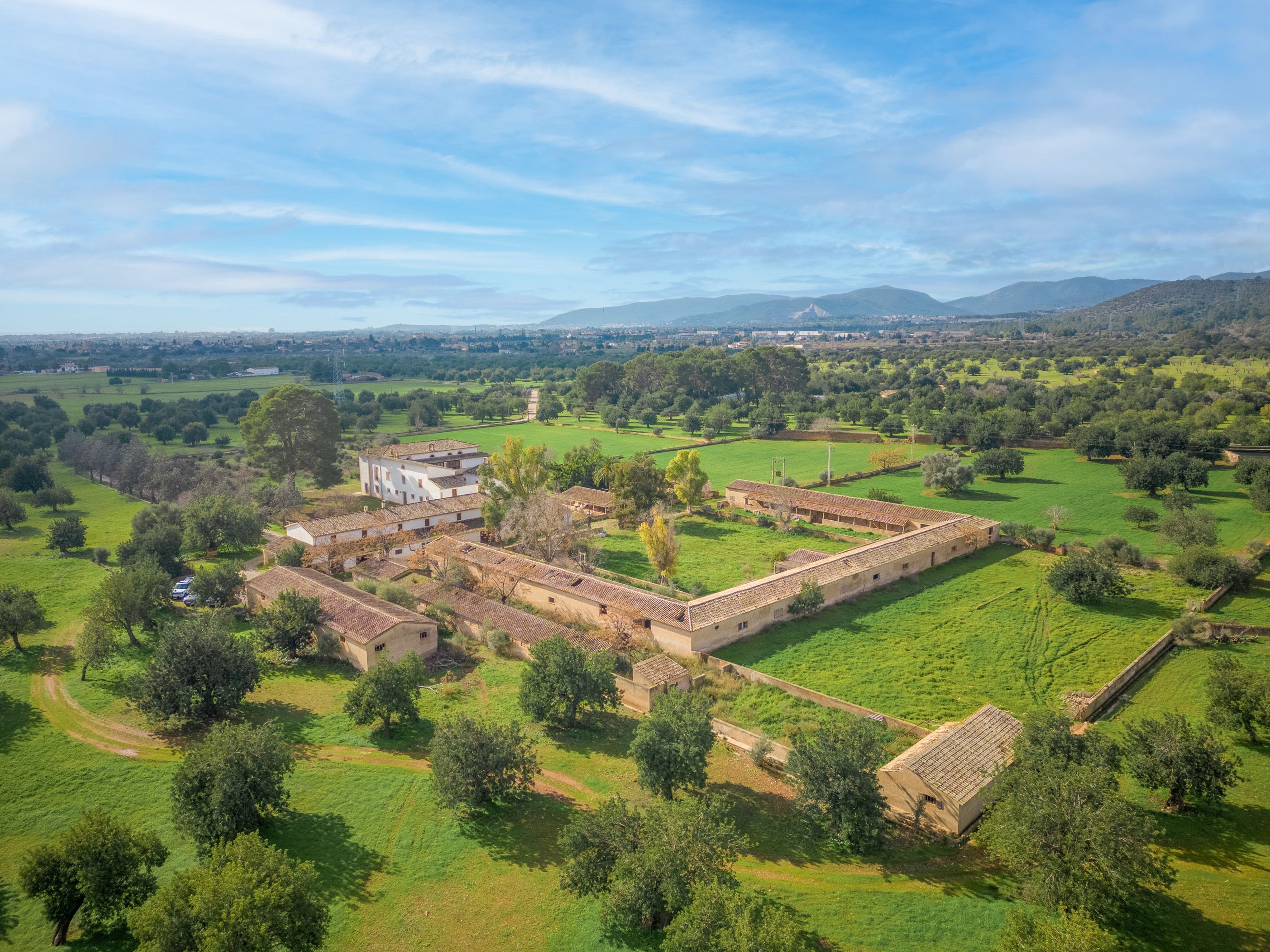 Ta wiejska posiadłość, zaledwie dziesięć minut jazdy od centrum Palmy, pochodzi z 1720 roku i składa się z dworu zbudowanego wokół wewnętrznego dziedzińca, a także różnych budynków mieszkalnych i rolniczych. Znajduje się tam również naturalne źródło o nazwie "Font des Mestre Pere", które zaopatruje nieruchomość w wodę, a także ogromne złoże wody. Nieruchomość jest sprzedawana z ważnym pozwoleniem na budowę hotelu agroturystycznego z 80 miejscami noclegowymi. Główny dom będzie zawierał 10 pokoi i będzie funkcjonował jako normalny wiejski hotel. Pozostałe 24 pokoje obok głównego domu są wyposażone w małą kuchnię, jadalnię i salon dla gości, którzy wynajmują na dłuższy okres czasu, ale nadal mogą korzystać z usług hotelu. Ponadto istnieje pozwolenie na budowę spa, odkrytego basenu i magazynu, który można w pełni wykorzystać jako przestrzeń magazynową do wynajmu długoterminowego. Istnieje również opcja zakupu sąsiedniej działki o powierzchni 825.000 m2, jeśli potrzebna jest większa powierzchnia.