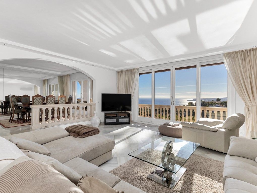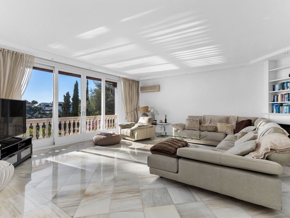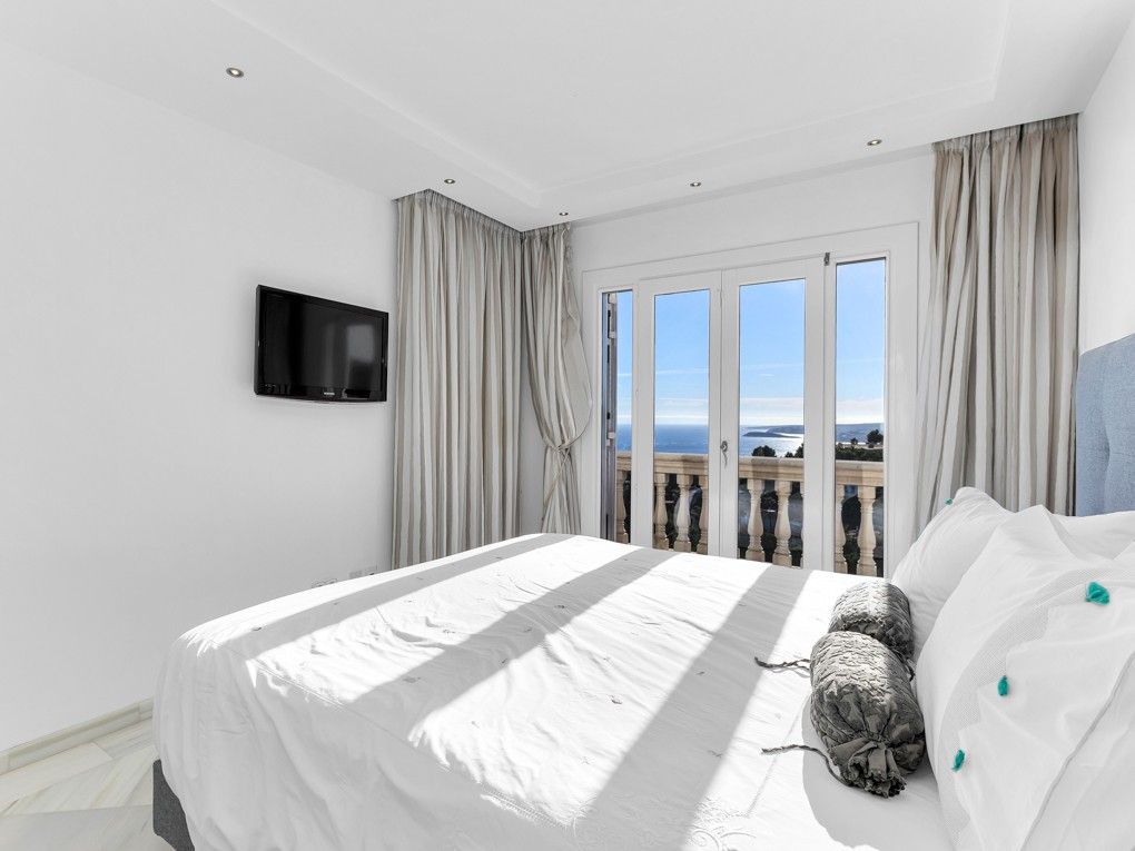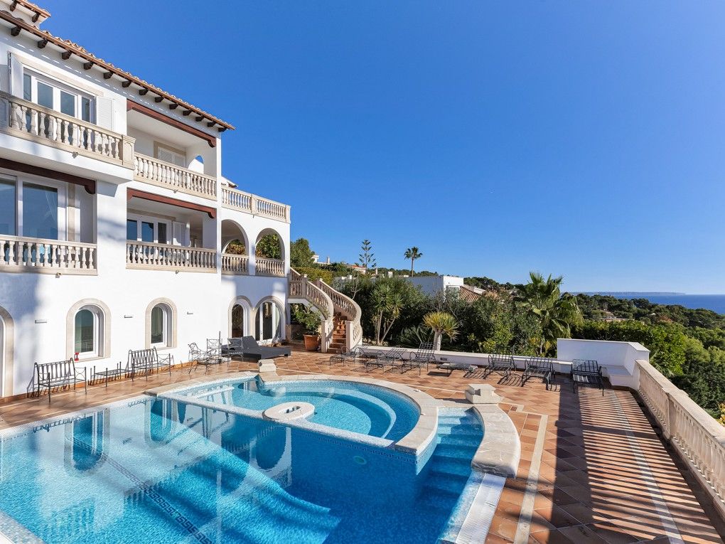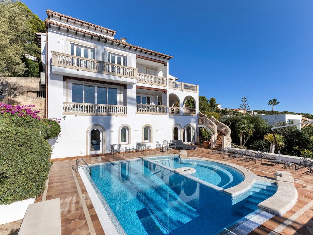 Ta piękna willa z widokiem na port jachtowy Puerto Portals znajduje się na wzgórzach Costa d'en Blanes. Układ nieruchomości obejmuje 4 piętra z windą zainstalowaną dla łatwego dostępu i składa się z następujących elementów: Wejście, duży salon / jadalnia z kominkiem i bezpośrednim dostępem do tarasu, przestronna kuchnia z częścią śniadaniową, 5 sypialni, 6 łazienek (2 z nich z łazienką), dodatkowa kuchnia w apartamencie dla gości i oddzielne biuro. Kilka otwartych i zadaszonych tarasów ze wspaniałymi widokami na morze oraz spektakularny basen z jacuzzi, fontanną i maszyną do pływania z przeciwprądem to idealne miejsca na relaks. Dodatki, takie jak podwójne szyby, marmurowe podłogi i dwa miejsca parkingowe. Lokalizacja jest idealna dla kogoś, kto chce nabyć nieruchomość w odległości kilku minut od portu, plaż, pola golfowego Bendinat, miasta Palma, a także w odległości zaledwie 20 minut jazdy samochodem od międzynarodowego lotniska.