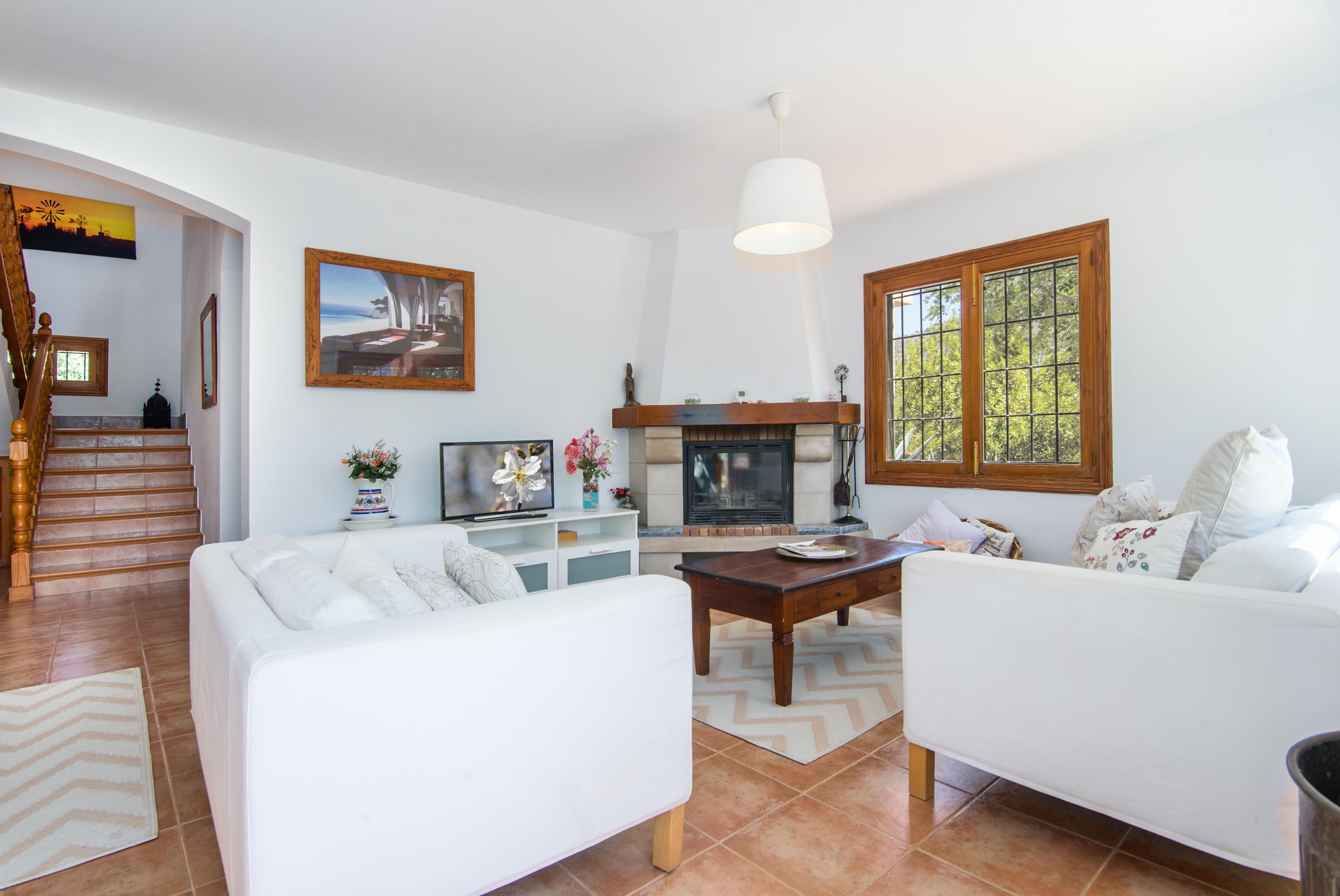 Otoczona naturą finca, zbudowana w 1997 roku, znajduje się w uprzywilejowanej lokalizacji i oferuje wspaniałe widoki na okolicę, a także na górę Galdent i "Puig de ses Bruixes". Znajduje się również zaledwie kilka minut od miejscowości Llucmajor. Dom jest podzielony na dwa piętra i ma trzy sypialnie i dwie łazienki. Na parterze znajduje się sypialnia z łazienką, kuchnia i spiżarnia. W przestronnym salonie-jadalni znajduje się kominek. W ogrodzie znajduje się duży basen i kilka możliwości spędzania czasu na świeżym powietrzu i cieszenia się przyrodą. Dom ma centralne ogrzewanie olejowe, prąd z sieci i wodę z ciężarówki/zbiornika.