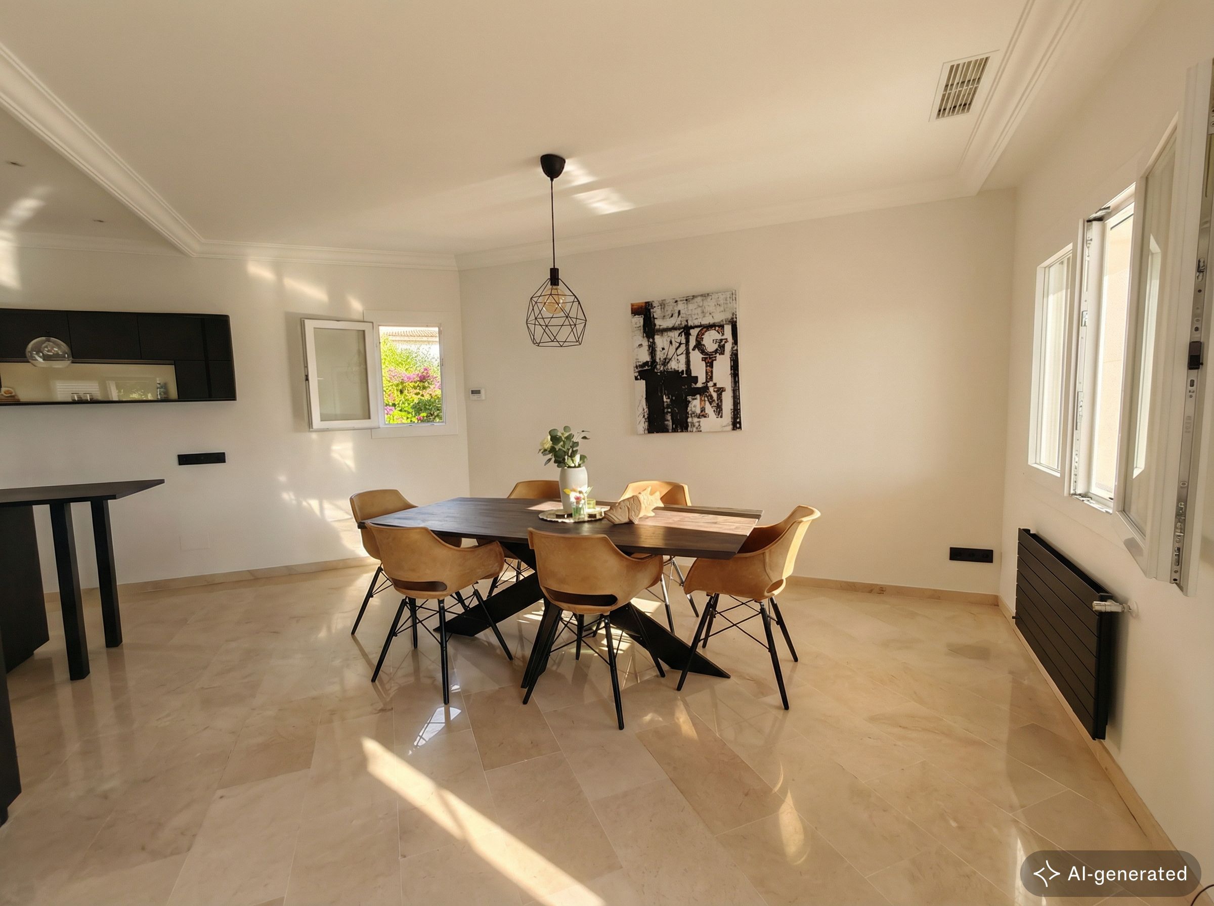 Typ: Dom • Region: South • Rok budowy: 2001 • Ostatnia renowacja: 2021 • Całkowita powierzchnia: 428 ㎡ • Całkowita liczba pokoi: 5 • Sypialnie: 4 • Łazienki: 3 • Powierzchnia mieszkalna: 428 ㎡ • Powierzchnia działki: 1.100 ㎡ • Balkony: 2 • Parking: 4 • Taras • Kuchnia • Kominek • Basen • Ogrzewanie: Centralne ogrzewanie, Klimatyzator split • Rodzaj podłogi: Marmur