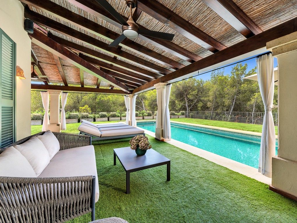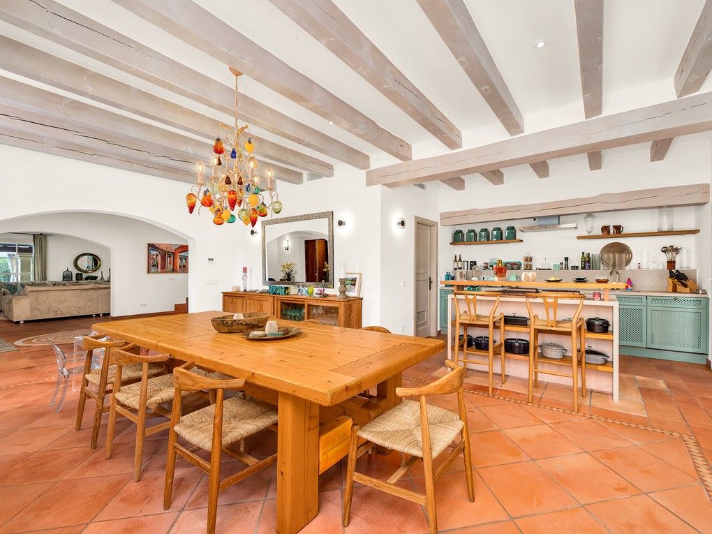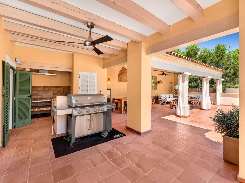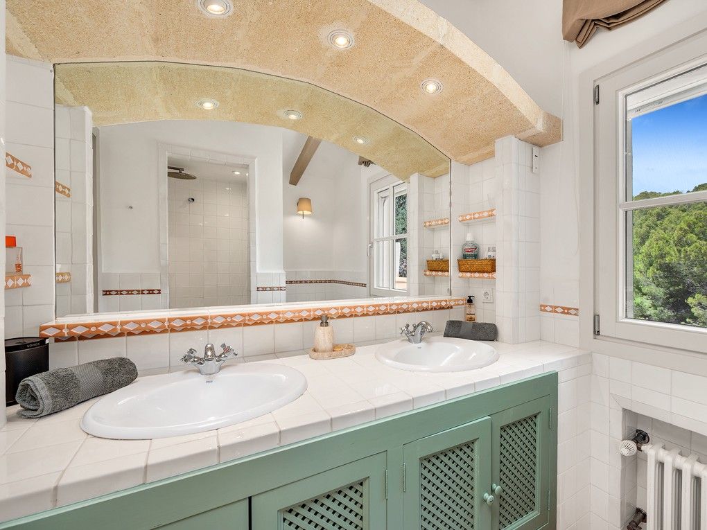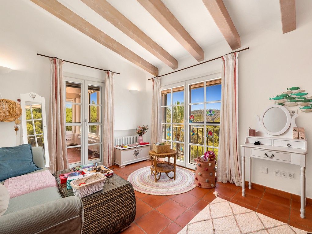 Ta wymarzona willa w śródziemnomorskim stylu finca zachwyca wyjątkową lokalizacją, w pobliżu plaży i pola golfowego Camp de Mar oraz zaledwie kilka minut jazdy samochodem od znanego naturalnego portu Port Andratx. Willa znajduje się w ślepej uliczce tuż obok rezerwatu przyrody i oferuje absolutny spokój i prywatność. Dzięki idealnej orientacji południowej, ta nieruchomość oferuje słońce przez cały dzień i zapierające dech w piersiach widoki na morze i okoliczne gaje sosnowe. Zbudowana w 2002 roku w stylu śródziemnomorskim willa została niedawno zmodernizowana i jest w bardzo dobrym stanie. Dzięki przestronnym tarasom i podgrzewanemu basenowi (11x4 metry) oferuje mnóstwo miejsca dla całej rodziny. Ponadto wydano pozwolenie na całkowitą przebudowę nieruchomości, co dodatkowo zwiększa jej atrakcyjność. Istniejąca willa składa się na parterze z przestronnego salonu, jadalni z kuchnią na otwartym planie, toalety dla gości i bezpośredniego dostępu do otwartego i zadaszonego tarasu z basenem. Na piętrze znajduje się część rodzinna z 4 sypialniami, 1 łazienką i 2 garderobami, a także skrzydło dla gości z 2 dodatkowymi sypialniami i 1 łazienką. W piwnicy znajduje się kolejna sypialnia z łazienką, pomieszczenie gospodarcze, sauna, sala fitness i garaż na 2 samochody. Cena zakupu obejmuje 3 sąsiednie działki o łącznej powierzchni 5000 m2. Pozostałe cechy to: Podłogi z terakoty, kominek, wbudowane szafy, podwójne szyby, centralne ogrzewanie, klimatyzacja, winda i winda towarowa, system dźwiękowy Sonos, sauna, system alarmowy, a także podgrzewany basen z prysznicem na zewnątrz i wiele więcej.