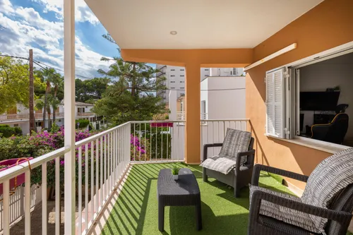 Ten przestronny i jasny apartament na pierwszym piętrze znajduje się w Playa de Palma, zaledwie 200 metrów od plaży i promenady. Zaledwie kilka minut spacerem od morza, to atrakcyjne mieszkanie oferuje około 85 m² powierzchni mieszkalnej. Składa się z trzech dwuosobowych sypialni, z których dwie są wyposażone w praktyczne wbudowane szafy, a także dwóch łazienek, z których jedna jest łazienką. Zalany światłem salon i jadalnia tworzą zachęcającą atmosferę, a oddzielna, w pełni wyposażona kuchnia nie pozostawia nic do życzenia. Na szczególną uwagę zasługuje słoneczny taras z niezakłóconym widokiem - idealny do cieszenia się śródziemnomorskim klimatem. Mieszkanie posiada klimatyzację we wszystkich pomieszczeniach. Dodatkowa komórka lokatorska oferuje praktyczną przestrzeń do przechowywania. Zadbany kompleks mieszkalny obejmuje piękny wspólny ogród z drzewami owocowymi i znajduje się w cichej, przyjaznej rodzinom okolicy. W bezpośrednim sąsiedztwie znajdują się supermarkety, restauracje, banki, transport publiczny i ścieżki spacerowe.