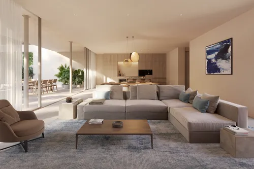 W samym sercu południowo-zachodniej Majorki, w otoczeniu bujnej śródziemnomorskiej roślinności, nad samym morzem powstaje kompleks mieszkaniowy VERDEMAR z 11 wolnostojącymi willami z prywatnymi basenami bez krawędzi. Lokalizacja jest cicha i centralna, zaledwie 15 minut od Palmy i 25 minut od lotniska. Zatoka Cala Vinyes z piaszczystą plażą, turkusowymi wodami i przyjemnym barem na plaży znajduje się zaledwie kilka minut spacerem od hotelu. Codzienne życie rodzinne jest również łatwiejsze dzięki bliskości międzynarodowych szkół, obiektów sportowych i rekreacyjnych. Miłośnicy golfa mają do dyspozycji Poniente Golf Club i inne pola golfowe w okolicy. 11 willi ma wspólne elementy projektowe i charakteryzuje się przede wszystkim architekturą o czystych liniach i nowoczesną interpretacją tradycyjnego stylu muru pruskiego, a także połączeniem przestrzeni wewnętrznej i zewnętrznej. Ciesz się intymnością i spokojem, które oferują wille. Szczególną uwagę zwrócono na etapie planowania, aby zapewnić, że orientacja budynków maksymalizuje prywatność. Niemniej jednak ścieżka łącząca wszystkie domy i prywatny teren zielony tworzy poczucie wspólnoty. Szczególną uwagę zwrócono również na wykorzystanie lokalnych, zrównoważonych materiałów. Ponadto metalowa siatka otaczająca 3 frontowe sypialnie na piętrze jest nie tylko imponującym elementem wizualnym, ale także umożliwia swobodną cyrkulację powietrza, jednocześnie filtrując bezpośrednie światło słoneczne, utrzymując chłód w domach. Jednocześnie pozwala przekształcić sypialnie i taras w zaciszną oazę spokoju. Wszystkie sypialnie (3-4) są przestronne i wyposażone w szafy oraz łazienki. Główna sypialnia oferuje zintegrowaną, ale oddzielną łazienkę z ogromnym prysznicem spa. Centralnym punktem willi jest salon i jadalnia z otwartą kuchnią typu bulthaup z wyspą kuchenną i oknami sięgającymi od podłogi do sufitu, które otwierają się całkowicie na taras i prywatny ogród z basenem, tworząc płynne przejście od życia wewnątrz do życia na świeżym powietrzu. Fakt, że w całym domu i na tarasach położono jasną, wielkoformatową podłogę z kamienia naturalnego, stwarza dodatkowe poczucie przestronności. Różne drewniane elementy i ciepłe oświetlenie tworzą przytulną atmosferę. Inne funkcje obejmują wbudowane urządzenia Miele, krany i armaturę Gessi, minimalistyczne okna METRA, inteligentny dom KNX, indywidualnie sterowaną klimatyzację i ogrzewanie podłogowe. Każdy dom posiada również garaż lub zadaszone miejsca parkingowe.