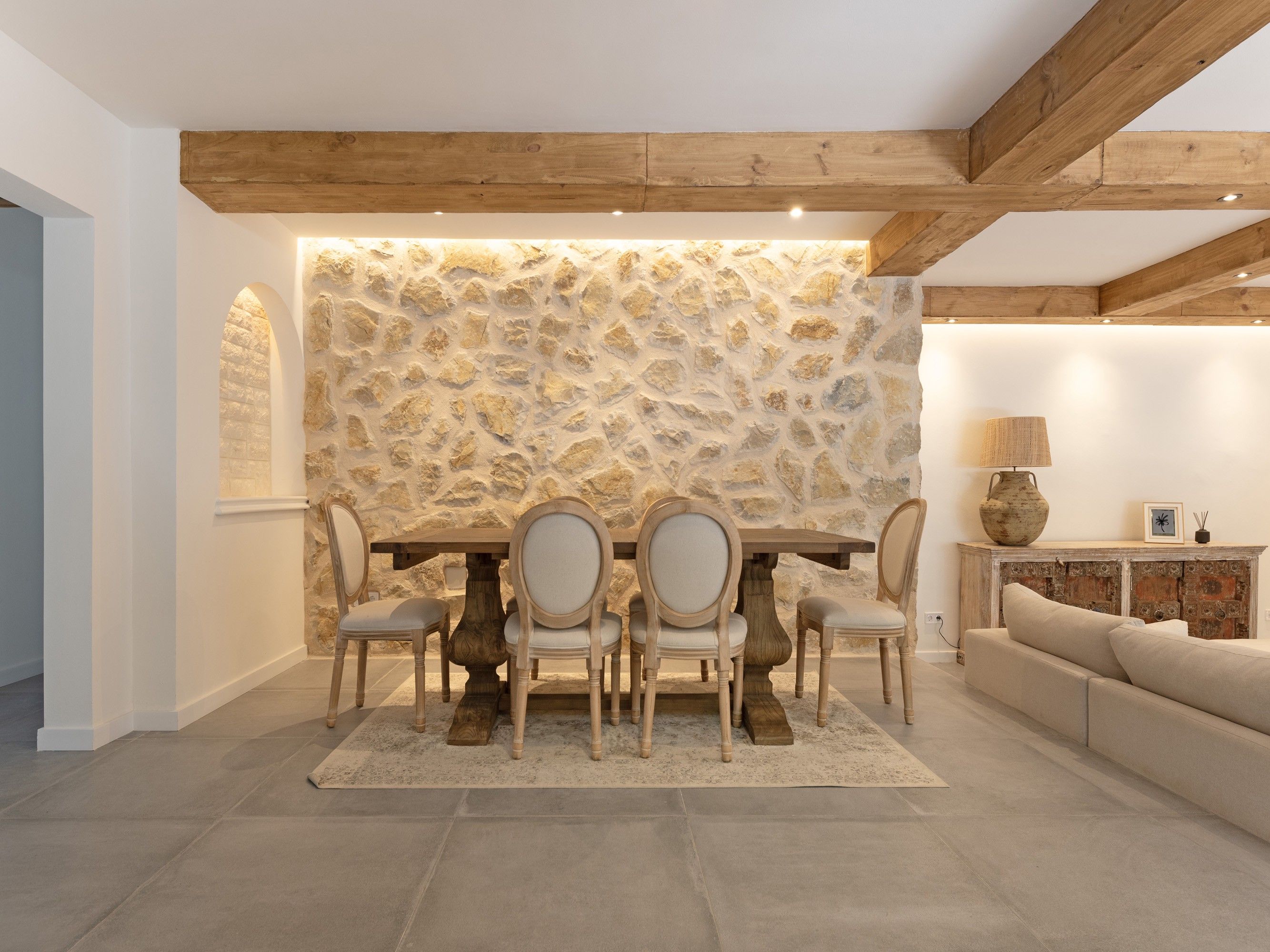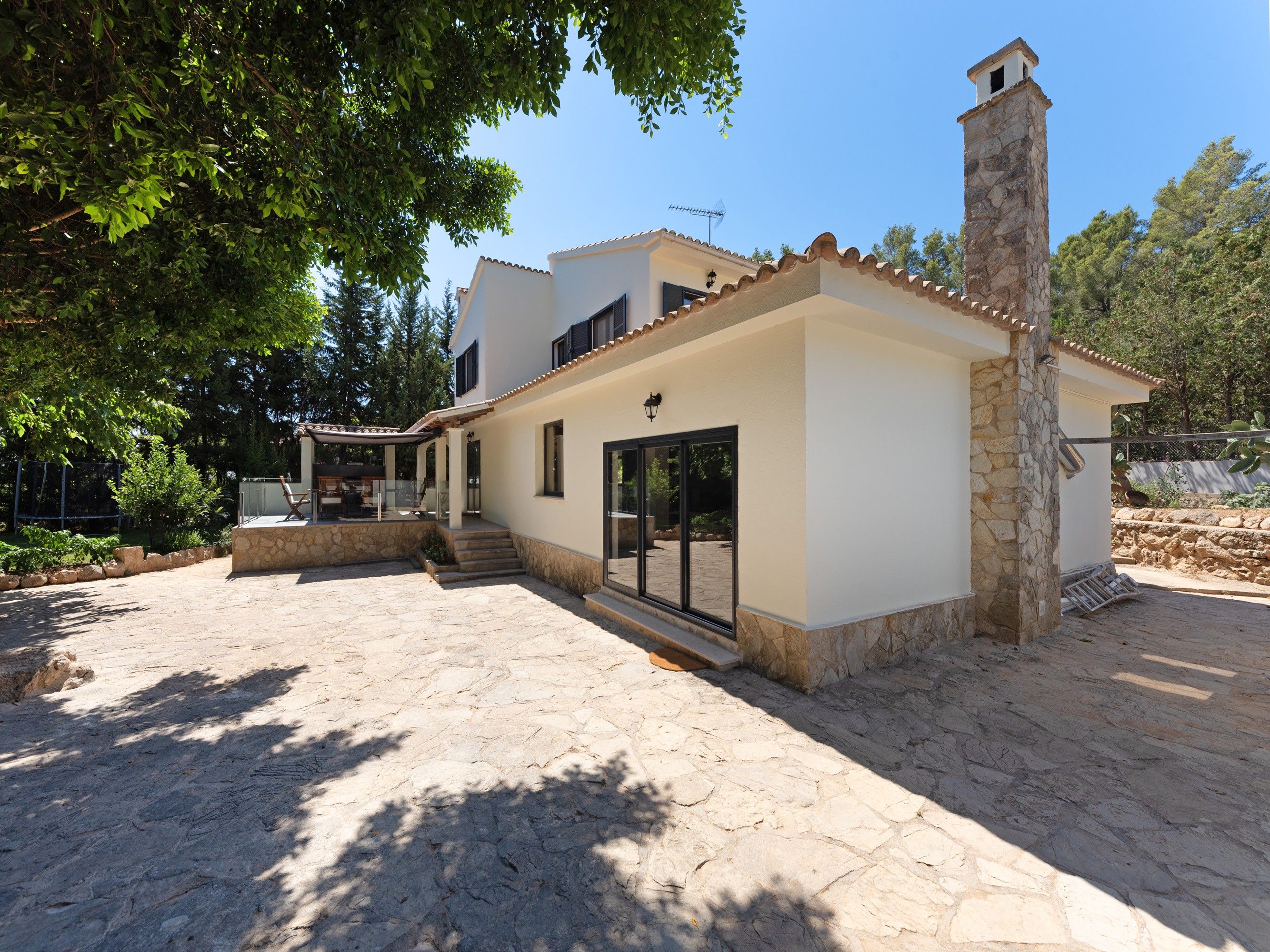 Odkryj luksus i zrównoważony rozwój w tej fantastycznie odnowionej willi w Esporles, która została ukończona w lipcu 2024 roku. Położony na działce o powierzchni 2,184 m2 z 389 m2 powierzchni mieszkalnej, dom ten oferuje komfort i ekologiczne życie. Po wejściu do willi odkryjesz pięć przestronnych sypialni, w tym apartament główny z własną garderobą i tarasem o powierzchni 10 m2. Trzy luksusowe łazienki wyposażone są w detale z trawertynu, brodziki z kamienia rzecznego i podświetlane lustra, tworząc spokojną i relaksującą atmosferę. Pomieszczenia mieszkalne są zalane naturalnym światłem dzięki dużym oknom i przesuwanym drzwiom, które otwierają się bezpośrednio na śródziemnomorski ogród. Nowoczesna kuchnia, idealna dla entuzjastów gotowania, zachwyca wysokiej jakości powierzchniami i najnowocześniejszymi urządzeniami. Prawdziwy raj czeka na Ciebie na zewnątrz: basen ze słoną wodą zachęca do relaksu, a domek przy basenie oferuje dodatkowy komfort; jest też garaż. Atrakcją jest duży ogród z 13 różnymi drzewami owocowymi, w tym drzewami oliwnymi i ogrodem warzywnym, który zapewnia świeże i ekologiczne produkty. Inne funkcje: Najnowocześniejszy system solarny, centralne ogrzewanie, klimatyzacja i kompletny system domotica do sterowania oświetleniem i drzwiami wejściowymi. Renowacja obejmuje luksusowe wykończenia, okna z podwójnymi szybami i szybki internet światłowodowy we wszystkich pokojach. Ta willa jest świadectwem wysokiej jakości rzemiosła i oferuje połączenie luksusu oraz ekologicznego i zrównoważonego życia w samym sercu Esporles.