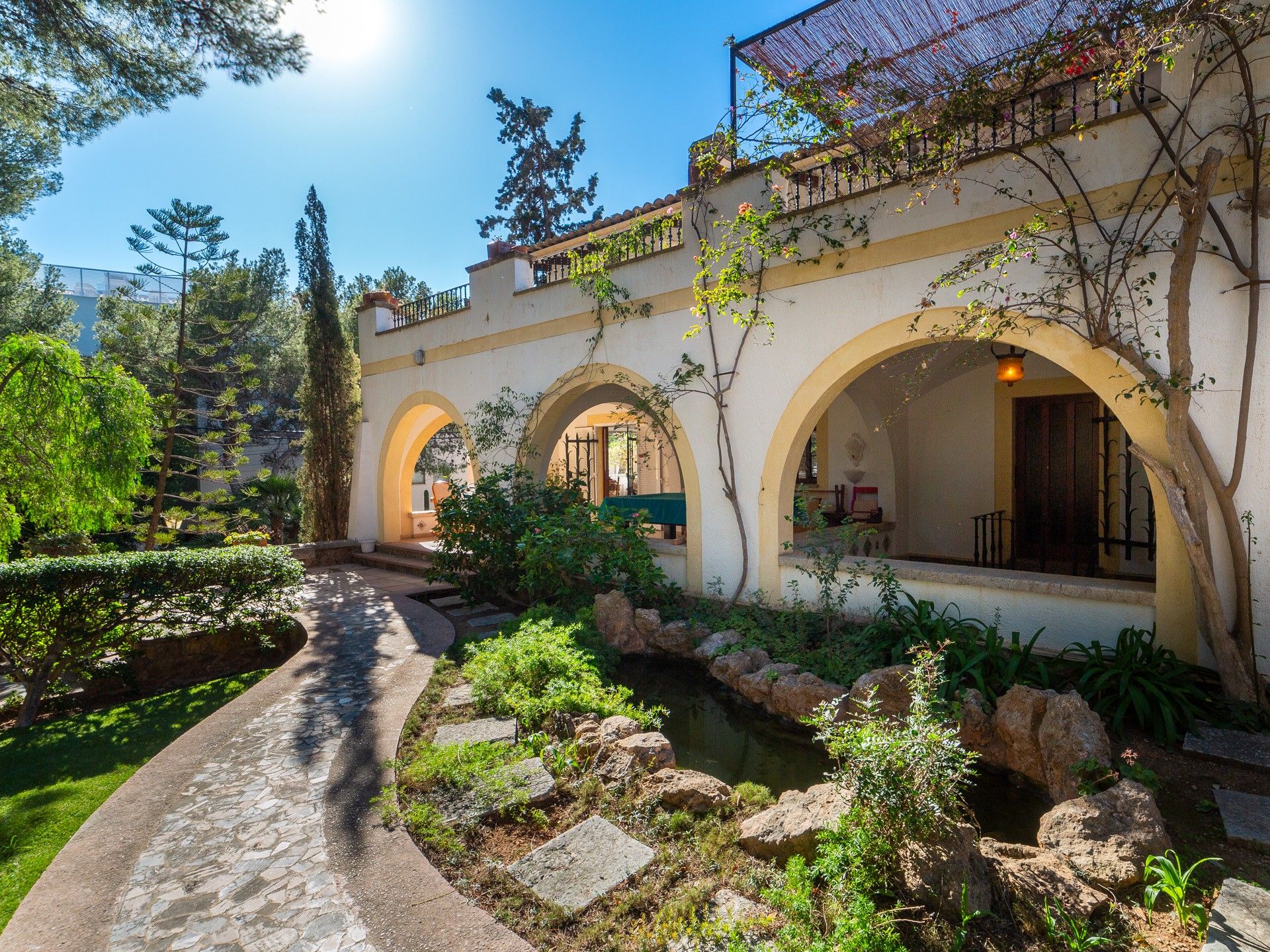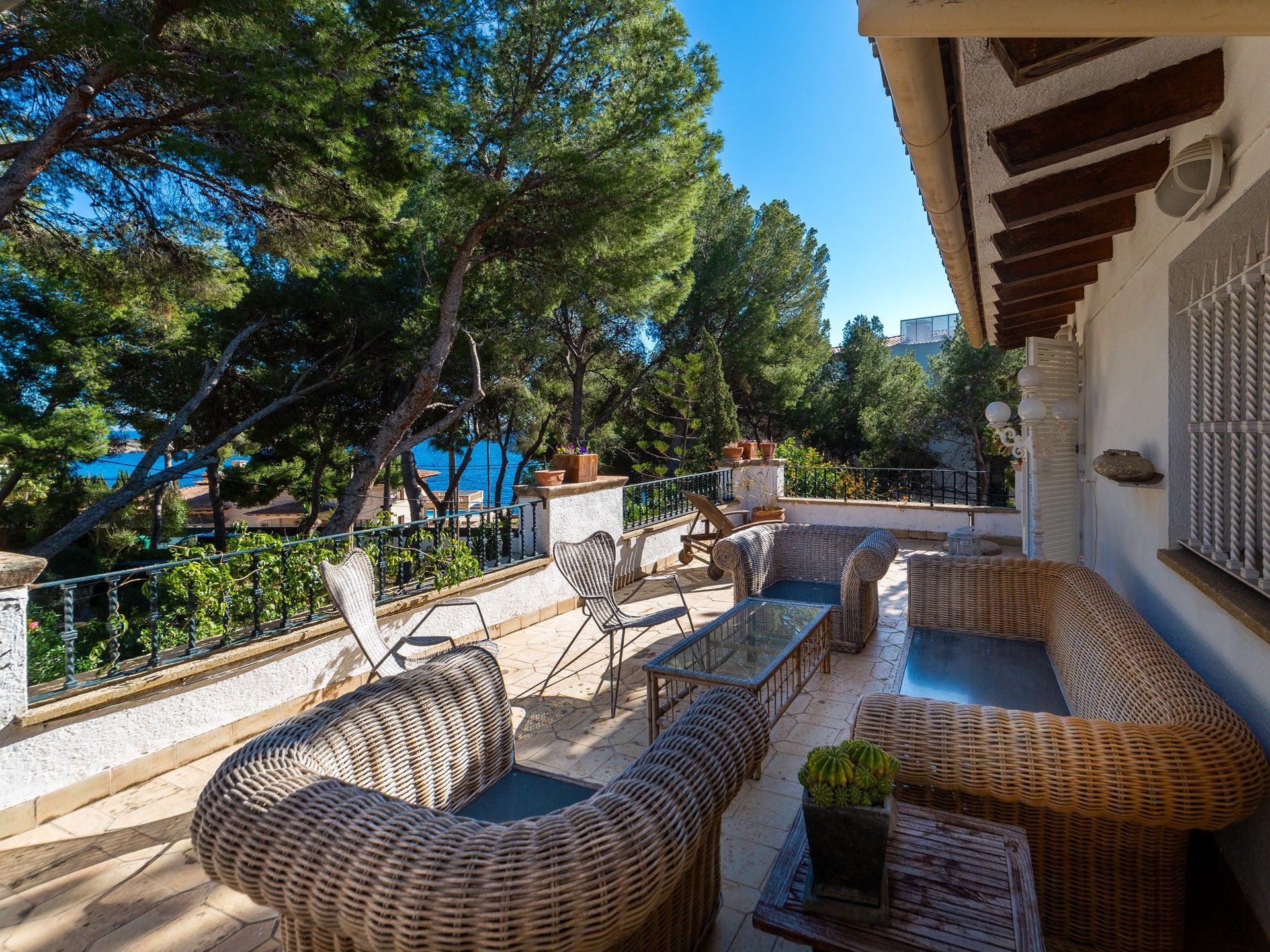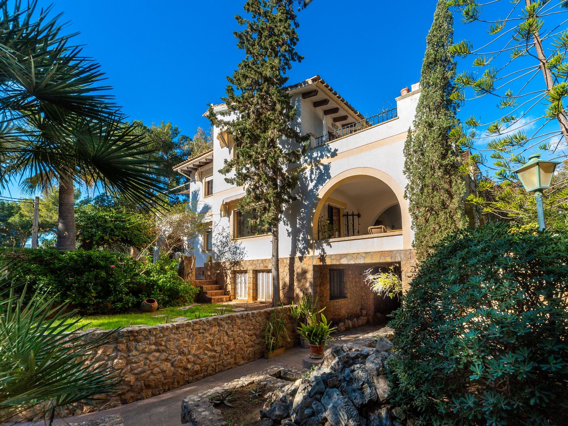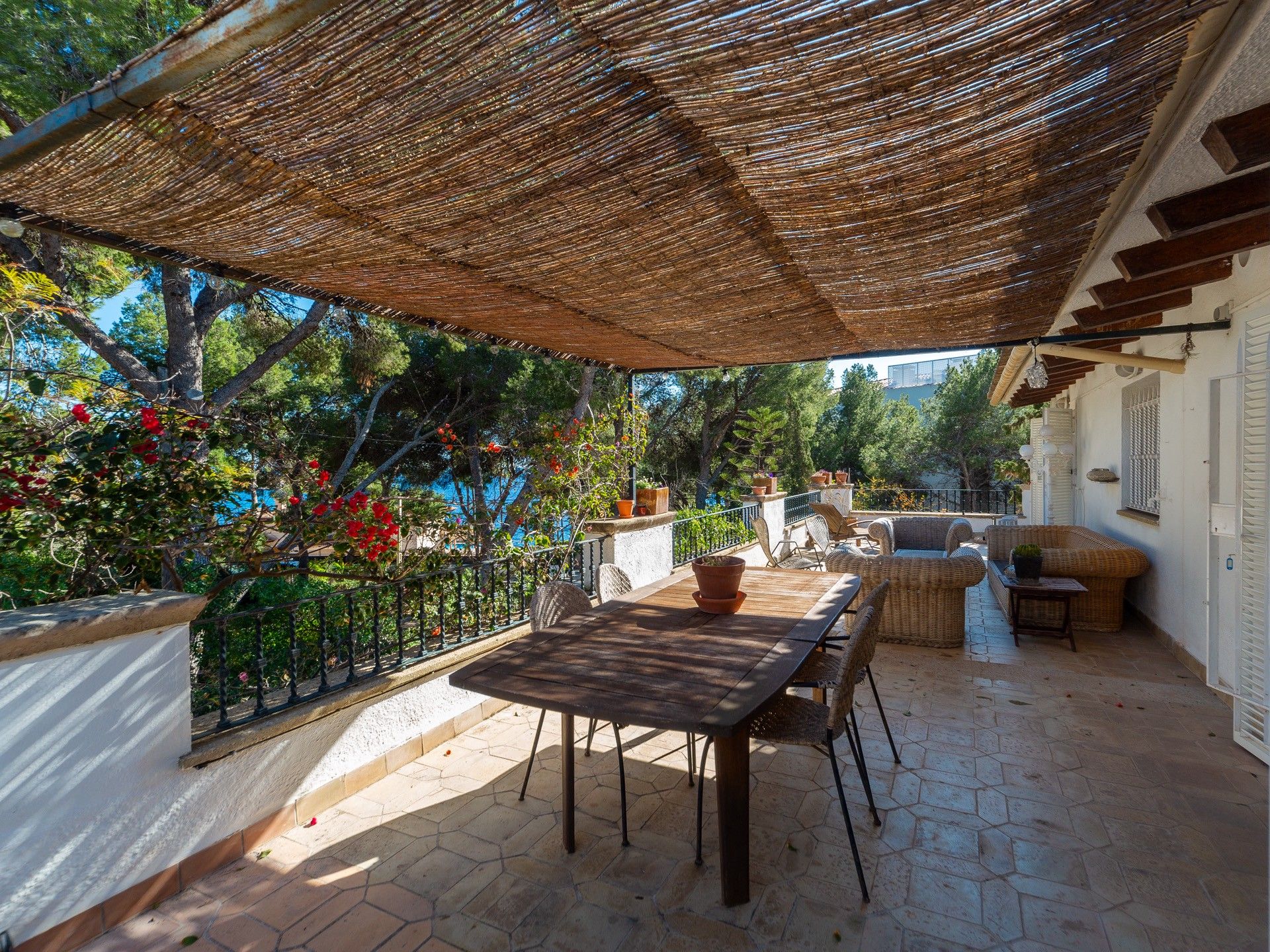Wyobraź sobie, że jesteś zaledwie kilka kroków od śródziemnomorskiej bryzy i ciesz się nadmorskim urokiem tej wyjątkowej willi drugiej linii w Old Bendinat. Dzięki klasycznej śródziemnomorskiej architekturze i obfitości naturalnego światła, ta wyjątkowa nieruchomość oferuje idealne połączenie elegancji i komfortu w jednej z najbardziej ekskluzywnych części wyspy. Willa oferuje częściowe widoki na morze i obejmuje przytulny salon z kominkiem, przytulną jadalnię i dobrze wyposażoną kuchnię. Posiada sześć sypialni i pięć łazienek, z których cztery są z łazienkami, a także dwa wielofunkcyjne pokoje, piwnicę na wino i mnóstwo miejsca do przechowywania. Pięknie zagospodarowany płaski śródziemnomorski ogród z drzewami cytrusowymi zapewnia spokojne odosobnienie. Obszar zewnętrzny jest przeznaczony zarówno do relaksu, jak i rozrywki i obejmuje zadaszony basen o powierzchni 42 m², miejsce do grillowania i kilka tarasów idealnych do spotkań towarzyskich z rodziną i przyjaciółmi. Inne funkcje obejmują dwa podwójne garaże, kominki, system ogrzewania, automatyczne nawadnianie ogrodu i drewnianą stolarkę. Jest to rzadka okazja do posiadania naprawdę wyjątkowego domu w jednej z najbardziej pożądanych lokalizacji na wyspie, idealnej dla wymagających nabywców poszukujących ponadczasowego śródziemnomorskiego stylu życia.