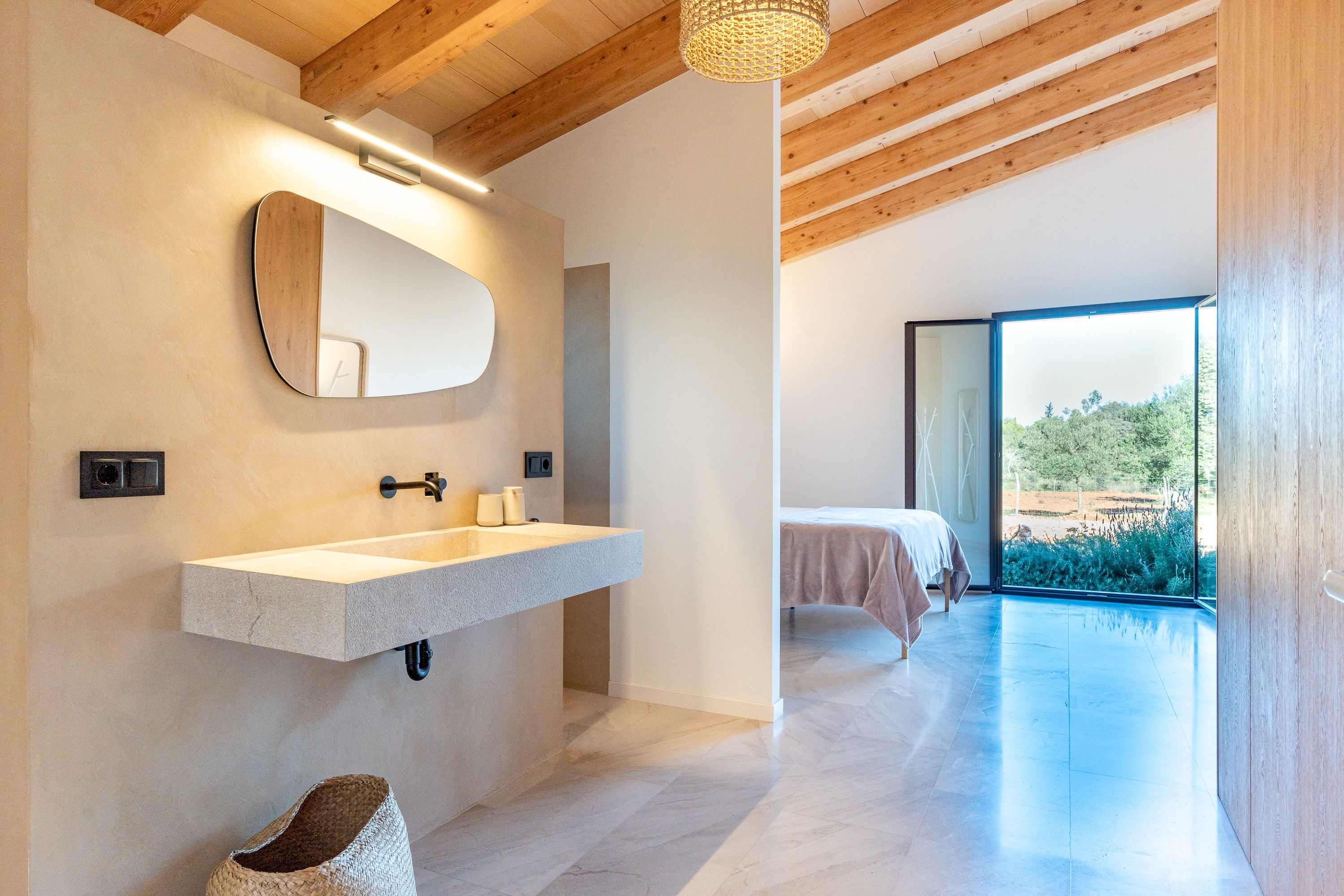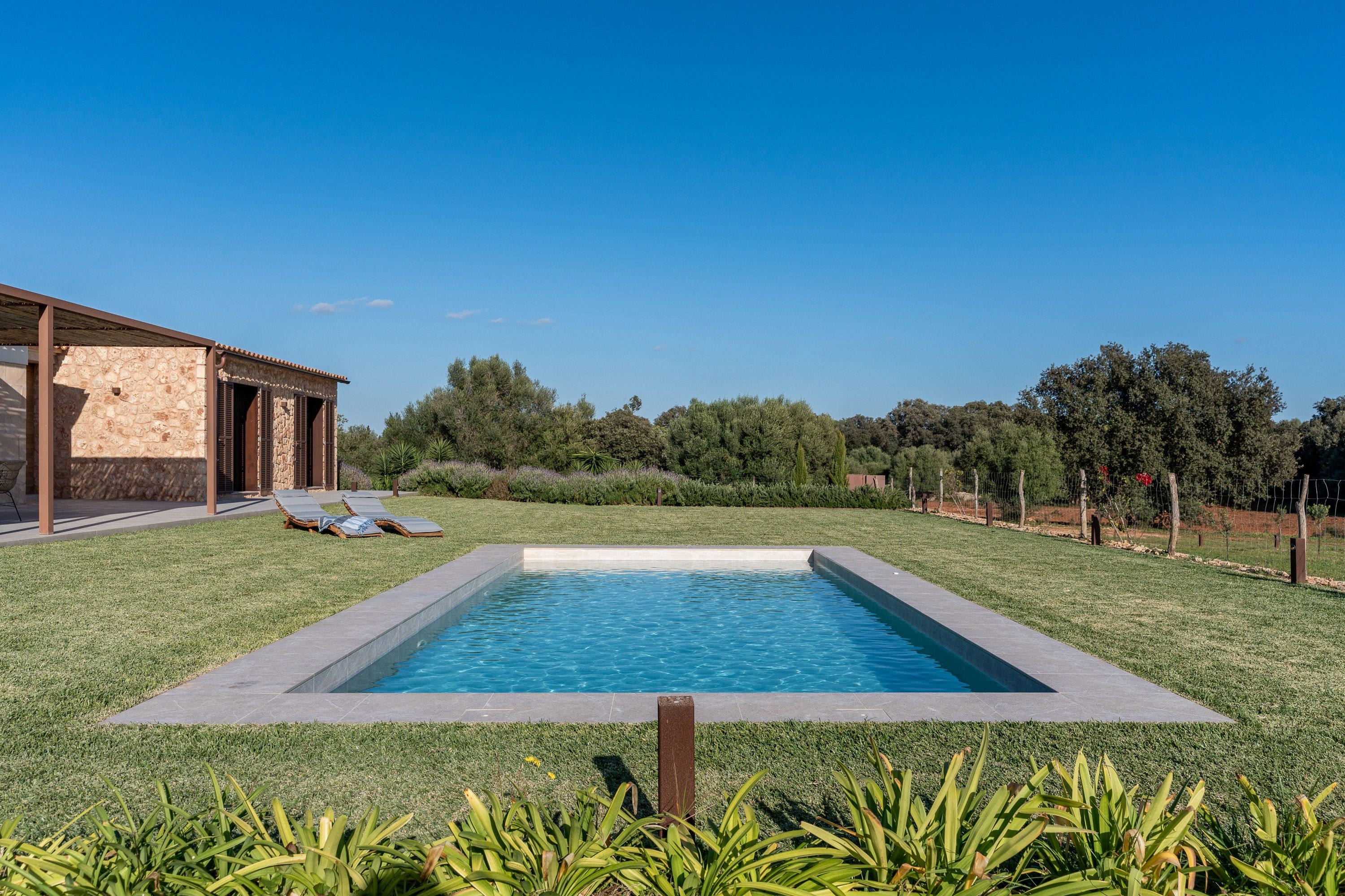 Na obrzeżach Inca, ten uroczy, nowoczesny wiejski dom jest gotowy na powitanie nowych właścicieli. Na tej samej działce znajduje się inna działka budowlana, która jest zgodna z obowiązującymi przepisami. Dom znajduje się na jednym poziomie i ma starannie przemyślany układ, aby jak najlepiej wykorzystać przestrzeń. Kuchnia, salon i jadalnia mieszczą się w otwartym, jasnym pomieszczeniu, które posiada również taras z widokiem na ogród. Po drugiej stronie domu znajdują się trzy sypialnie, z których jedna to główna sypialnia z własną łazienką i garderobą. Pozostałe dwie sypialnie mają wspólną łazienkę i garderobę. Jest też spiżarnia, pralnia, pomieszczenie gospodarcze i garaż na dwa samochody. Nowoczesna finca łączy w sobie śródziemnomorskie elementy, takie jak fasada z naturalnego kamienia i drewniane belki, z każdym możliwym nowoczesnym detalem. Garaż oferuje możliwość dodania jednego lub dwóch dodatkowych pokoi. Wstępne instalacje są już na miejscu. Na zewnątrz znajduje się zadbany ogród z pięknym basenem, w którym można odpocząć w ciszy i prywatności. Otoczona pięknym krajobrazem z drzewami oliwnymi i pomarańczowymi, ta nieruchomość nie pozostawia nic do życzenia. Cechy szczególne: Wraz z zakupem tej nieruchomości nabywa się również działkę budowlaną zgodnie z obowiązującymi przepisami. Jest sprzedawany w obecnym stanie projektu i oferuje możliwości studia, pensjonatu.... Naprawdę wyjątkowa okazja.