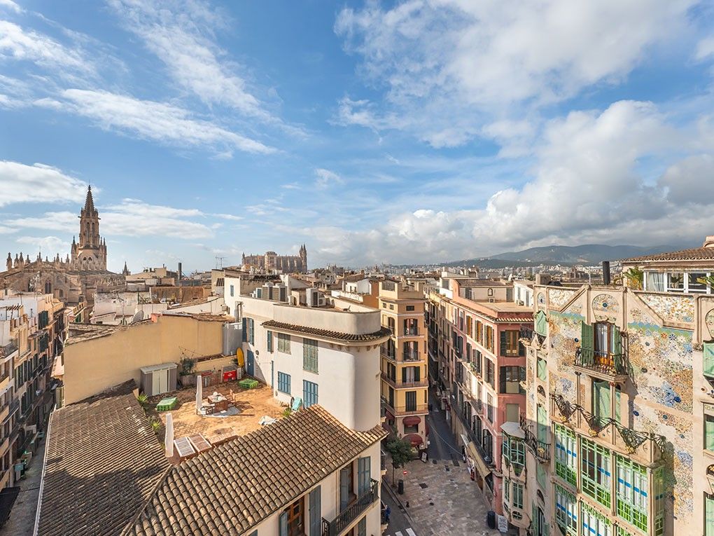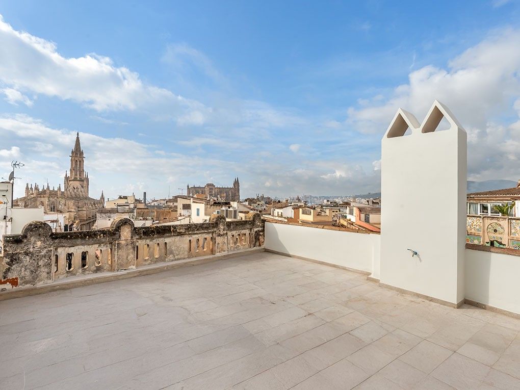 Ten imponujący penthouse mieści się w starannie odrestaurowanym, zabytkowym budynku mieszkalnym w samym sercu starego miasta Palma de Mallorca - tuż przy uroczym Plaza Marqués de Palmer. Zaledwie kilka kroków dzieli Cię od tętniącego życiem Plaza Mayor, a słynna katedra La Seu i lśniące Morze Śródziemne znajdują się w odległości krótkiego spaceru. Ta wyjątkowa lokalizacja oferuje nie tylko autentyczny klimat starego miasta, ale także doskonały dostęp do najlepszych restauracji, butików i atrakcji kulturalnych Palmy. Niedawno odnowiony penthouse łączy stylowy, ponadczasowy design z urokiem zabytkowego budynku. Na głównym piętrze znajduje się salon i jadalnia ze zintegrowaną kuchnią i widokiem na Santa Eulalia, dwie sypialnie dwuosobowe, sypialnia jednoosobowa, dwie łazienki (w tym jedna z łazienką) oraz praktyczny schowek z pralnią. Szczególną atrakcją jest górne piętro: spiralne schody prowadzą na fantastyczny taras na dachu z przylegającym ogrodzonym terenem, który oferuje na przykład miejsce na letnią kuchnię. Stąd można podziwiać niezrównane panoramiczne widoki na dachy starego miasta, imponującą katedrę, zabytkowy kościół Santa Eulalia, zamek Bellver i morze. Przestronny taras oferuje idealne warunki do relaksu na słońcu i przytulnych wieczorów na świeżym powietrzu. Gustowne połączenie wysokiej jakości podłóg, wysokich sufitów z tradycyjnymi drewnianymi belkami i najnowocześniejszych mebli nadaje penthouse'owi elegancką, ale przytulną atmosferę. Klimatyzacja (ciepło/zimno), ogrzewanie podłogowe, najnowocześniejsze podwójne szyby i winda w budynku zapewniają maksymalny komfort mieszkania. Dodatkowy schowek na prywatnym tarasie zwiększa codzienną praktyczność. Plaza Marqués de Palmer otoczona jest zabytkowymi budynkami, eleganckimi butikami i zachęcającymi kawiarniami, które doskonale odzwierciedlają śródziemnomorski styl życia miasta i przyczyniają się do tego, że jest to wyjątkowe miejsce do życia. Bliskość słynnej ulicy handlowej Sant Miquel, Ramblas i ekskluzywnej Passeig del Born w Palmie również czyni tę lokalizację atrakcyjną. Opcjonalnie można wykupić miejsce parkingowe w Plaza Mayor.