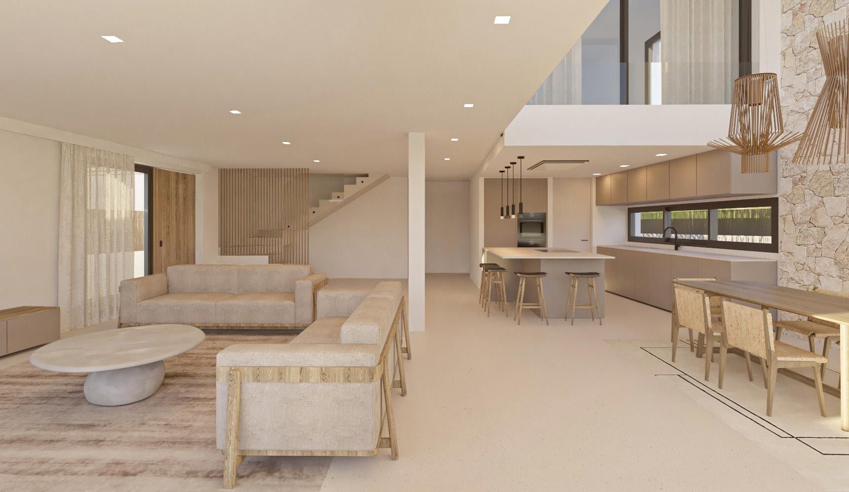 W cichej i idyllicznej dzielnicy mieszkalnej powstają cztery ekskluzywne, indywidualne jednostki mieszkalne. Otoczone mniejszymi kompleksami mieszkalnymi i luksusowymi willami, domy te oferują idealną równowagę między prywatnością i komfortem. Każdy z domów rozciąga się na dwóch piętrach i zachwyca przestronnym układem pomieszczeń oraz wysokiej jakości konstrukcją. Parter zachwyca otwartą przestrzenią dzienną z nowoczesnym połączeniem salonu z jadalnią. Kuchnia posiada wyspę kuchenną i jest wyposażona w urządzenia elektryczne BOSCH i TEKA. Duże panoramiczne okna wpuszczają do pomieszczenia mnóstwo naturalnego światła i oferują piękny widok na ogród. Na parterze znajdują się również dwie sypialnie, z których jedna ma własną łazienkę, a także praktyczne pomieszczenia gospodarcze, takie jak pralnia, pralnia i spiżarnia. Na piętrze czekają dwie przestronne sypialnie dwuosobowe, obie z łazienkami. Domy zachwycają nie tylko wyrafinowaną architekturą, ale także zastosowaniem typowych majorkańskich materiałów, takich jak wykwintne podłogi z naturalnego kamienia. Drewniane okiennice w tradycyjnym stylu i ogrzewanie podłogowe we wszystkich pokojach tworzą wyjątkową atmosferę. Dom uzupełnia ogród z basenem o powierzchni 24 m². Aerotermiczny system klimatyzacji oraz okna i drzwi z podwójnymi szybami gwarantują komfortowe życie przez cały rok. W pełni wyposażony system telekomunikacyjny jest aktualny i umożliwia szybkie połączenia za pośrednictwem światłowodów i innych sieci. Do Cala Marcal można dojechać samochodem w zaledwie sześć minut. Ponadto tradycyjny port rybacki Portocolom z uroczymi restauracjami i sklepami znajduje się w bezpośrednim sąsiedztwie i doskonale uzupełnia ofertę tego wyjątkowego kompleksu mieszkalnego.