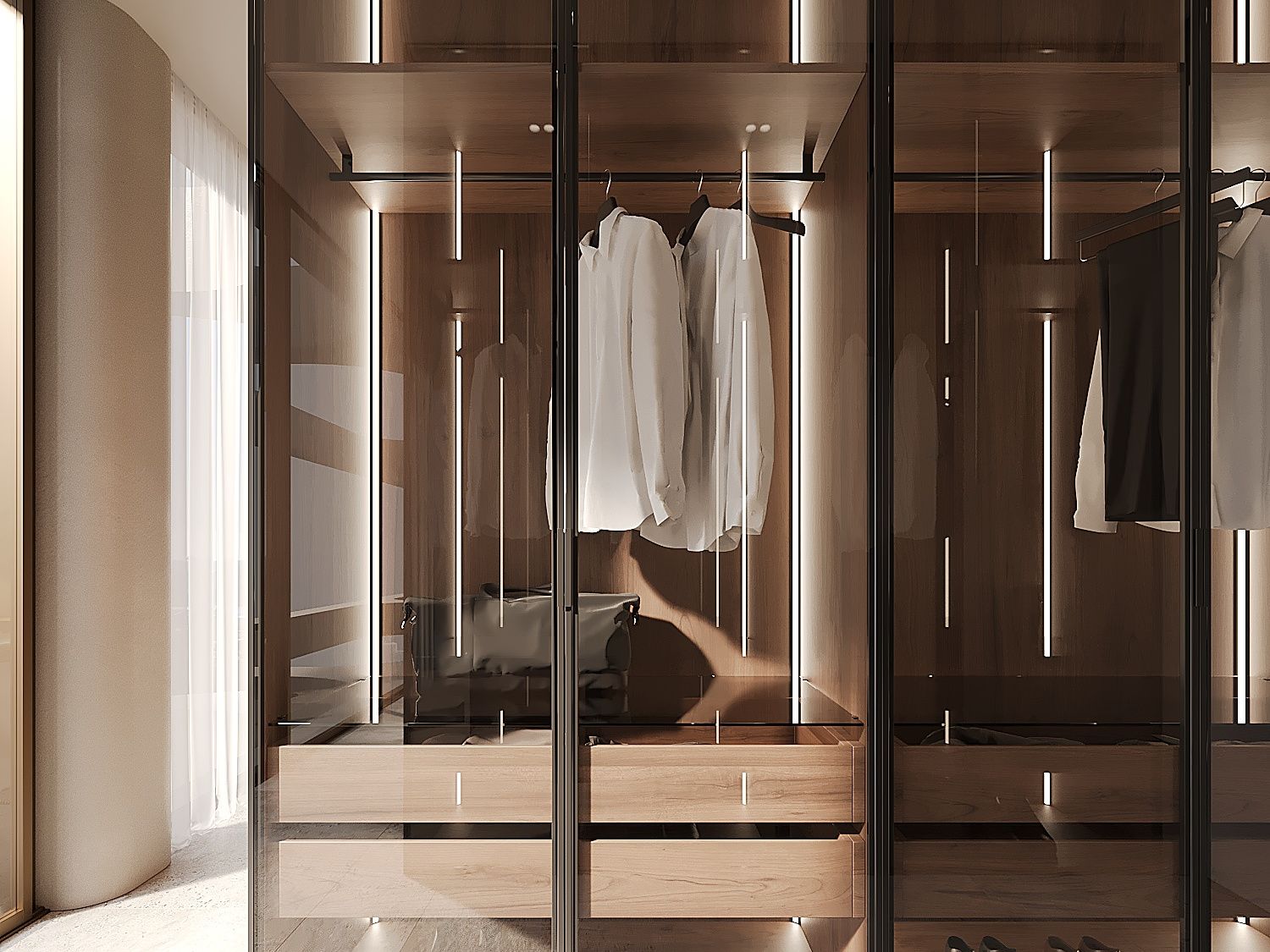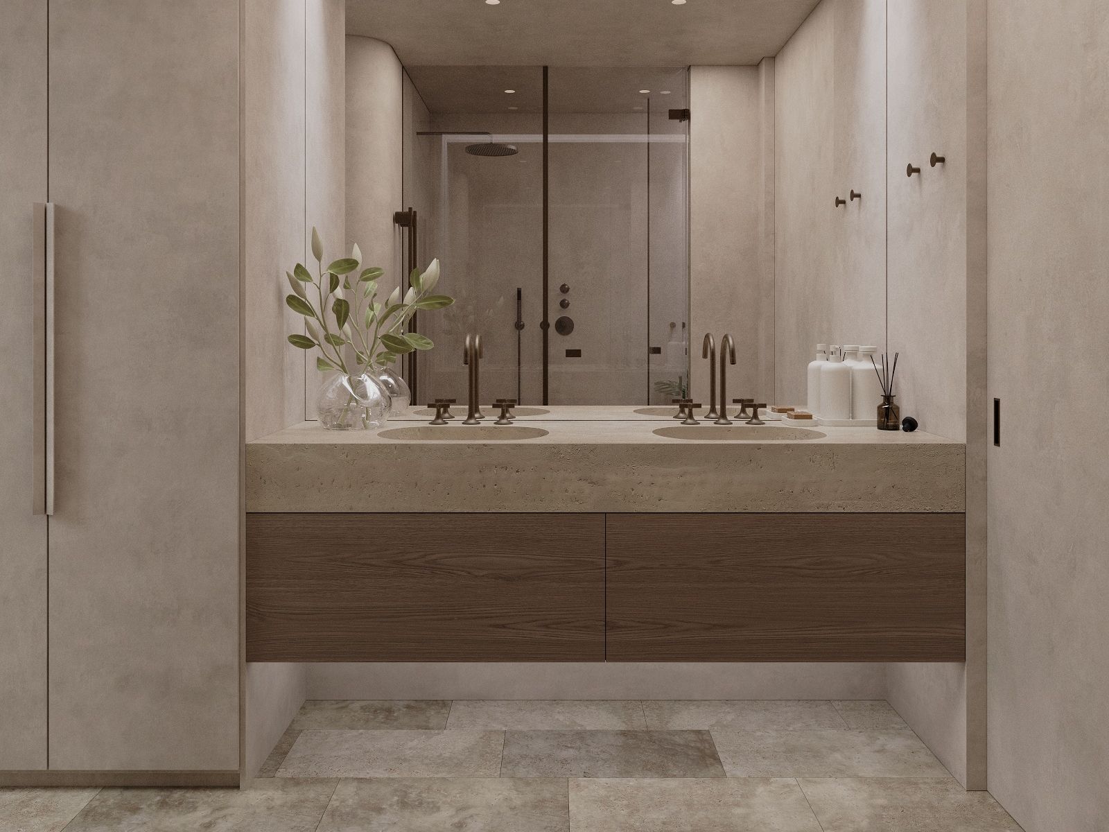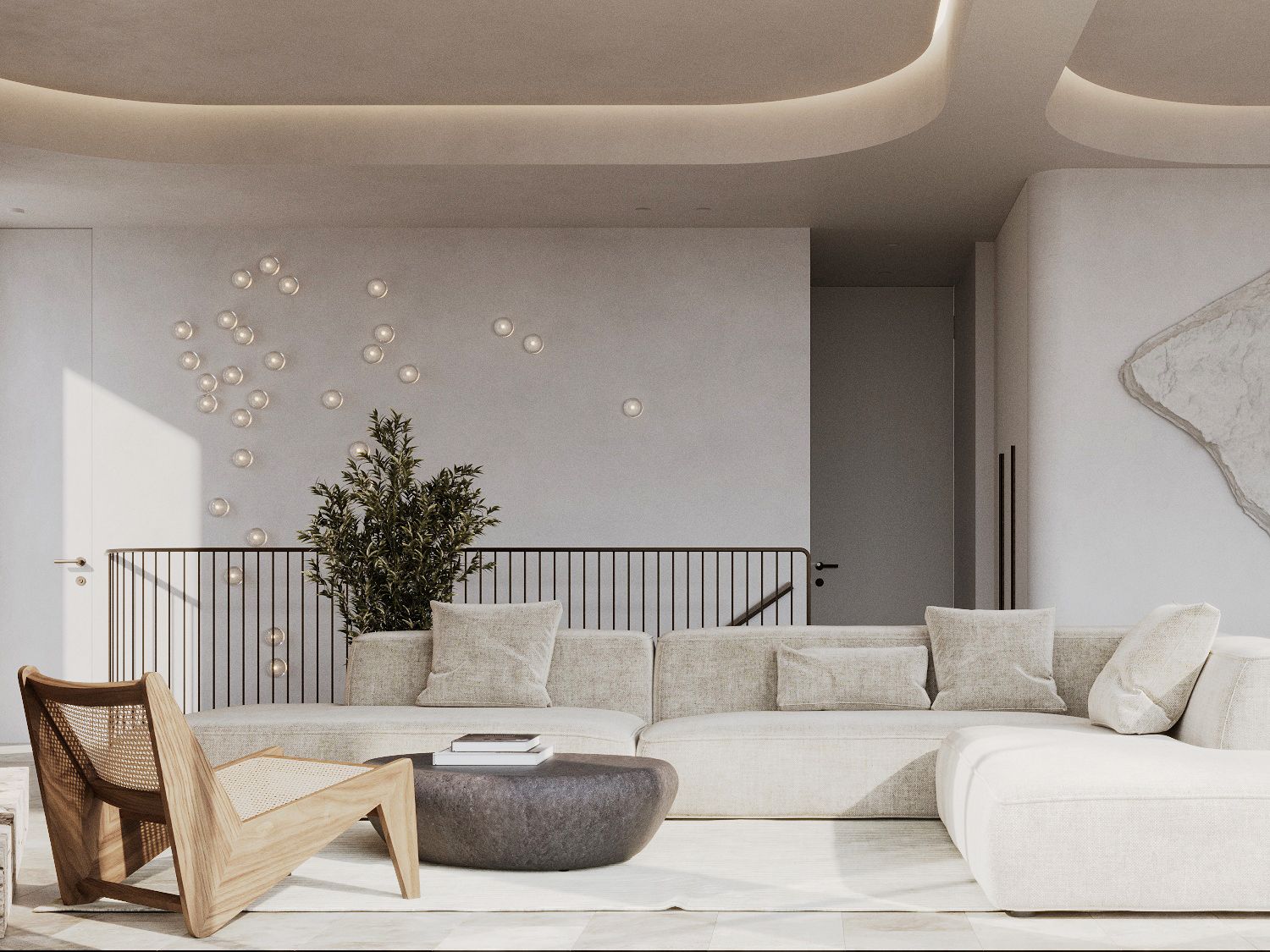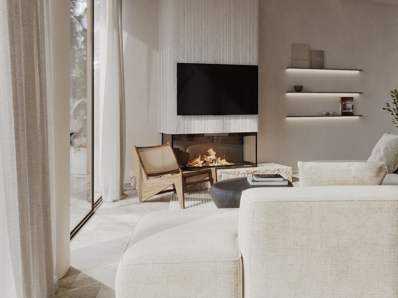 Każde mieszkanie ma trzy sypialnie i trzy łazienki - w tym dwie z łazienkami - a także toaletę dla gości. Salon i jadalnia na otwartym planie są wyposażone w indywidualnie zaprojektowaną kuchnię, która obejmuje wysokiej jakości wbudowane urządzenia Gaggenau i Miele. Ogromne, sięgające od podłogi do sufitu przesuwane drzwi zapewniają mnóstwo światła we wnętrzach i zapewniają bezpośredni dostęp do prywatnych terenów zewnętrznych.