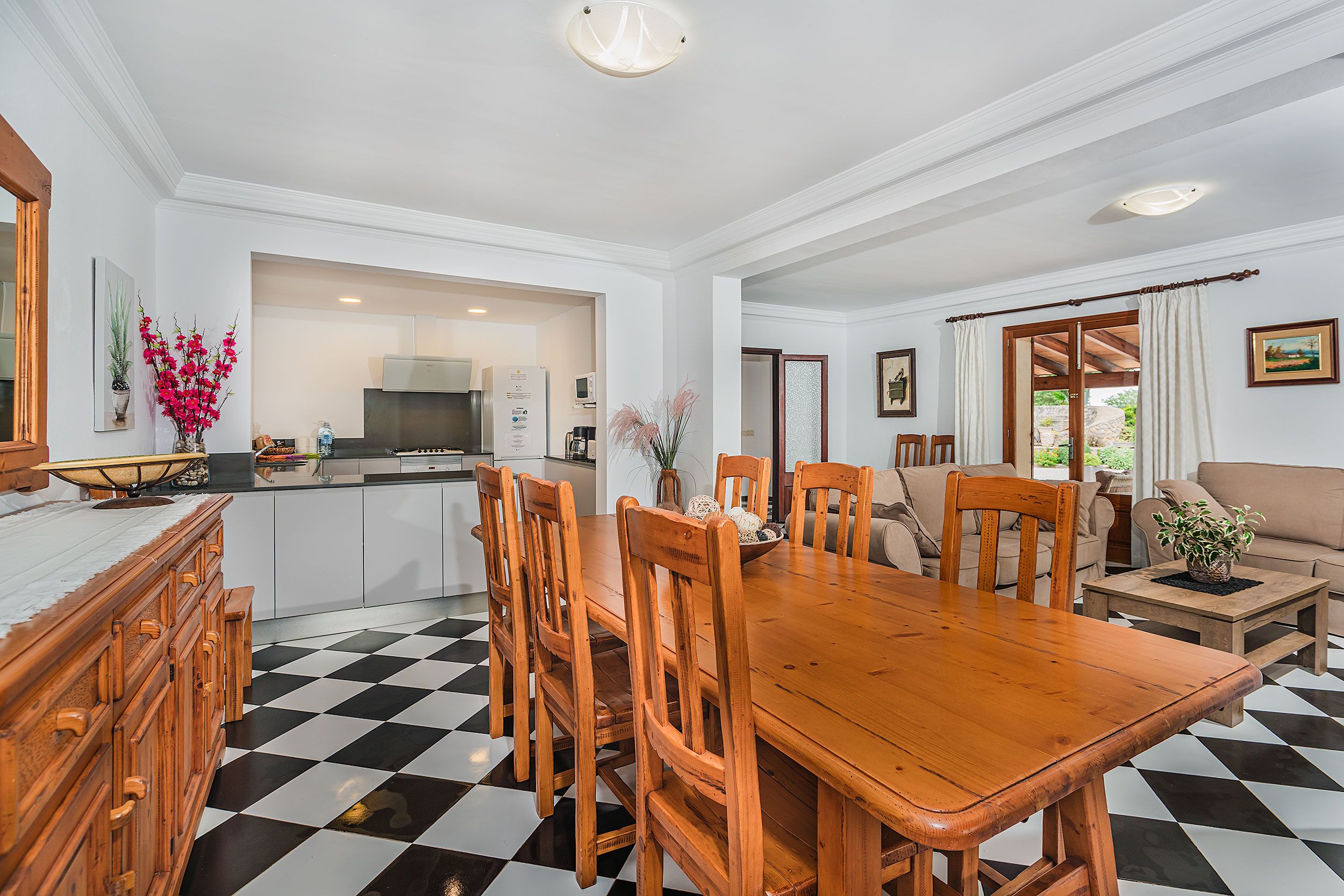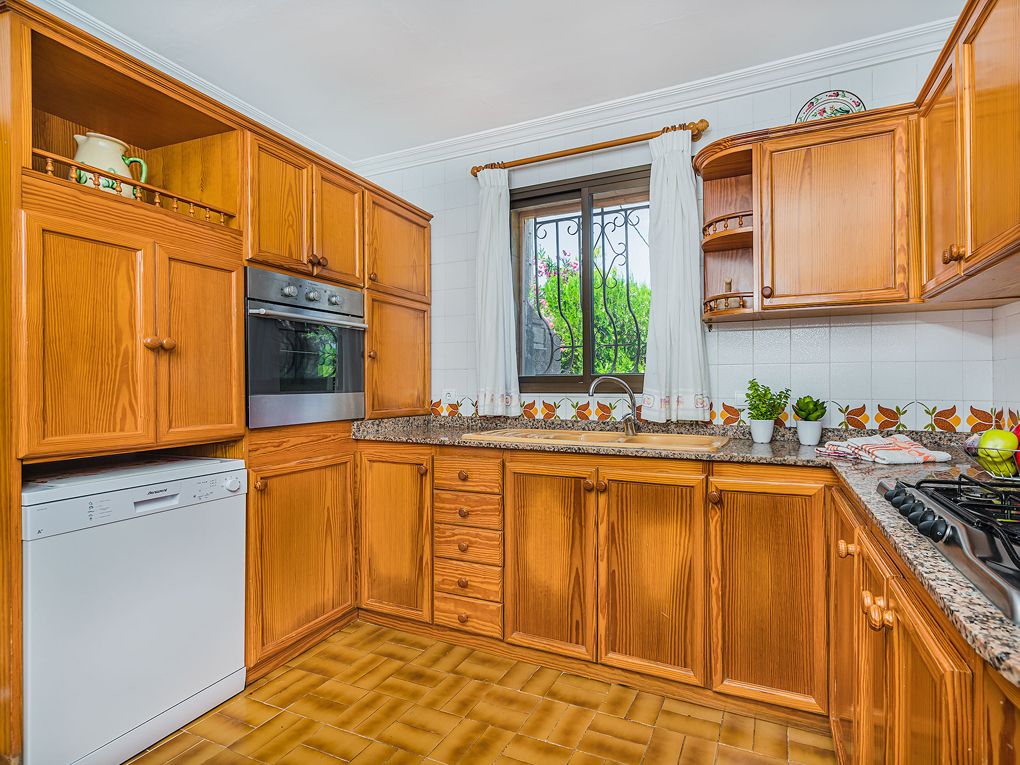 Wymarzona willa w spokojnej wiejskiej okolicy. Położona zaledwie kilka kilometrów od wybrzeża i malowniczej pobliskiej wioski, ta urocza willa oferuje spokojną i wiejską atmosferę idealną do spędzenia niezapomnianych rodzinnych wakacji. Dzięki przestronnym i starannie zagospodarowanym terenom zewnętrznym nieruchomość została zaprojektowana tak, aby każdy członek rodziny mógł się zrelaksować i dobrze bawić. Willa szczyci się spektakularnym basenem o wymiarach 11 x 5 metrów, ze schodami ułatwiającymi dostęp, a także prysznicem na świeżym powietrzu i wygodnymi leżakami do opalania. Dojrzały, wypielęgnowany ogród stanowi idealne miejsce na spacery lub po prostu relaks. Ponadto zadaszona weranda jest idealnie wyposażona w letnią jadalnię, sofy na świeżym powietrzu i grill do spożywania posiłków na świeżym powietrzu. Elewacja willi z eleganckim odsłoniętym kamieniem odzwierciedla jej przyjazny i dobrze zachowany charakter. W starannie utrzymanym wnętrzu znajdują się ceramiczne podłogi w atrakcyjnym czarno-białym kontraście, który doskonale harmonizuje z białymi ścianami i jasną atmosferą. Półotwarty salon z jadalnią harmonijnie łączy się z kuchnią, tworząc idealną przestrzeń na rodzinne spotkania. Willa posiada cztery dwuosobowe sypialnie z klimatyzacją i dwie rodzinne łazienki. Nieruchomość jest w pełni ogrodzona i zapewnia prywatność i bezpieczeństwo. Znajduje się tu również parking i niezakłócony widok na majestatyczne pobliskie góry, co potęguje poczucie spokoju i odosobnienia w otoczeniu przyrody.Udogodnienia