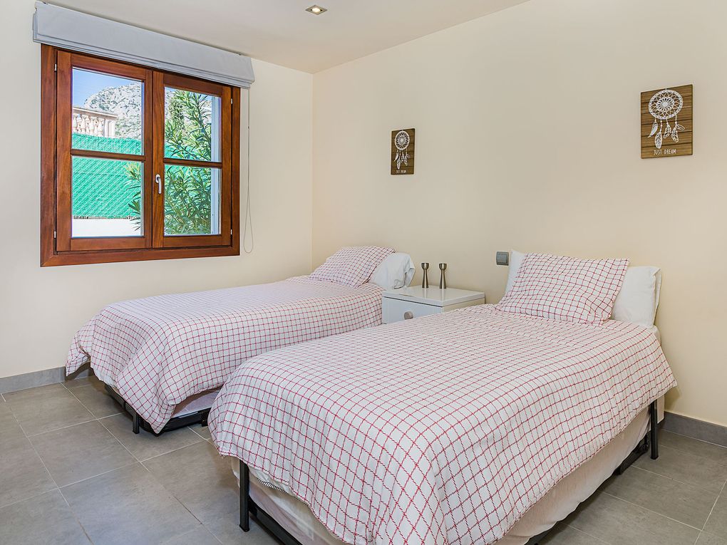 Willa przy plaży z basenem: idealna lokalizacja na wakacje w pobliżu Puerto Pollensa. Ta urocza willa przy plaży jest idealnym wyborem dla tych, którzy chcą cieszyć się bliskością plaży bez poświęcania komfortu i prywatności. Zaledwie kilka minut spacerem od słynnej promenady dla pieszych, znajduje się w odległości spaceru od złotej piaszczystej plaży Puerto Pollensa i oferuje szybki i łatwy dostęp do morza i słońca. Willa, która może pomieścić do sześciu osób na jednym piętrze, charakteryzuje się jasną i relaksującą atmosferą. Po wejściu wita nas przestronny salon z wysokimi sufitami, oferujący przytulną atmosferę z wygodnymi sofami, telewizorem, kominkiem i stołem jadalnym. Stąd otwarty łuk prowadzi do nowoczesnej kuchni, która jest w pełni wyposażona, abyś mógł cieszyć się pobytem. Obszar zewnętrzny jest po prostu spektakularny. Zrelaksuj się w ogrodzie z umeblowaną werandą, idealną na relaks lub posiłek na świeżym powietrzu. Willa posiada również zacienione obszary, leżaki do opalania, grill i jadalnię na świeżym powietrzu, aby dzielić wyjątkowe chwile z najbliższymi. Prawdziwą atrakcją jest prywatny basen, idealny do ochłody w upalne dni, otoczony sztuczną trawą dla dodatkowego komfortu i bezpieczeństwa, zwłaszcza dla dzieci. Ponadto willa jest w pełni ogrodzona, zapewniając prywatność i bezpieczeństwo dla całej rodziny. Trzy dwuosobowe sypialnie są idealne do relaksu, przy czym główna sypialnia ma łazienkę, a druga łazienka jest oddzielna. Istnieje również pomieszczenie gospodarcze dla dodatkowej wygody. Dzięki tym wszystkim udogodnieniom ta willa jest idealną bazą wypadową na rodzinne wakacje. Bliskość plaży i centrum turystycznego Puerto Pollensa sprawia, że jest to idealny wybór dla tych, którzy szukają tego, co najlepsze z obu światów: Relaks, zabawa i komfort, a wszystko to zaledwie kilka kroków od morza. NRA: ETV/14472. VUD: ESFCTU000007030000026604000000000000000000000ETV/144728Udogodnienia