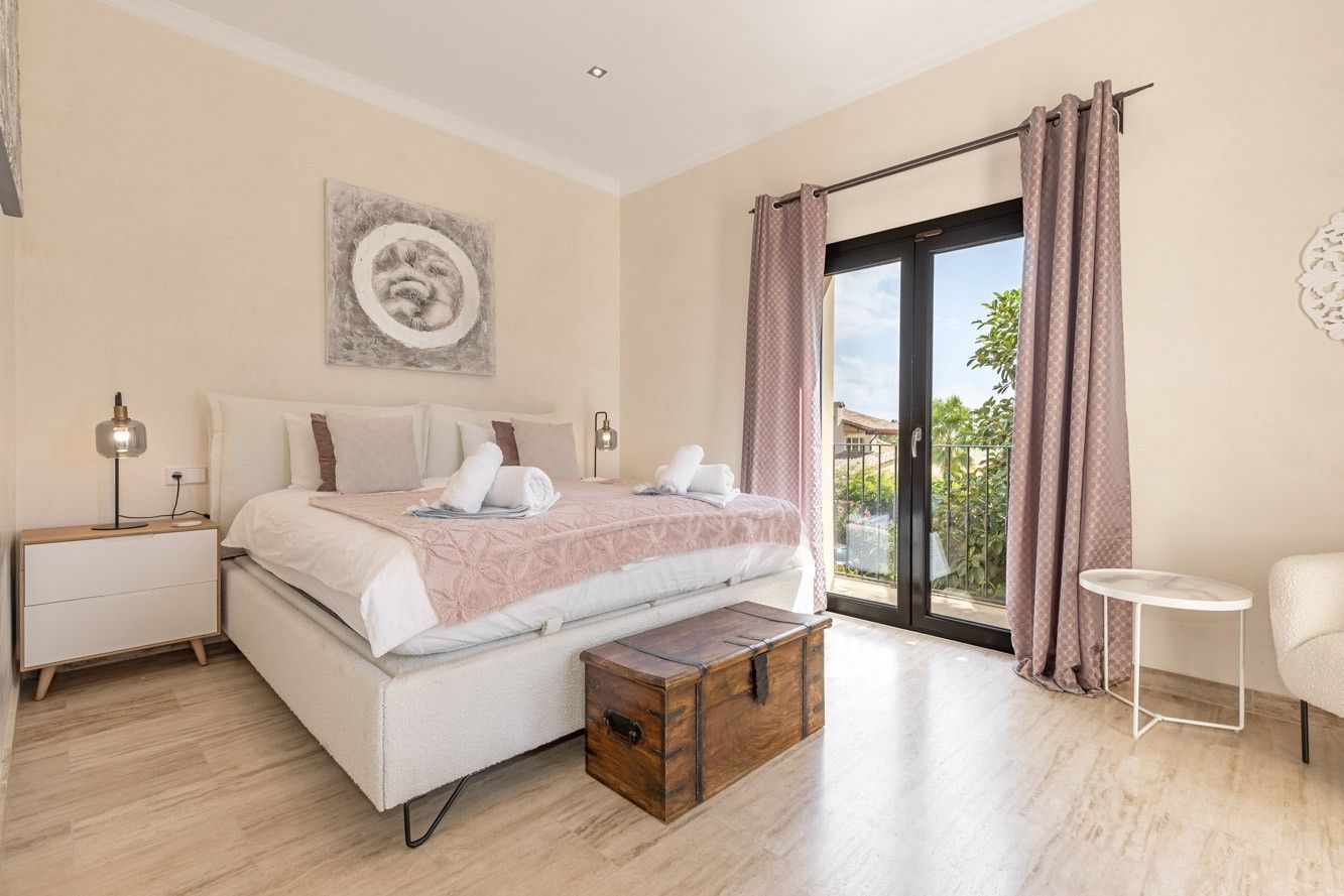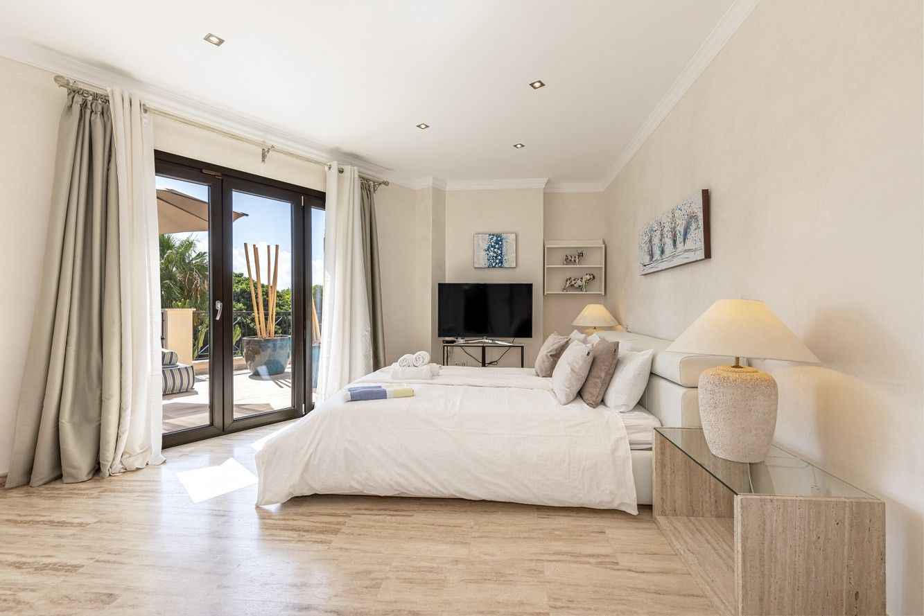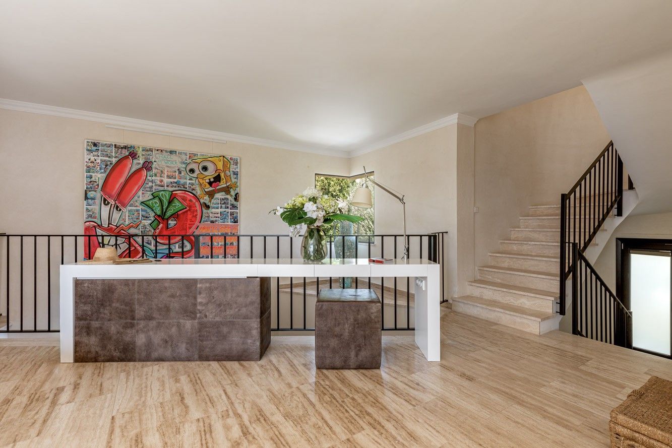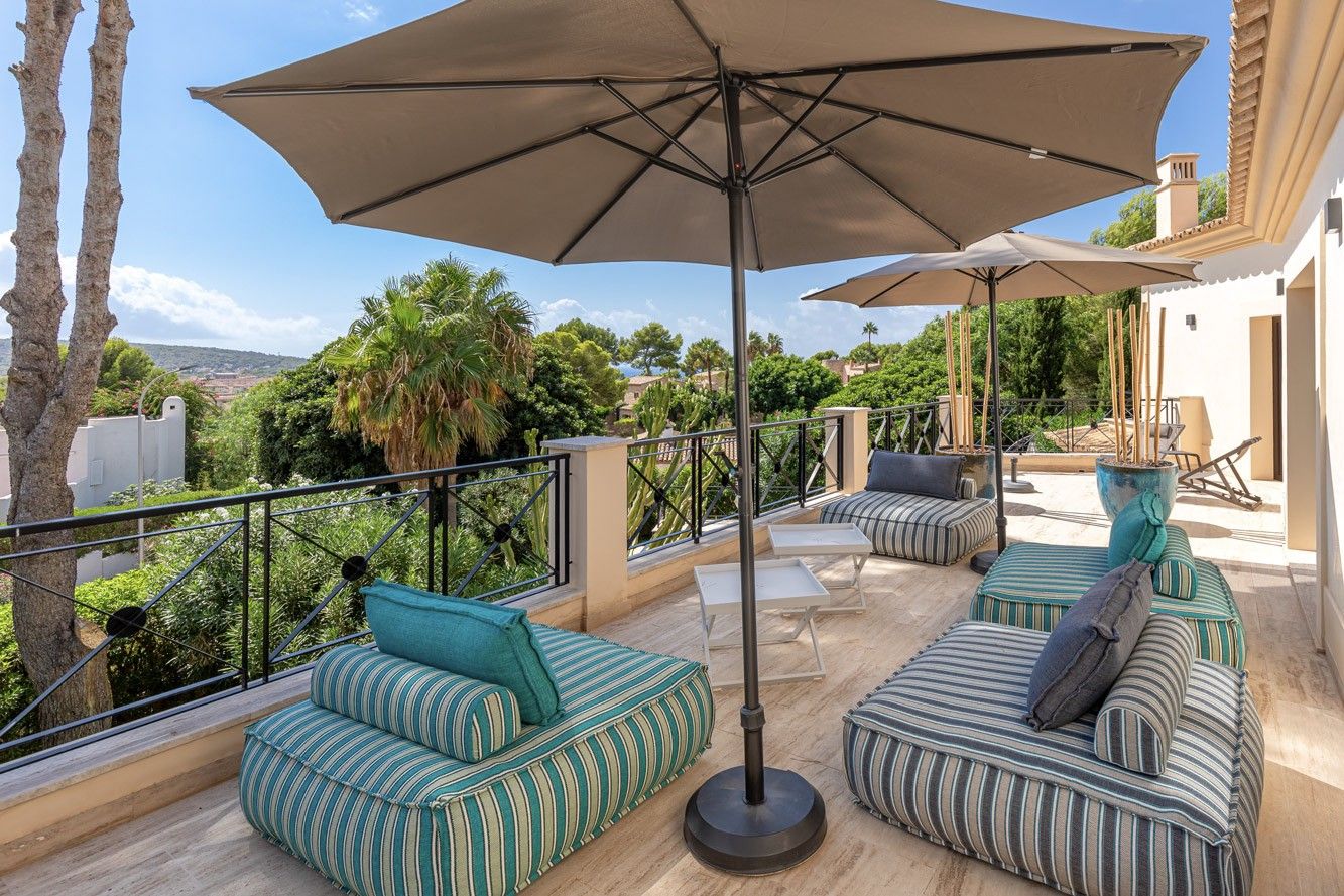 Ta piękna willa z zapierającym dech w piersiach panoramicznym widokiem na morze znajduje się w cichej i ekskluzywnej dzielnicy Nova Santa Ponsa i oferuje wszystko, czego potrzeba do relaksujących wakacji. Na zewnątrz znajduje się prawdziwa oaza z dużym basenem otoczonym zadbanym ogrodem. Dwa przestronne zadaszone tarasy zapewniają idealne miejsca do spożywania posiłków na świeżym powietrzu przy dużym stole lub relaksu w przytulnej strefie relaksu. Kiedy dzień dobiega końca, rozległy taras na dachu staje się ostatecznym miejscem, w którym można cieszyć się zapierającymi dech w piersiach zachodami słońca, grillem i niezakłóconymi widokami. Wewnątrz willa jest gustownie urządzona i może pomieścić do 10 osób w pięciu dwuosobowych sypialniach. W pełni wyposażona kuchnia na otwartym planie zachęca do wspólnego gotowania, a przestronny salon z trzaskającym kominkiem tworzy ciepłą i zachęcającą atmosferę w chłodniejsze wieczory. Piaszczysta plaża i przystań Port Adriano, znana z luksusowych restauracji, butików i tętniącego życiem nocnego życia, znajdują się zaledwie 15 minut spacerem od hotelu. Dla miłośników golfa, pola golfowe Santa Ponsa i Poniente oraz kilka innych popularnych pól golfowych na wyspie znajdują się w odległości krótkiej przejażdżki od willi. ETV 7175