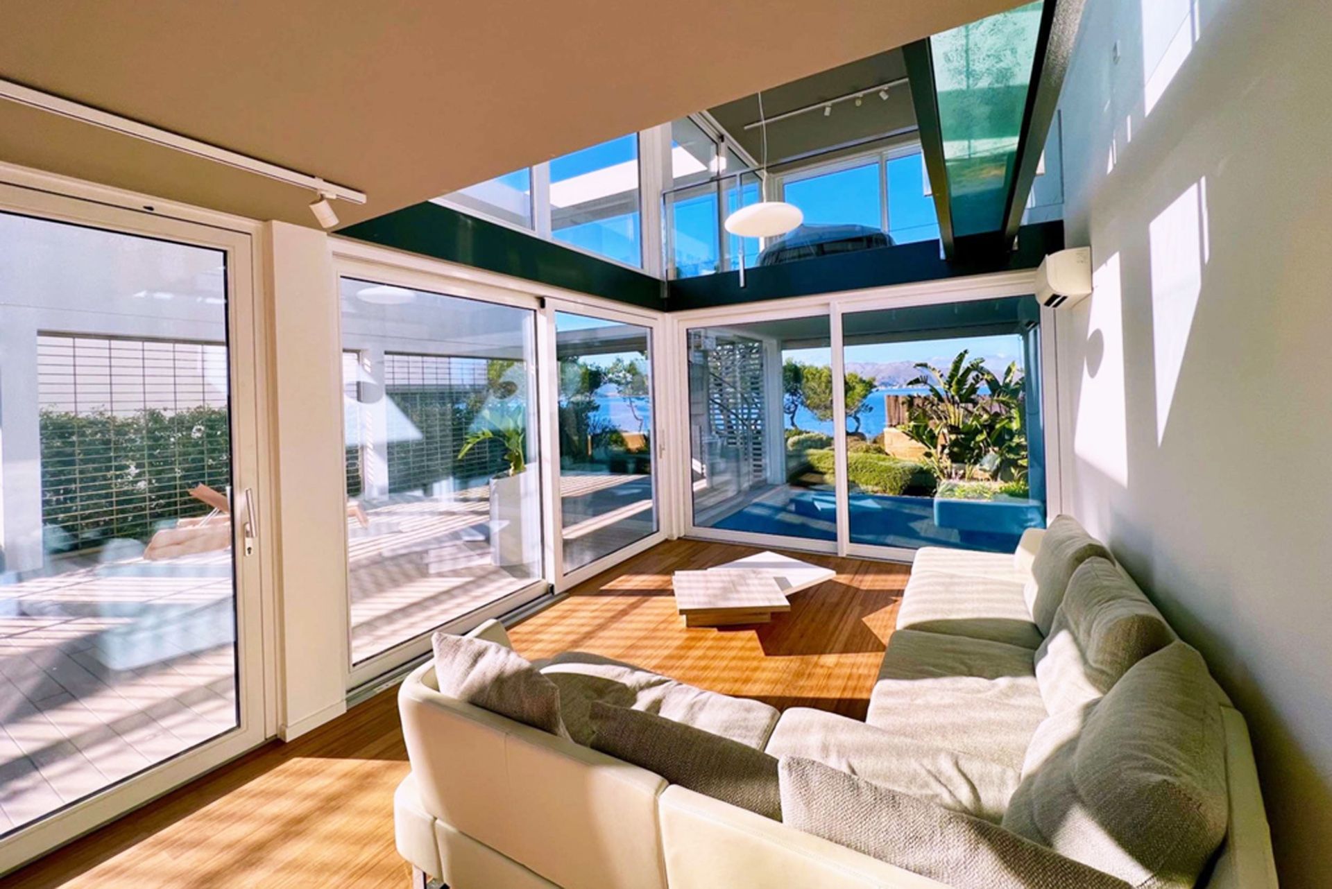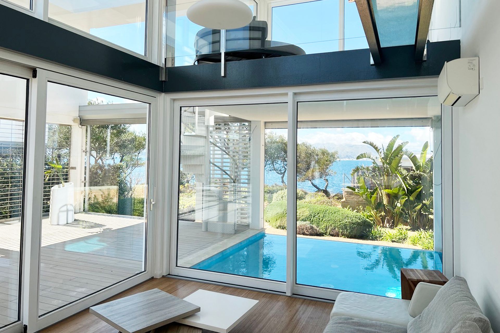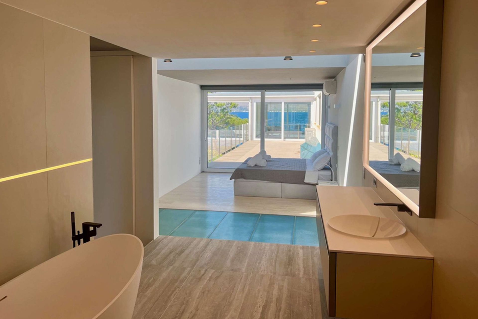 NRA: ETV/113797 Цены и наличие: https://www.evholidayvillas.com Ref: 6855 Исключительная авангардная вилла на берегу моря с панорамным видом на залив Полленса и полуостров Форментор. Эта вилла современного дизайна впечатляет обилием стеклянных поверхностей и концепцией открытой планировки, которая создает плавную связь между внутренними и внешними зонами. Впечатляющее, вытянутое патио протянулось по всей длине виллы и идеально подходит для средиземноморского образа жизни. Здесь есть удобные шезлонги, стильная летняя обеденная зона с барбекю и освежающий бассейн, идеальный для охлаждения. Сад находится всего в нескольких шагах от кристально чистых вод залива. Дизайн интерьера гармонично переходит в патио и террасу. Просторная кухня открытой планировки органично вписана в обеденную зону и гостиную двойной высоты, создавая светлую, элегантную атмосферу. Большие стеклянные фасады открывают чудесные виды и дают много естественного света. На двух уровнях виллы расположены четыре спальни. На первом этаже находятся две просторные спальни с односпальными кроватями и две ванные комнаты, одна из которых с ванной. На верхнем этаже находится спальня с двуспальной кроватью и ванной комнатой, а также эксклюзивная главная спальня с гардеробной зоной и роскошной ванной комнатой с отдельно стоящей ванной и душевой кабиной. Просторная частная терраса в виде дорожки ведет от главной спальни к элегантной зоне отдыха с круглым диваном и фантастическим видом на залив. Близость к двум самым красивым пляжам Манресы, превосходным ресторанам и пристани для яхт Cocodrilo делает эту виллу эксклюзивным местом для отдыха в самом лучшем месте.Удобства