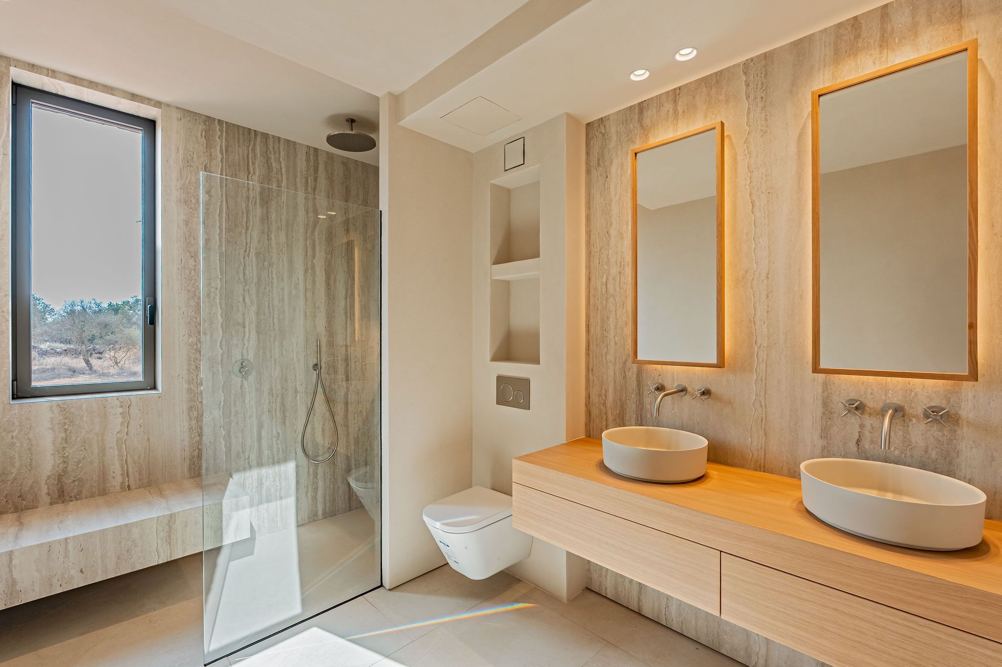 Эта исключительная новостройка в Кала Лломбардс сочетает в себе традиционный майоркинский стиль с современной роскошью и высочайшим уровнем комфорта. Расположенная на участке площадью 15 675 м², вилла имеет жилую площадь около 878 м² и была завершена в 2025 году, что гарантирует самое современное качество строительства. Архитектура основана на классическом стиле финки, но при этом переосмыслена с помощью чистых линий и высококачественных материалов. Средиземноморская гостиная-столовая с дизайнерской кухней открытой планировки и отдельная летняя кухня делают этот дом идеальным местом для стильных вечеров с друзьями или семьей. В распоряжении гостей шесть просторных спален и семь стильно оборудованных ванных комнат. Интерьер впечатляет открытой планировкой, высокими потолками и большими окнами, пропускающими много света и открывающими вид на море и чудесные закаты над Сантаньи. Полы с подогревом и центральное кондиционирование обеспечивают приятный микроклимат круглый год. Частный спа-центр, фитнес-зал и домашний кинотеатр идеально подходят для проведения досуга. Просторная открытая территория может похвастаться большим бассейном и множеством больших террас, оформленных с большим вниманием к деталям. Здесь гармонично сочетаются природа, спокойствие и дизайн. Такие материалы, как микробетон, терракота и высококачественные натуральные материалы, создают неподвластную времени, элегантную атмосферу, пронизывающую весь дом. Эта финка - больше, чем просто недвижимость, это стиль жизни для тех, кто ценит стиль, качество и аутентичность.