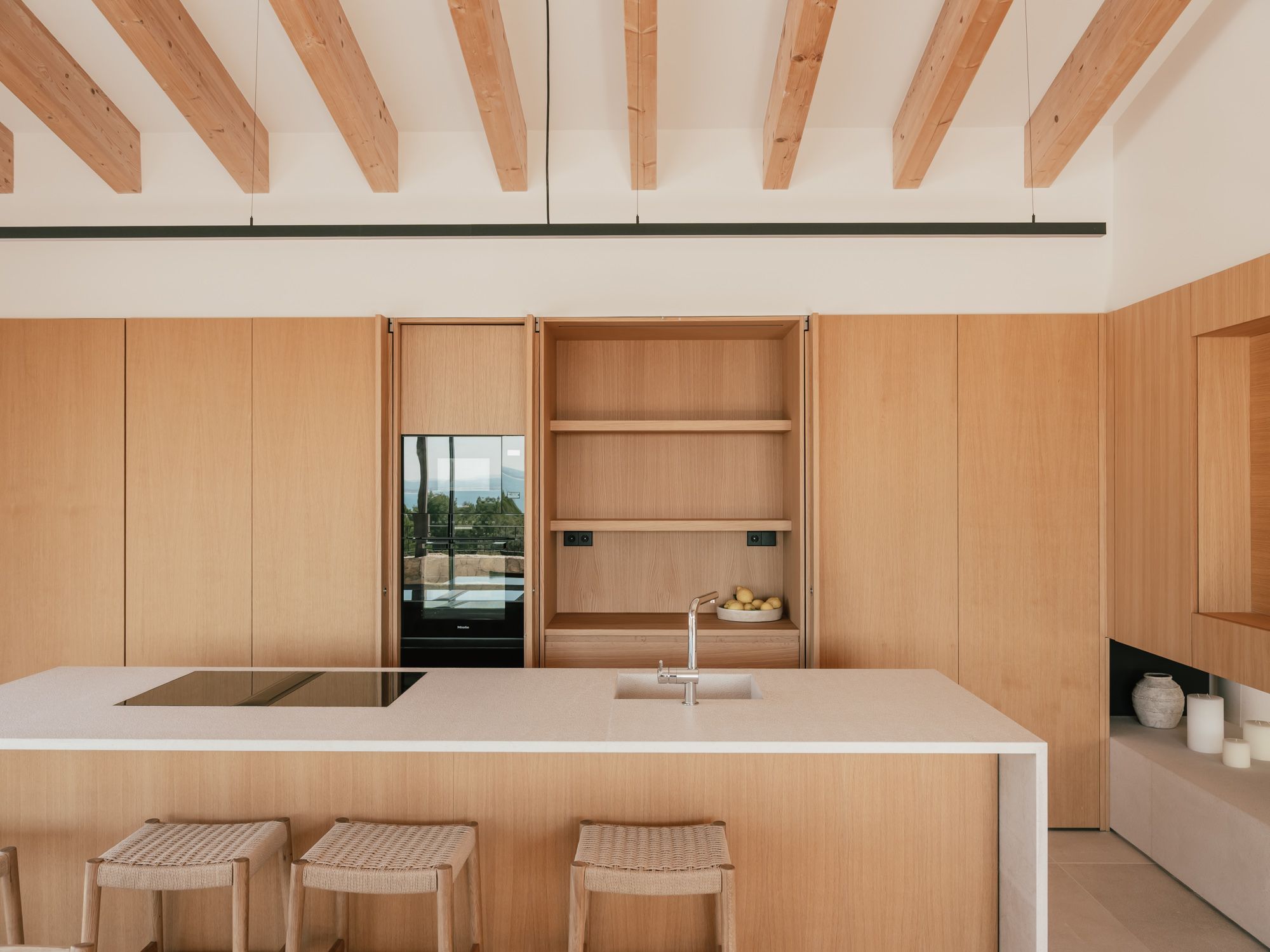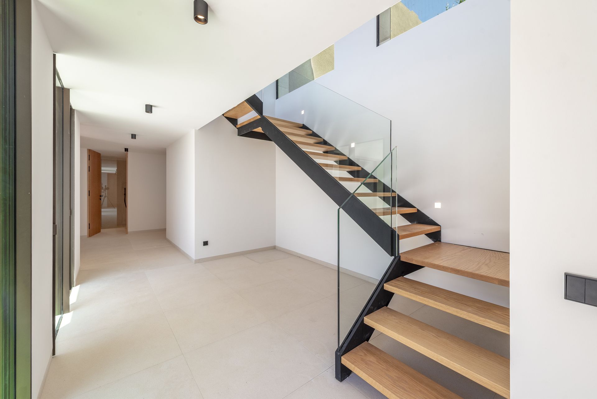 Эта роскошная новостройка, строительство которой будет завершено в ближайшее время, расположена в привилегированном месте и предлагает непревзойденные панорамные виды на залив Алькудии. Построенная на участке с пологим склоном, вилла занимает два этажа общей площадью 304 м², на которых расположены 4 спальни, каждая с собственной ванной комнатой (en suite). Дополнительная комната, которая может быть использована в качестве пятой спальни, имеет отдельную ванную комнату. На верхнем этаже с гостиной и главной спальней вы можете наслаждаться захватывающим видом на залив со всех сторон. На нижнем этаже расположены остальные 3 спальни и дополнительная комната с отдельной ванной. Дом оснащен современными удобствами, включая полы с подогревом и встроенные кондиционеры, которые работают от инновационной аэротермальной системы. Это обеспечивает уютную атмосферу круглый год. Особым украшением финки является частный открытый бассейн площадью 50 м² и спа-зона с крытым джакузи - идеальные места для отдыха и наслаждения. Высококачественная кухня оснащена техникой Miele и не оставляет желать лучшего. Дом будет самодостаточным благодаря генератору и солнечным батареям, а собственный колодец гарантирует водоснабжение. В финке также есть двойной гараж, рассчитанный на два автомобиля. Полы в доме и снаружи отделаны местным камнем, а бассейн выложен плиткой из камня Бали, что придает поместью эксклюзивный характер. Эта уникальная финка предлагает идеальное сочетание роскоши, современности и фантастического расположения с видом на море - уникальная возможность приобрести исключительный дом на Майорке.