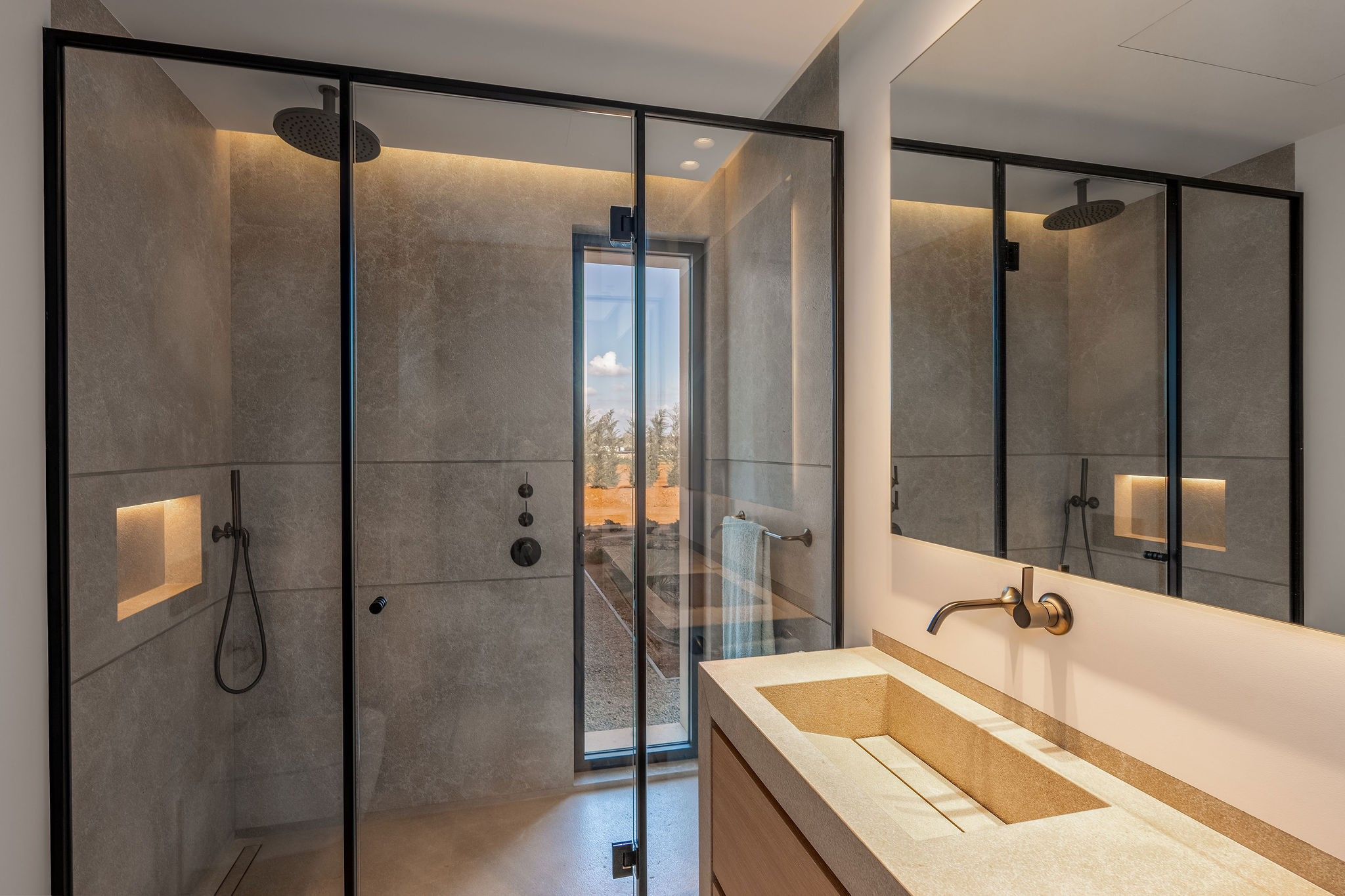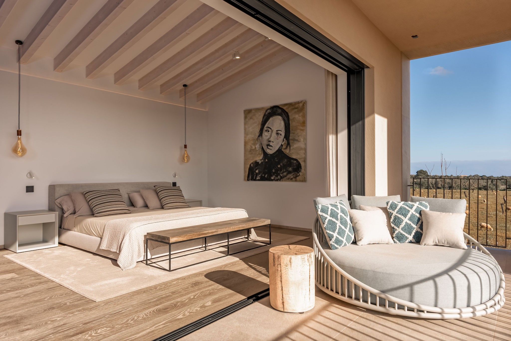Эта исключительная вилла расположена недалеко от Кала Лломбардс на участке площадью 17 757 м². Построенная в 2024 году, эта финка встречает вас длинной подъездной дорогой, усаженной оливковыми деревьями, и впечатляет своей минималистской архитектурой и большими стеклянными фасадами, пропускающими много света. Жилая площадь 455 м² занимает два этажа и впечатляет удачным сочетанием традиционного природного камня, деревянных элементов и гармоничной цветовой и световой концепции. Первый этаж впечатляет просторной прихожей, которая ведет вас в левое крыло, где вы найдете красивую гостиную и столовую с камином. Роскошная кухня оснащена высококачественной бытовой техникой Gaggenau, а во всем доме установлена система Sonos, позволяющая наслаждаться музыкой повсюду. Четыре спальни и четыре роскошные ванные комнаты, включая главную ванную комнату с отдельно стоящей ванной и душем, обеспечивают высочайший уровень комфорта. Спальни также оборудованы высококачественными шкафами. Для обеспечения приятного климата в доме предусмотрены полы с подогревом и кондиционеры, управляемые системой Gira. Фотоэлектрическая система, генератор, газовый камин и два резервуара для воды общим объемом 100 000 литров делают дом экологичным и комфортным. Переливной бассейн идеально вписывается в общую картину и предлагает вам полное уединение, а также прекрасный вид на природу. Зона барбекю, просторная терраса, душ на открытом воздухе и туалет создают дополнительный комфорт. В гараже есть место для двух автомобилей, зарядная станция для электромобилей и небольшое дополнительное парковочное место. Этот особняк сочетает в себе роскошь, комфорт и экологичность на самом высоком уровне и является идеальным местом отдыха для людей, которые любят что-то особенное.