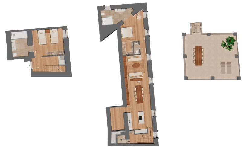 Каждая резиденция уникальна, ее жилые площади составляют от 85 до 250 м², которые были гармонично адаптированы к исторической структуре бывшего Possessió. При реконструкции использовались только материалы и фурнитура высочайшего качества: натуральный камень, древесина дуба, железо ручной ковки и традиционная известково-растворная штукатурка. Исторические элементы оригинальной архитектуры были восстановлены с особой тщательностью, чтобы сохранить подлинное очарование.