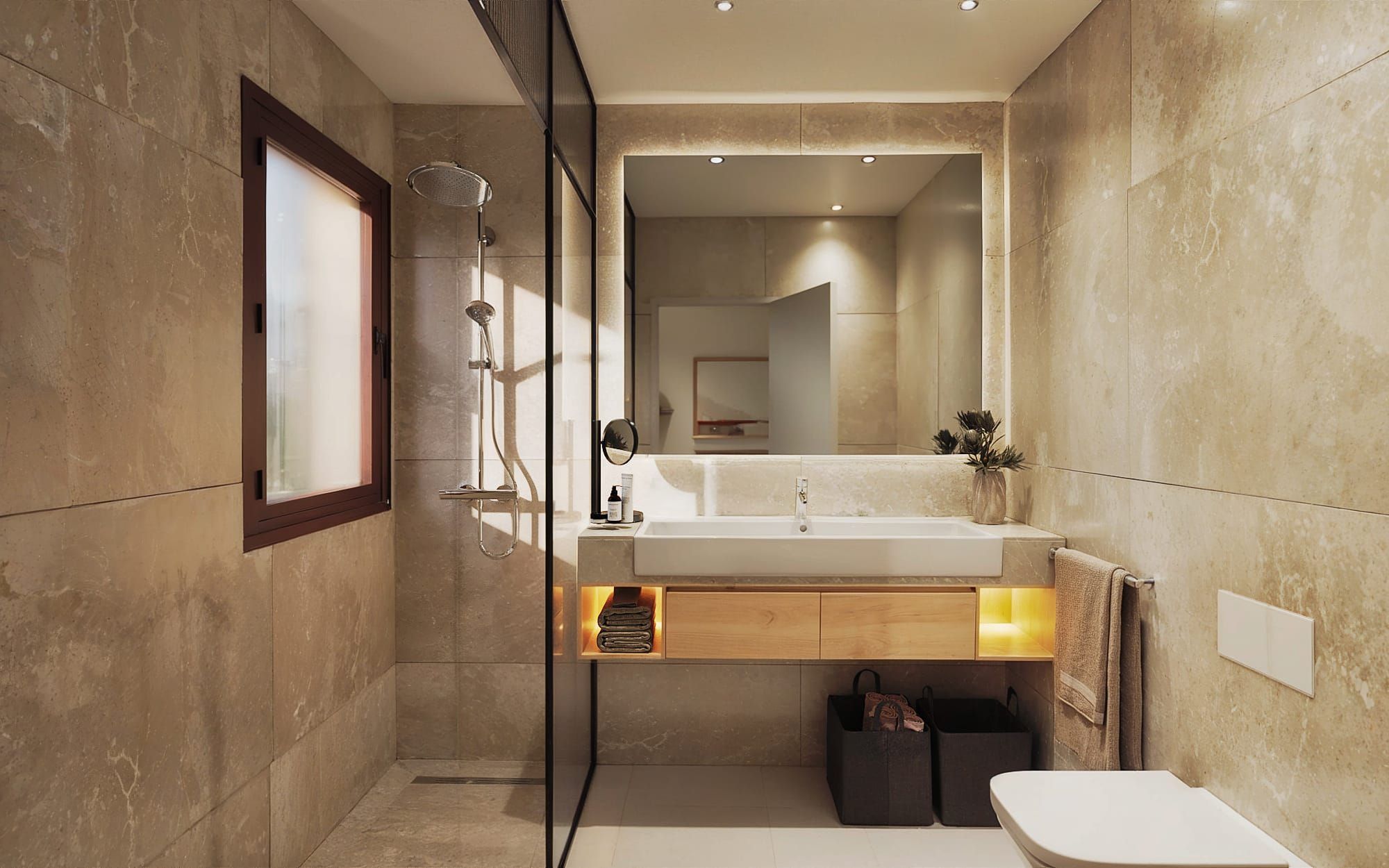 Каждый дом имеет три спальни, две ванные комнаты и гостевой туалет и предлагает достаточно пространства для современной жизни на обширной площади около 144 м². Продуманная планировка с открытыми, залитыми светом комнатами создает приятную атмосферу, в ней использованы высококачественные материалы. Полностью оборудованная высококачественная кухня не оставляет желать лучшего и предлагает все необходимое для средиземноморского образа жизни.