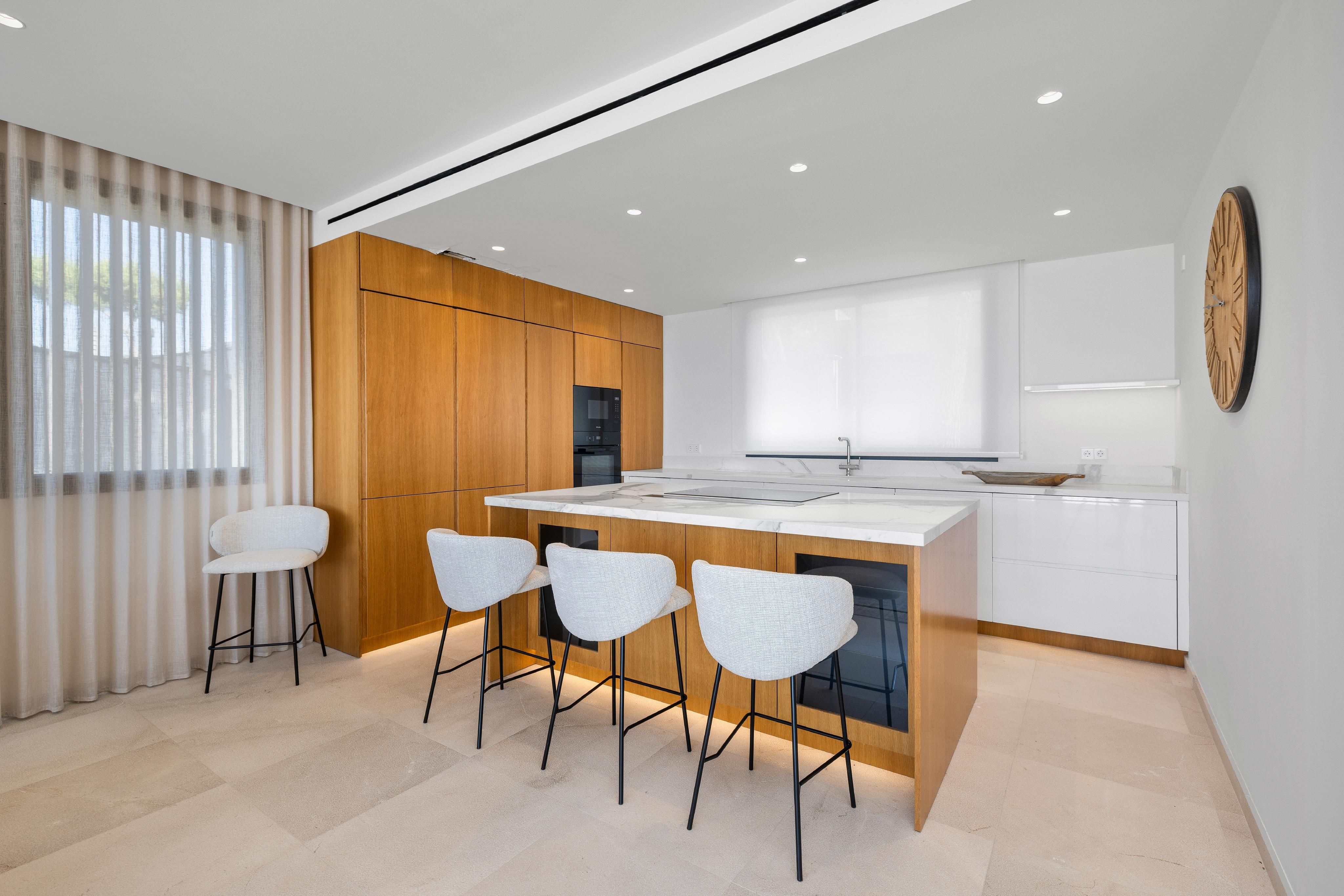 Эта недавно построенная вилла в Портальсе предлагает потрясающий вид на море с юга на юго-запад в сторону залива Пальманова, что делает ее идеальным местом для того, чтобы наслаждаться солнцем с утра до вечера, и при этом всего в нескольких минутах ходьбы от деревенских удобств, пляжа и гавани Пуэрто-Порталс. При входе в дом вы попадаете в гостиную, столовую и кухню открытой планировки, которая выходит на большую террасу, идеально подходящую для обедов и летних барбекю с друзьями. На нижнем этаже находится главная спальня с красивой ванной комнатой и еще 2 спальни для гостей. Из всех спален есть прямой выход на террасу у бассейна и в сад, идеально подходящий для детей. Есть большой подвал с ванной комнатой, идеально подходящий для тренажерного зала, спа-зоны или кинозала. Просторная терраса на крыше завершает комплекс. В доме имеются полы с подогревом, кондиционер, гостевой туалет, прачечная, электрические жалюзи и охраняемая парковка.