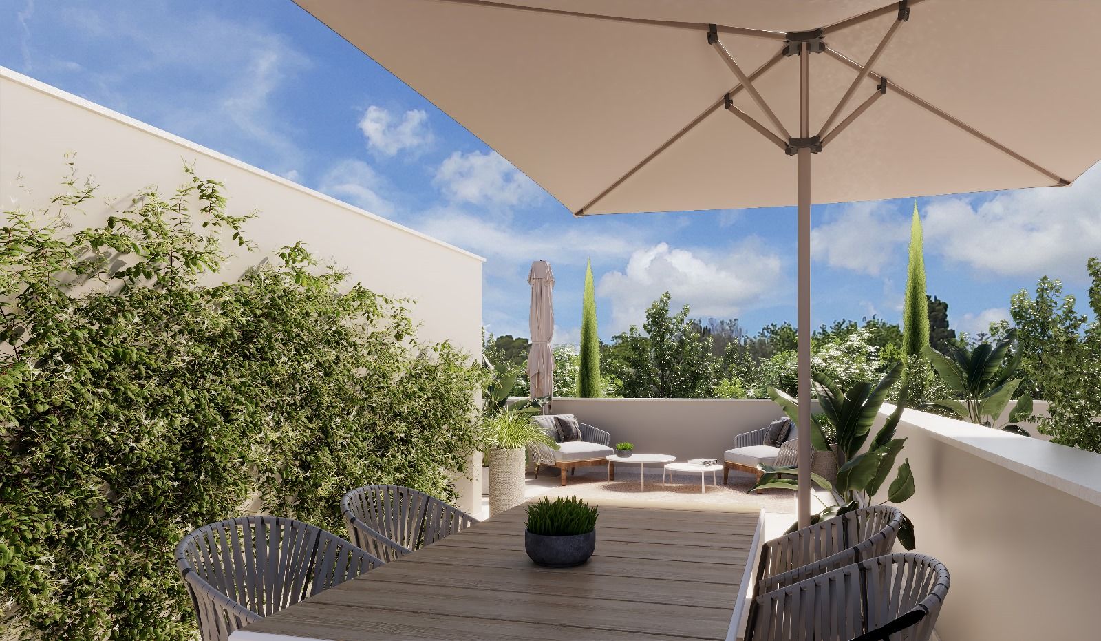 Современные новые террасные дома с бассейном