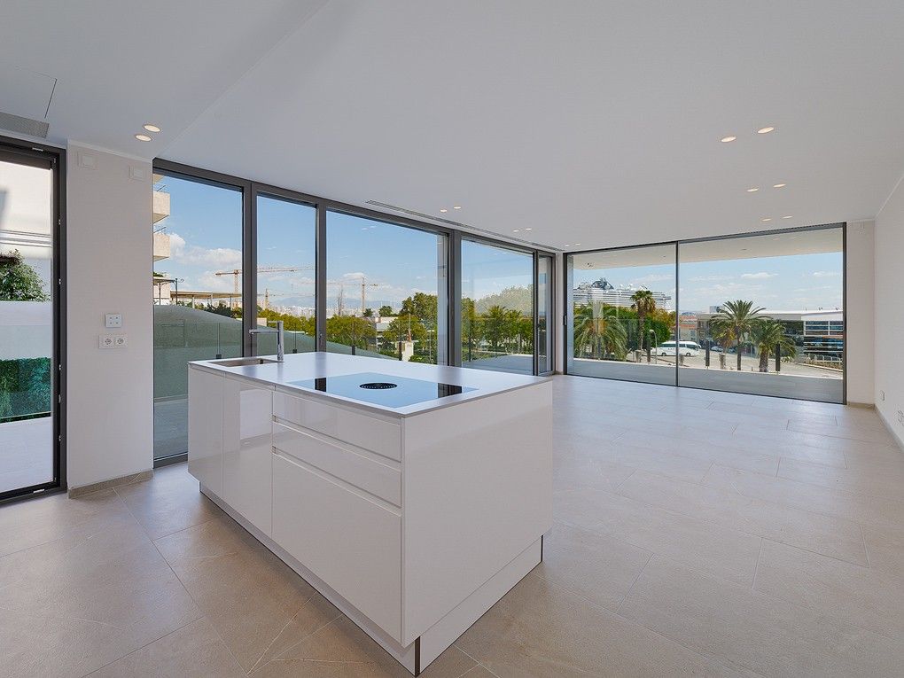 Этот роскошный жилой комплекс с 15 эксклюзивными апартаментами с видом на море был только что построен на 1-й линии моря на знаменитом Пасео Маритимо в Пальме. Помимо современного дизайна и фантастических видов, он предлагает большой открытый бассейн с солнечной террасой и оздоровительный центр с тренажерным залом, сауной и крытым бассейном. Кроме того, здесь есть лифты и большой подземный гараж на 3 уровнях с просторными парковочными местами, зарядными станциями для электромобилей и кладовыми. Вы будете жить в современном комфорте рядом со знаменитым и роскошным Club de Mar, который ежегодно принимает крупнейшие суперяхты мира и в настоящее время полностью модернизирован и отремонтирован. До центра города Пальма можно добраться за несколько минут, а до аэропорта - всего за 10 минут. Современное здание особенно примечательно своей асимметричной формой, фасадом из высококачественного стекла и специальной каменной облицовкой. В общей сложности 12 квартир и 3 двухуровневых пентхауса имеют гостиные и столовые открытой планировки со встроенной кухней с островом для приготовления пищи и просторными террасами. Благодаря большим окнам от пола до потолка все квартиры светлые и наполнены светом. Из просторных двухуровневых пентхаусов, расположенных на 5 и 6 этажах, открываются захватывающие виды на море, город с его знаменитым собором и живописные горные пейзажи, а также частная терраса на крыше с бассейном. Высококачественная отделка апартаментов включает в себя: Дизайнерская кухня Nolte со встроенной техникой Siemens и варочной панелью Bora со встроенной вытяжкой, встроенные шкафы, полы с подогревом, кондиционер w/c и система умного дома KNX.