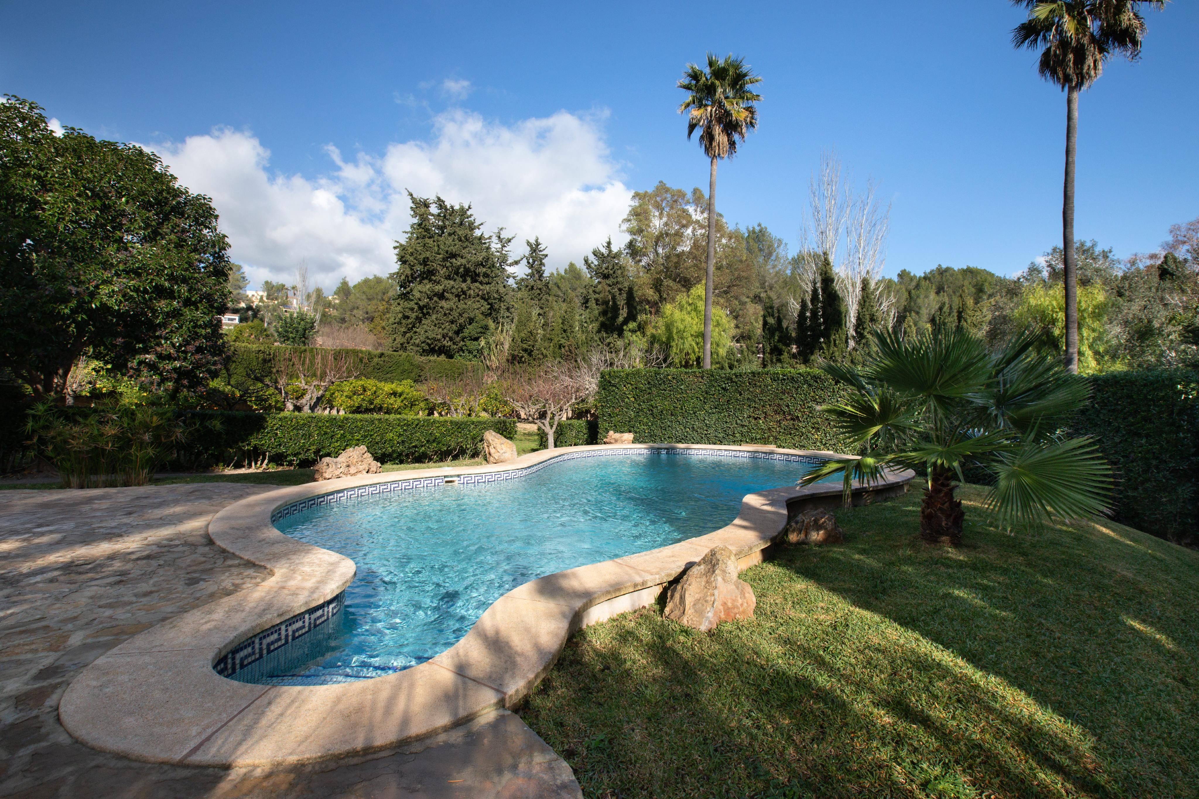 Typ: Hus • Region: Son Vida & Palma Omgivning • Total yta: 160 ㎡ • Rum totalt: 5 • Sovrum: 4 • Badrum: 2 • Tomt yta: 2.000 ㎡ • Parkeringar: 2 • Terrass • Kök • Eldstad • Möblerad • Pool • Uppvärmning: Centralvärme, Split-luftkonditionering • Brandtyp: Olja • Golv: Sten