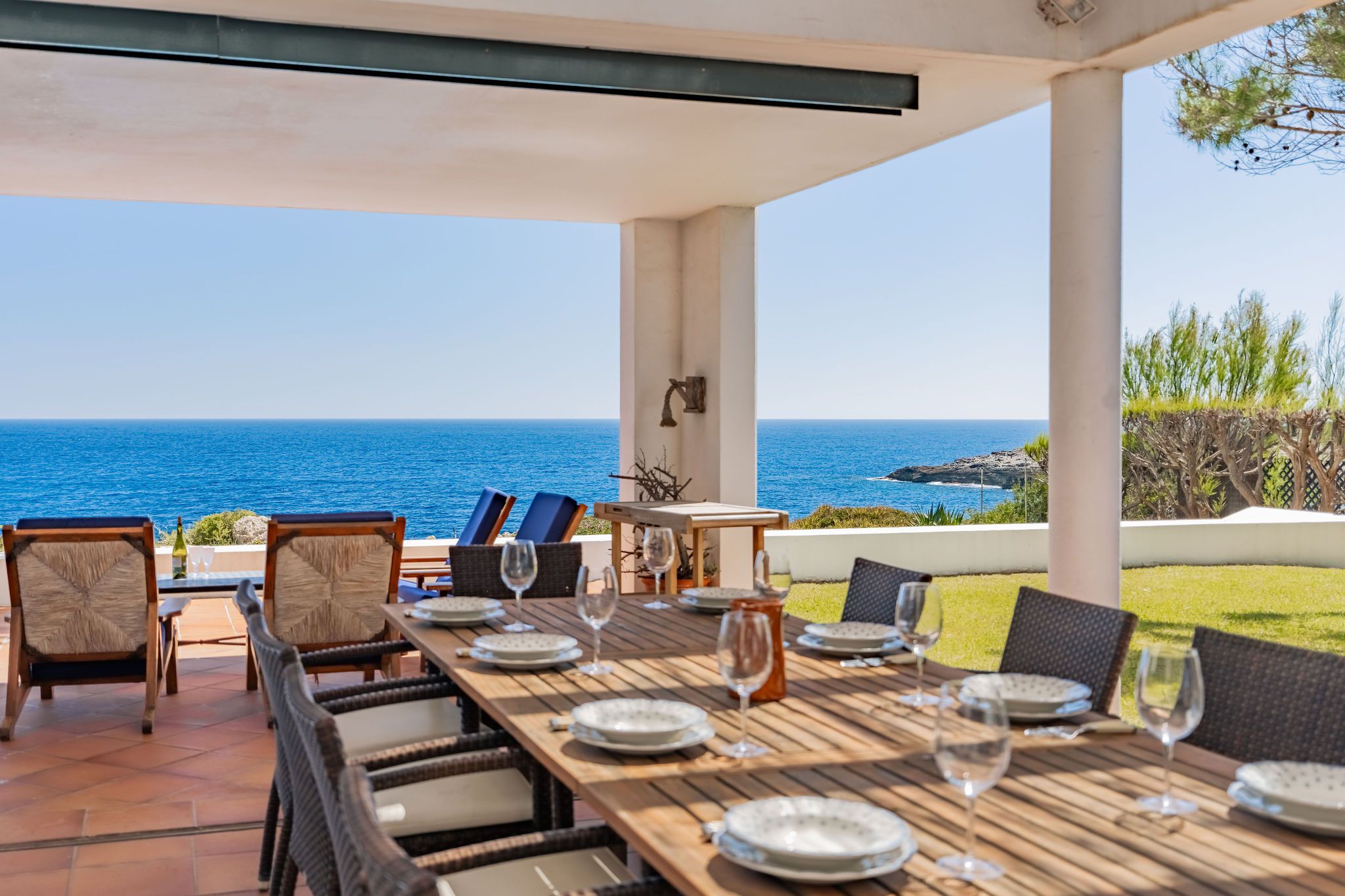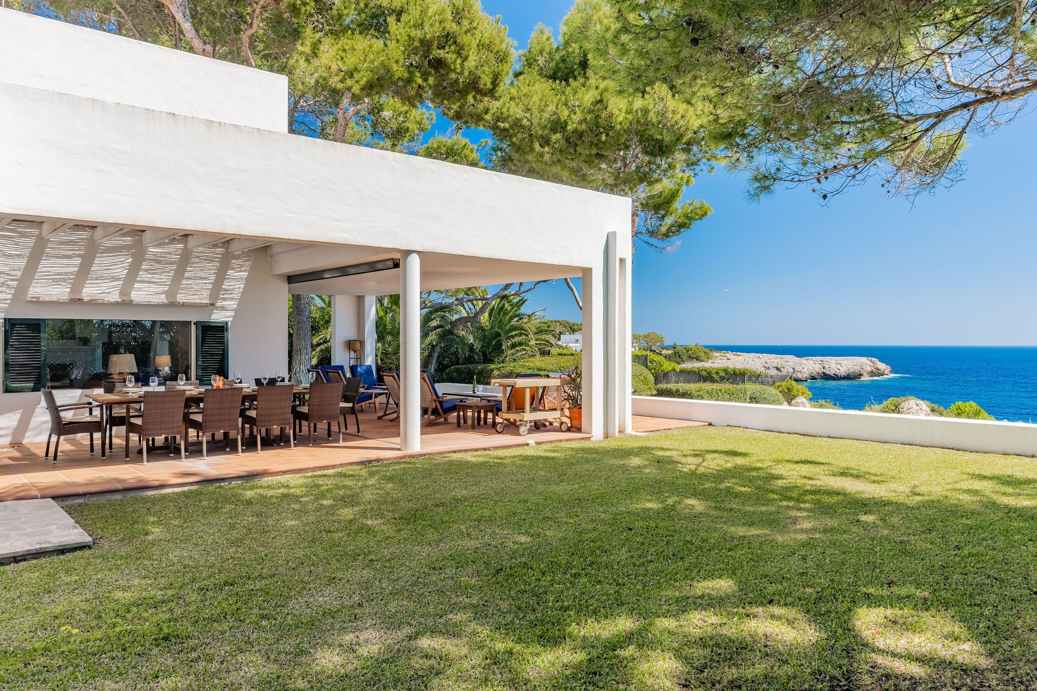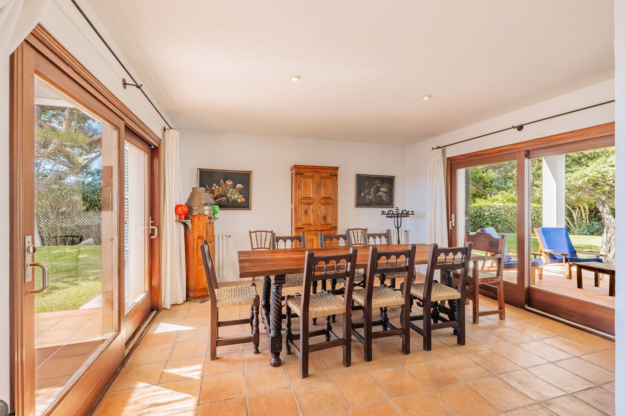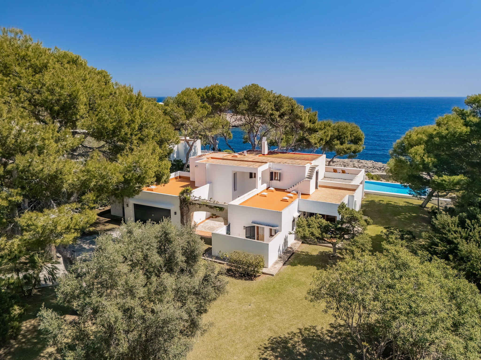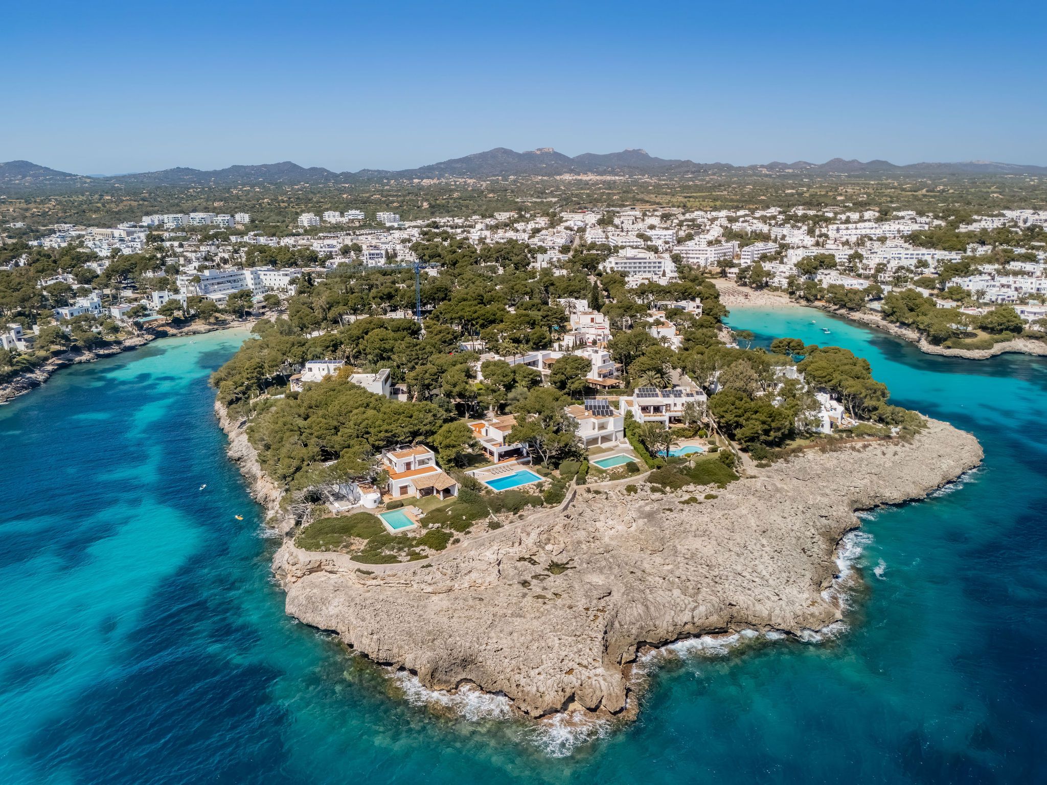 Denna klassiska medelhavsvilla kombinerar ett exceptionellt läge med attraktiv arkitektonisk potential. En speciell höjdpunkt är den eftertraktade semesteruthyrningslicensen för upp till tolv personer. En charmig innergård leder till vardagsrum och matplats i öppen planlösning med öppen spis och klassiska terrakottakakel. Tack vare det sydöstra läget erbjuder de generösa fönsterpartierna en hisnande utsikt över havet. Det funktionella köket kompletteras av ett separat serviceområde för personalen med egen ingång samt tvättstuga och torkrum. På bottenvåningen finns tre sovrum med eget badrum och direkt utgång till terrassen samt en gästtoalett. På övervåningen finns ytterligare två gästrum med balkonger och det rymliga masterområdet. Detta har en öppen spis, ett eget badrum och en privat takterrass med imponerande havsutsikt. Den välskötta trädgården med pinjeträd och automatiskt bevattningssystem omger den ca 80 m² stora poolen. Omfattande, delvis täckta terrasser erbjuder skuggade matplatser. Här finns också ett dubbelgarage och centralvärme med olja för de kallare månaderna. Trots det lugna läget ligger centrum av Cala d'Or bara några minuters promenad bort. Tack vare den befintliga semesteruthyrningslicensen utgör denna fastighet en attraktiv investeringsmöjlighet på Mallorca.