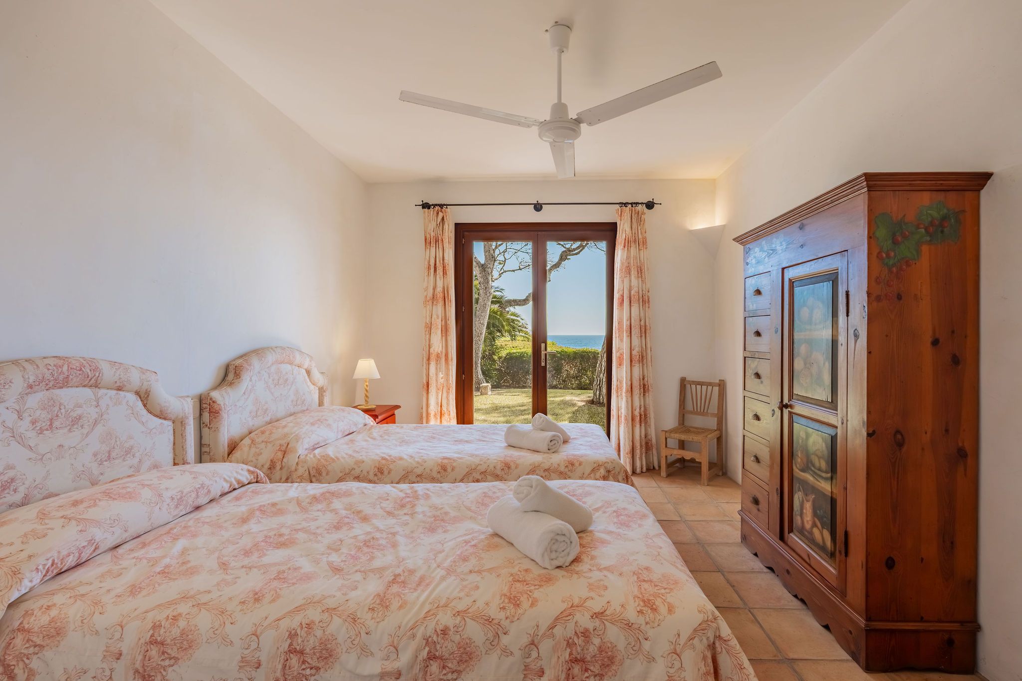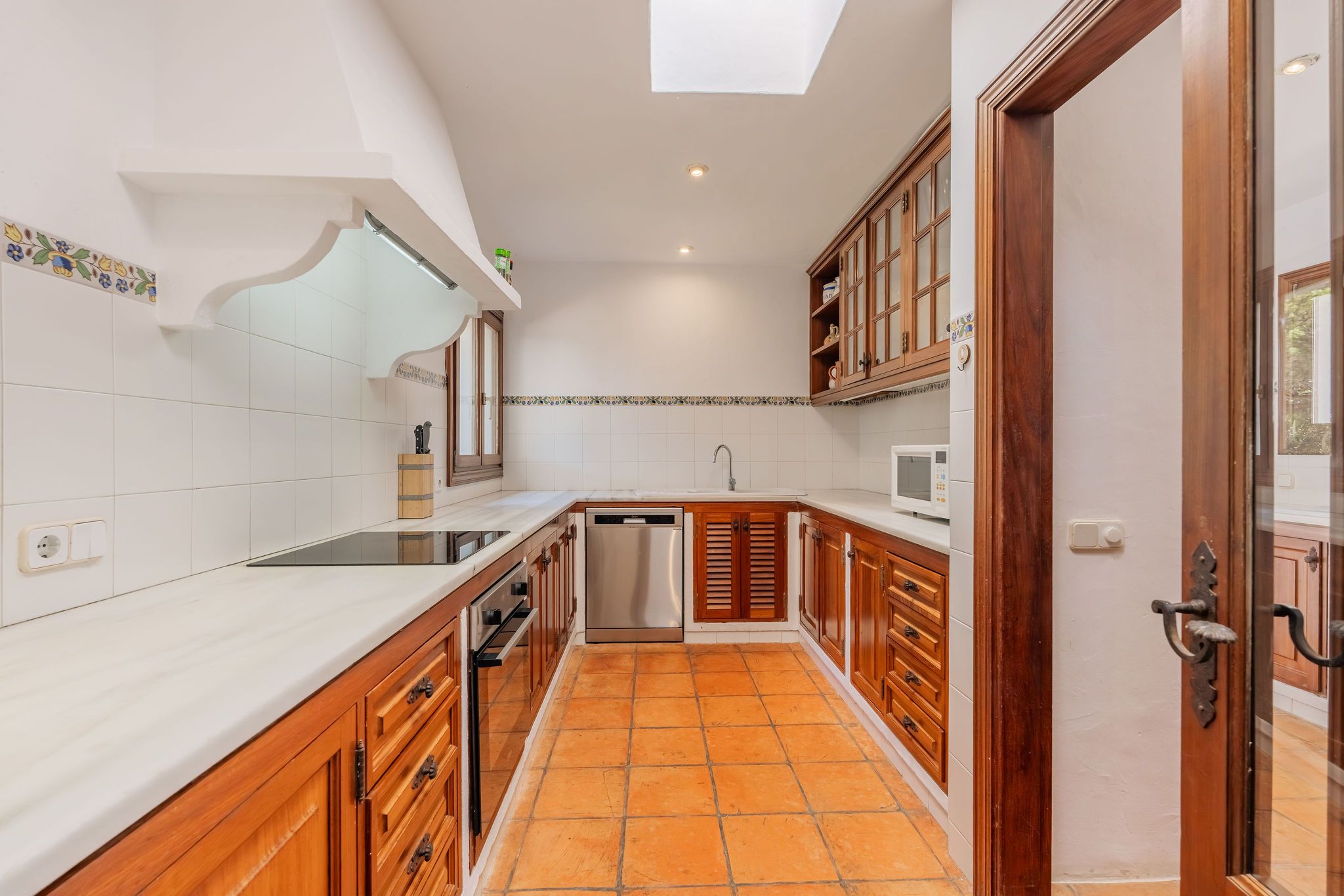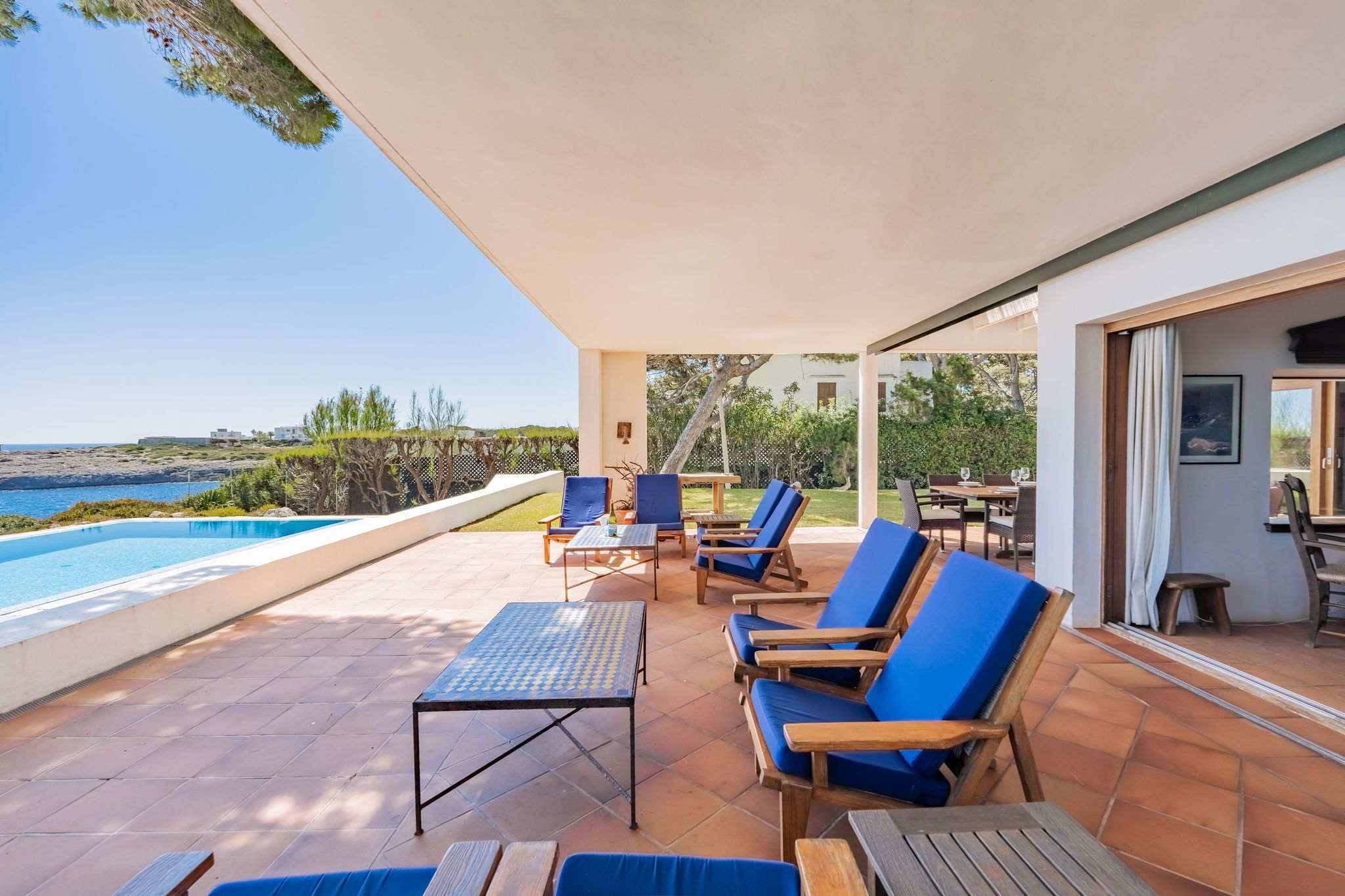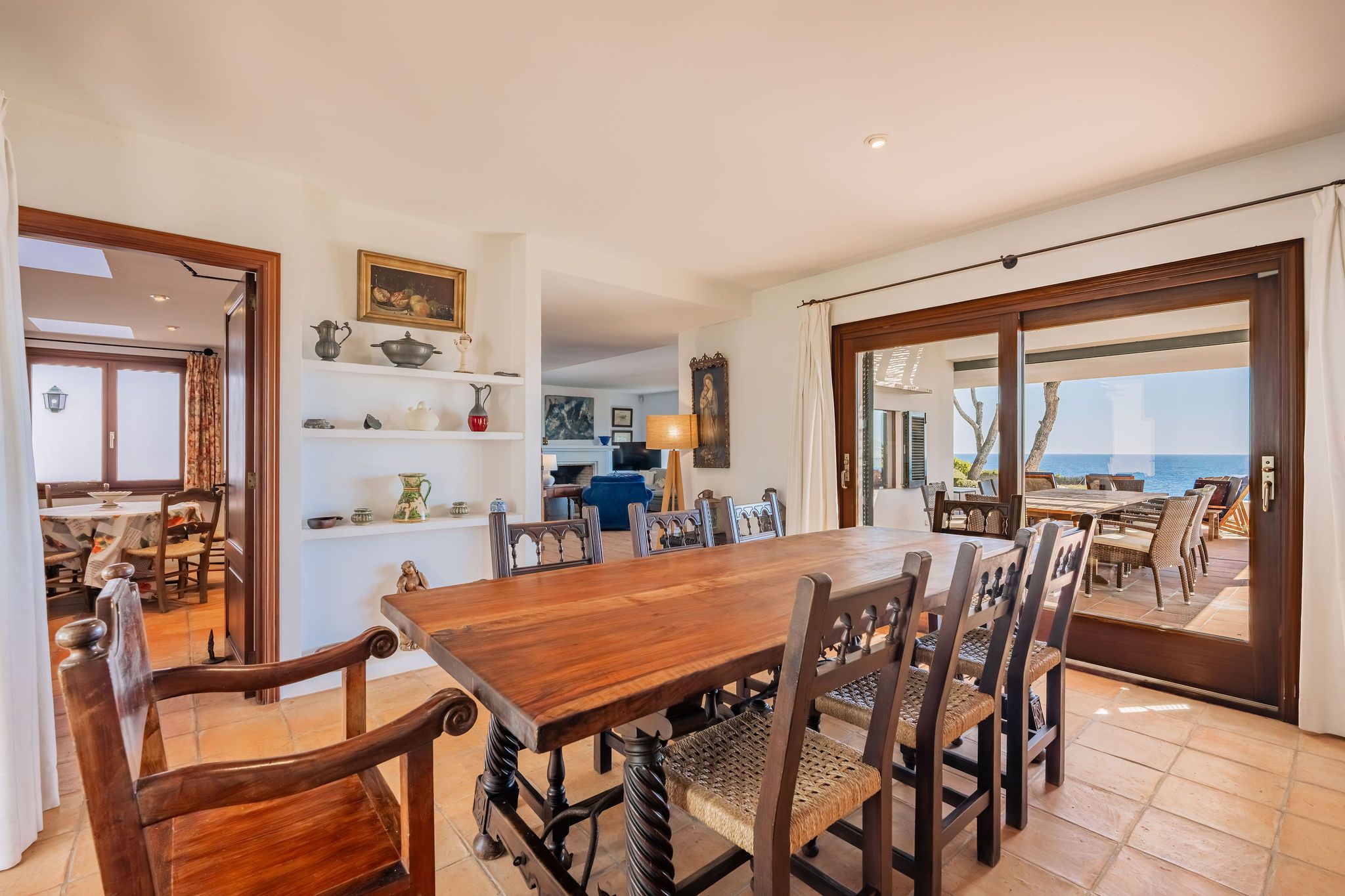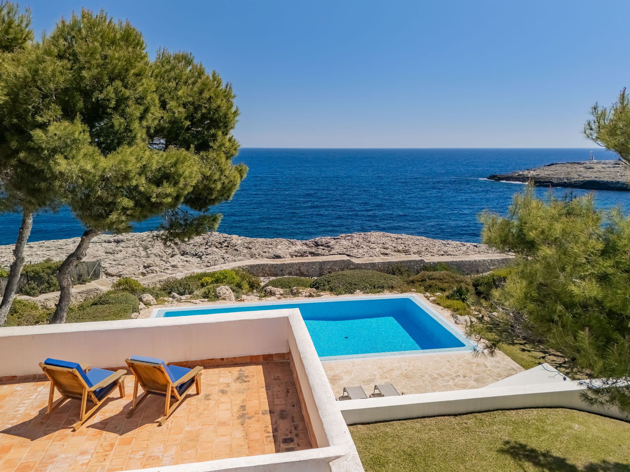 Denna klassiska medelhavsvilla kombinerar ett exceptionellt läge med attraktiv arkitektonisk potential. En speciell höjdpunkt är den eftertraktade semesteruthyrningslicensen för upp till tolv personer. En charmig innergård leder till vardagsrum och matplats i öppen planlösning med öppen spis och klassiska terrakottakakel. Tack vare det sydöstra läget erbjuder de generösa fönsterpartierna en hisnande utsikt över havet. Det funktionella köket kompletteras av ett separat serviceområde för personalen med egen ingång samt tvättstuga och torkrum. På bottenvåningen finns tre sovrum med eget badrum och direkt utgång till terrassen samt en gästtoalett. På övervåningen finns ytterligare två gästrum med balkonger och det rymliga masterområdet. Detta har en öppen spis, ett eget badrum och en privat takterrass med imponerande havsutsikt. Den välskötta trädgården med pinjeträd och automatiskt bevattningssystem omger den ca 80 m² stora poolen. Omfattande, delvis täckta terrasser erbjuder skuggade matplatser. Här finns också ett dubbelgarage och centralvärme med olja för de kallare månaderna. Trots det lugna läget ligger centrum av Cala d'Or bara några minuters promenad bort. Tack vare den befintliga semesteruthyrningslicensen utgör denna fastighet en attraktiv investeringsmöjlighet på Mallorca.