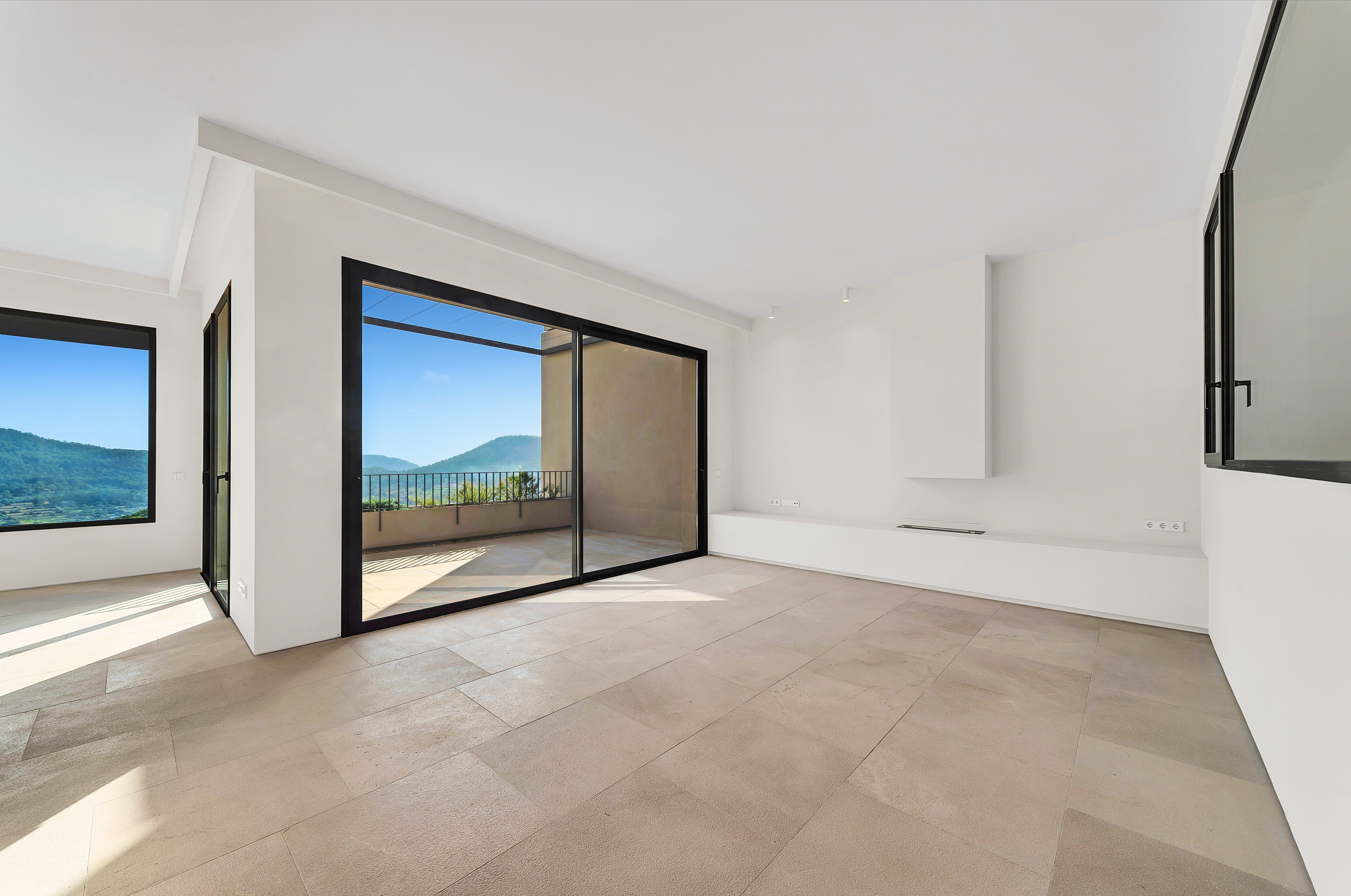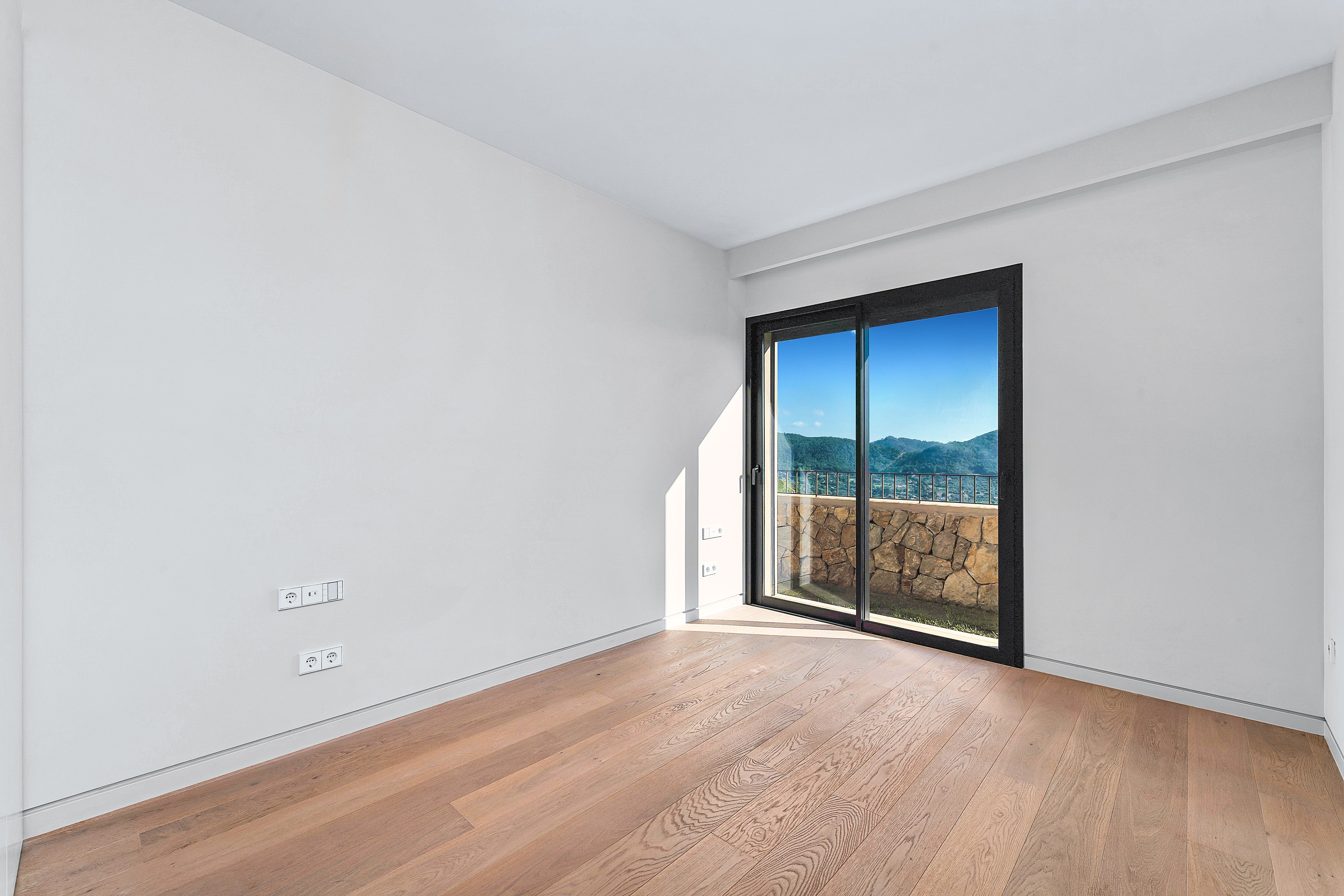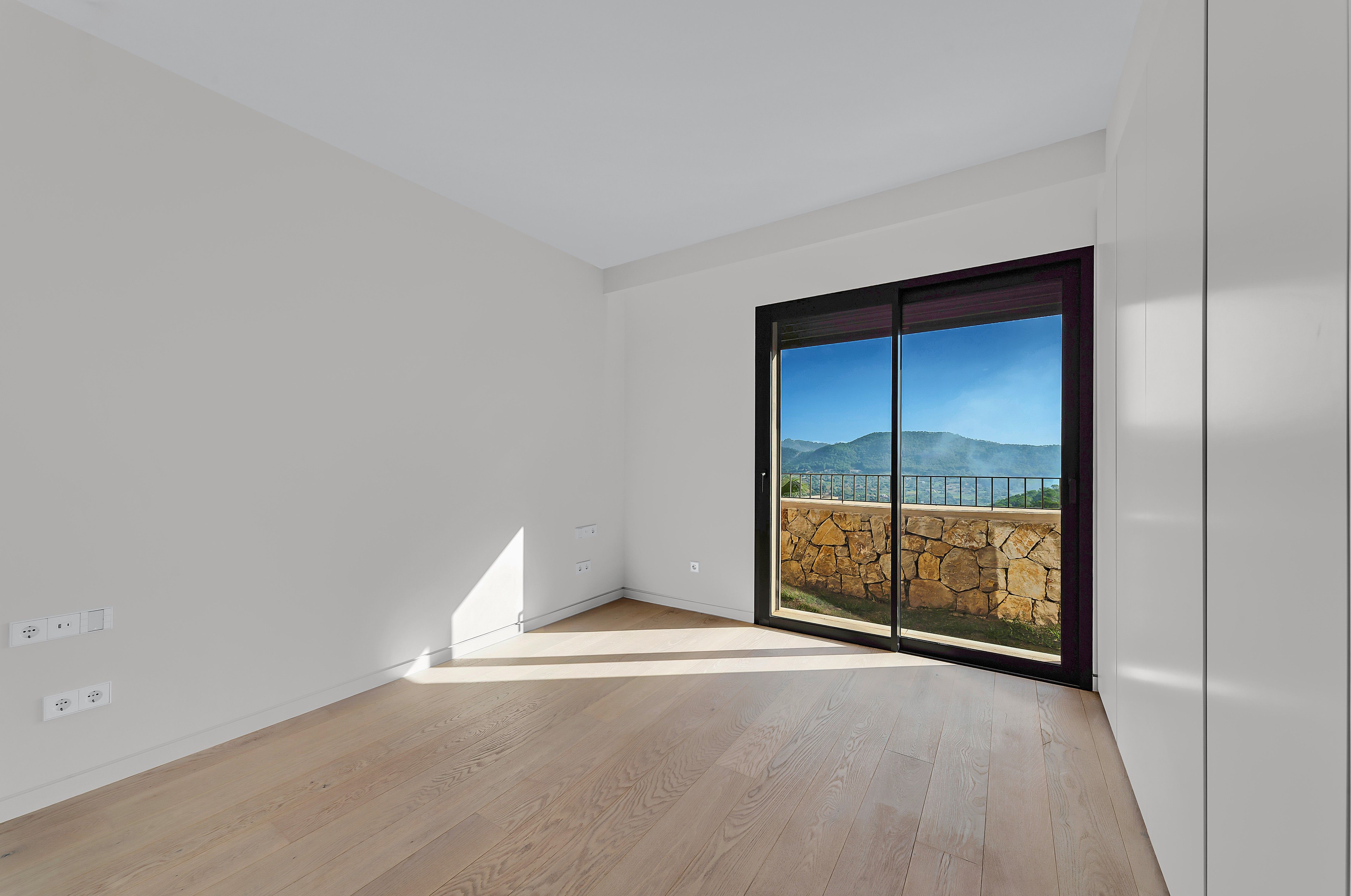 Detta eleganta radhus i det exklusiva bostadsområdet Amber Village, ovanför Port Andratx, erbjuder modern lyx och hisnande utsikt över hamnen, Tramontana-bergen och den charmiga byn Andratx. Komplexet, som består av endast 24 hus i medelhavsstil, garanterar lugn, avskildhet och högsta livskvalitet. Det rymliga vardagsrummet och matsalen på övervåningen med ett kök i öppen planlösning är genomlyst och har direkt tillgång till en underbar terrass med utsikt över hamnen. Den moderna arkitekturen och de högkvalitativa möblerna skapar en harmonisk atmosfär. På nedre våningen ligger det lyxiga master bedroom med eget badrum samt ytterligare två sovrum som delar badrum. Alla sovrum har tillgång till den privata trädgården, som är en annan höjdpunkt i denna fastighet. Takterrassen med utekök, chill-out-område och en liten privat pool inbjuder dig att njuta av den mallorcanska solen och uppleva den spektakulära utsikten över Tramontana-bergen och hamnen. Bland bekvämligheterna finns golvvärme, luftkonditionering, fina naturstens- och ekgolv, ett modernt kök med Miele-apparater, toppmodern hemteknik och ett tvättrum. En privat hiss och två parkeringsplatser i garage ger ytterligare bekvämlighet. Det exklusiva bostadskomplexet erbjuder också en infinitypool och välskötta trädgårdar som betonar den lyxiga livsstilen i denna unika miljö. Detta radhus i Amber Village erbjuder en perfekt kombination av modern komfort, hisnande vyer och ett av de mest eftertraktade lägena på Mallorca.