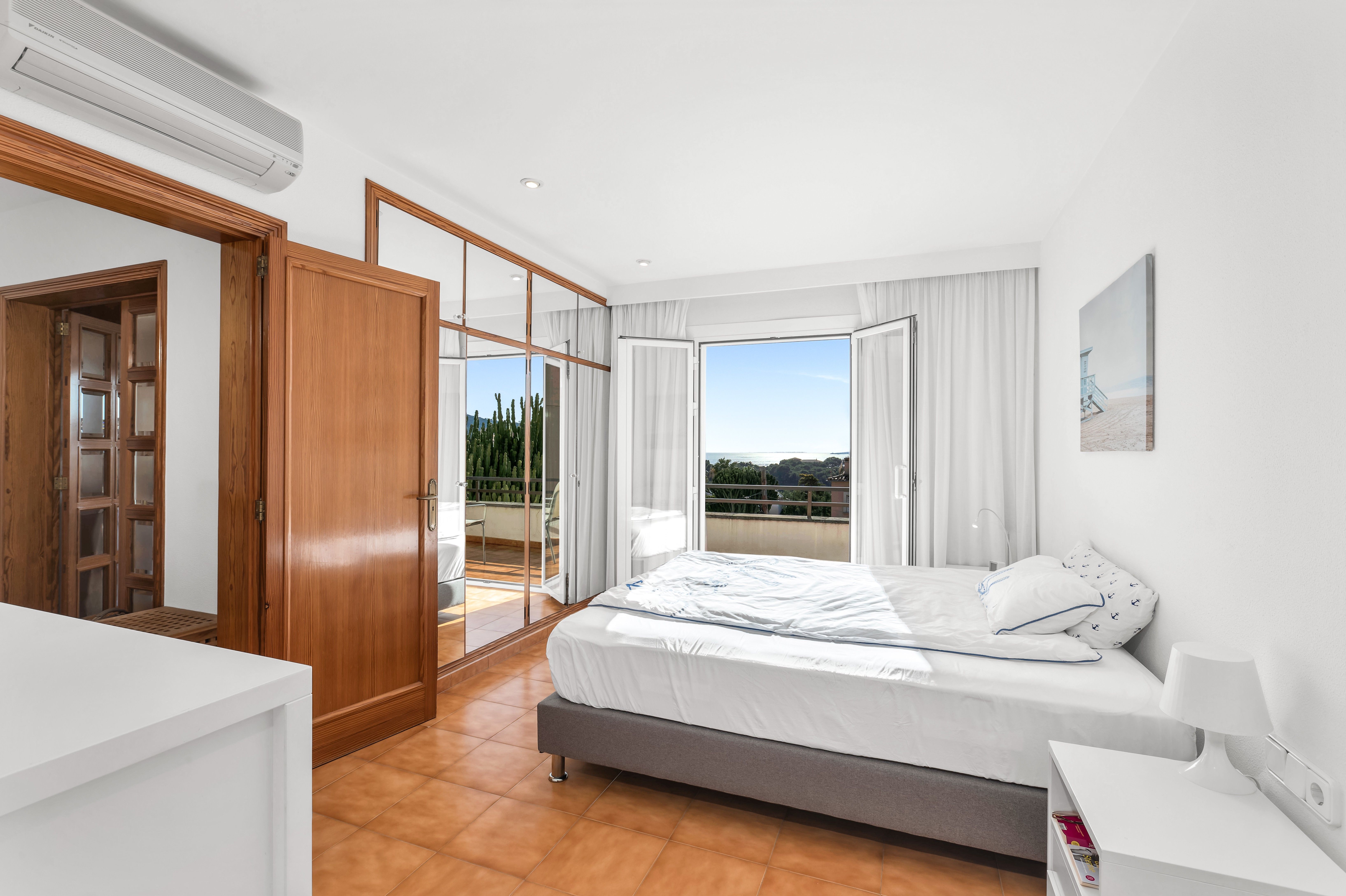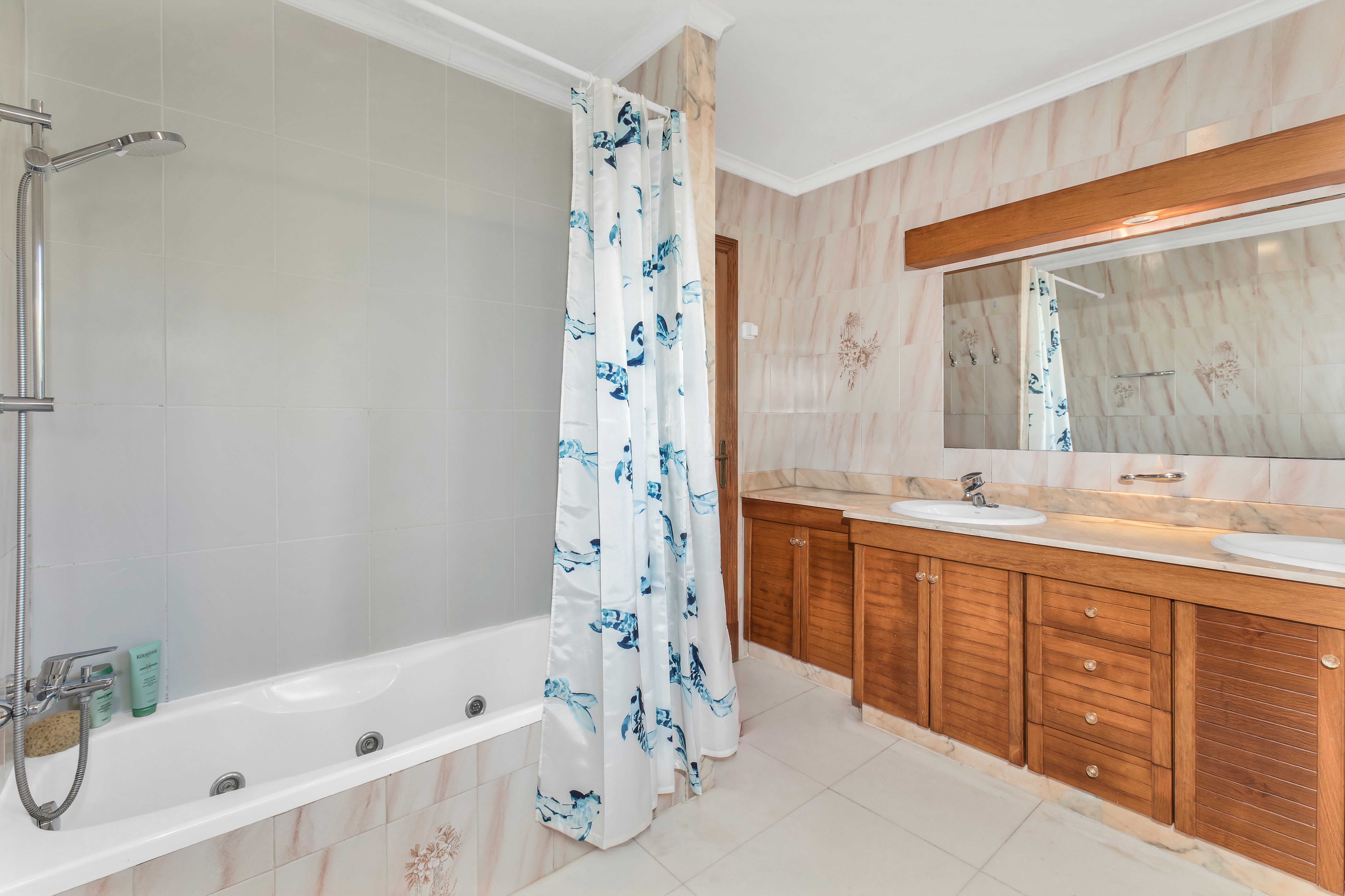Denna eleganta familjevilla ligger i det exklusiva bostadsområdet La Bonanova och erbjuder vacker havsutsikt och ett privilegierat läge nära Palma hamn, köpcentrum, Bellver Park och flera internationella skolor. Huset är utformat för en familjs komfort och har ljusa och rymliga interiörer med två inbjudande vardagsrum, båda med mysiga eldstäder, vardagsrummet på övervåningen används för närvarande som kontor. Med fyra sovrum, tre badrum och ett separat gästområde finns det gott om plats för familj och besökare. Utomhusområdet är en riktig höjdpunkt för en stadsfastighet, med en lummig trädgård, en uppvärmd pool med elektriskt poolskydd, jacuzzi och jetström, utomhusdusch med varmt och kallt vatten, en vacker veranda och terrasser som erbjuder hisnande utsikt över Palmabukten och det ikoniska Marivent Castle. Ytterligare bekvämligheter som en vinkällare, två garageplatser, luftkonditionering och uppvärmning garanterar komfort året runt och gör denna villa till en perfekt tillflyktsort i ett exklusivt bostadsområde.